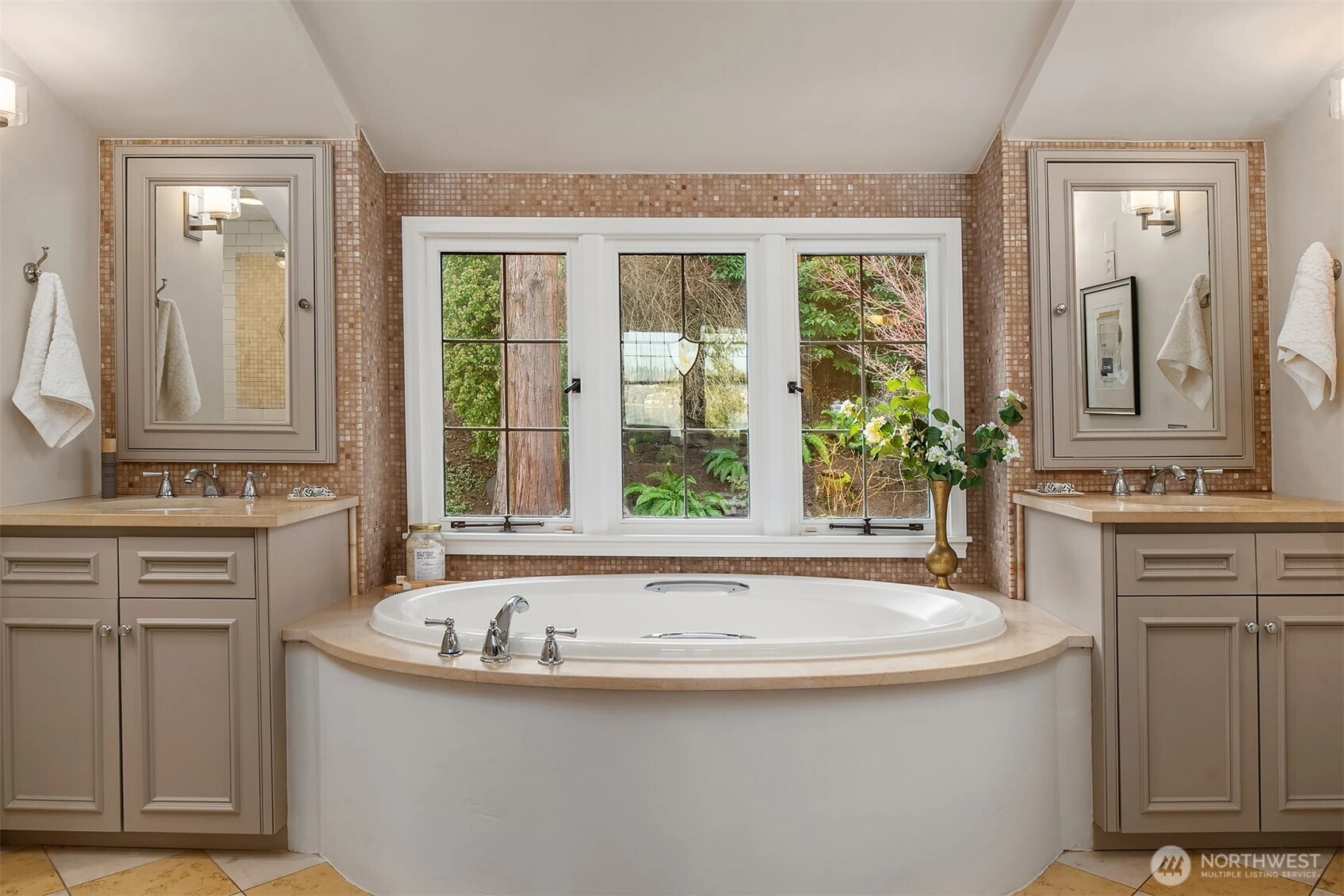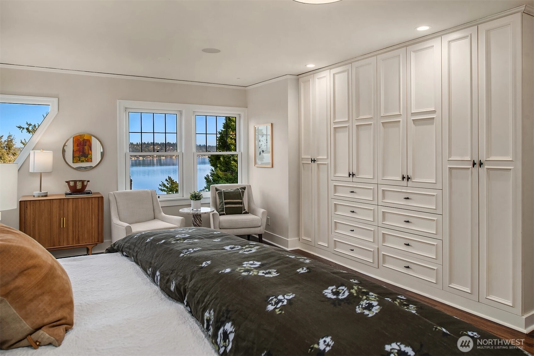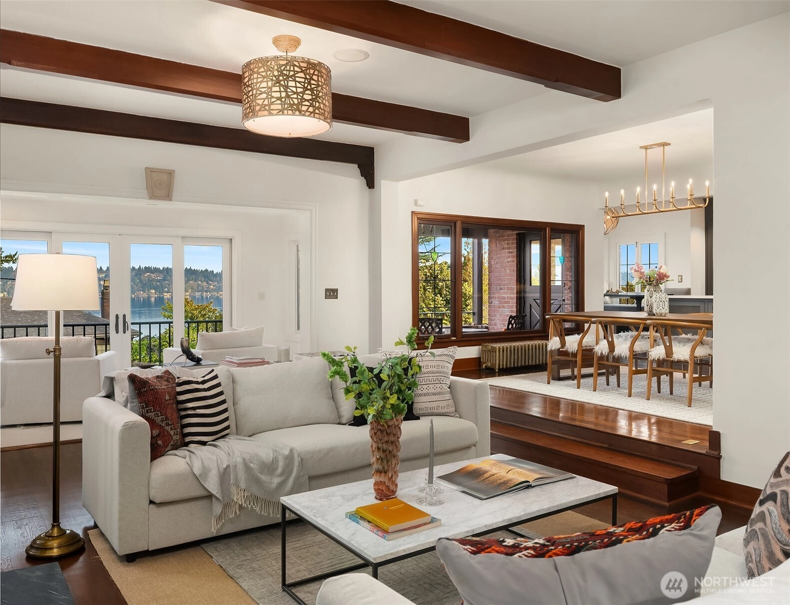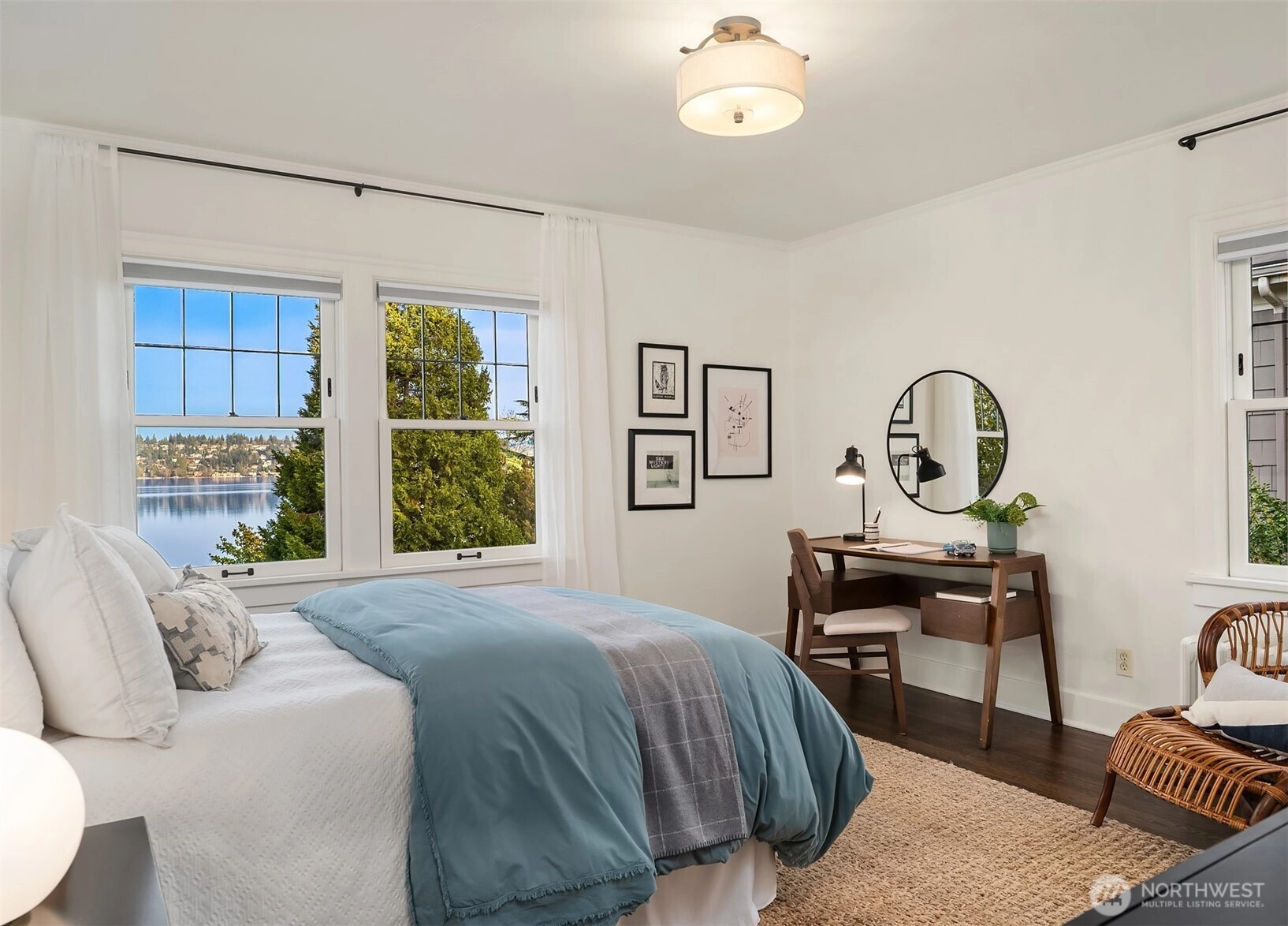 Timelessly elegant and nestled into a landscape of legacy homes & quintessentially PNW views, this storybook Tudor with voluminous ceilings on each level answers the call of every wishlist item with irresistible interior design. Gracious entertaining flows inside and out with four unique outdoor settings: a gated/private front yard; ipe deck; cabana; and plantings that bloom in all-season symphony. Upstairs find 3 beds/2 baths, including large primary suite overlooking the lake with five-piece bath in a garden setting. Main level offers spacious living & dining rooms, kitchen, powder, office, and a superb sunroom. Lower level has guest suite, media w/ cozy gas fireplace, conditioned 651 bottle wine cellar & tons of finished storage. Laundry hookups on lower & upper levels. Substantial recent updates incl total lower & main level renovations w/ showstopping, no-expense-spared kitchen + full exterior restoration. Views span lake, mountains & twinkling cityscape, surrounded by parks, boathouse, beach & lakeside meadow w/ miles of shoreline trails just 1/2 block away. Coffee, cocktails, & pizza are an easy 8 minute stroll. Charming original build was built to last & has seen only the highest-quality upgrades: every inch of plumbing & electric updated; copper gutters; luxe radiant heat; AC; windows; seismic retrofit; expanded 2 car garage; and fortified with steel I-beams to carry it through the next century. A true classic. Ask for inspections and impressive list of improvements!