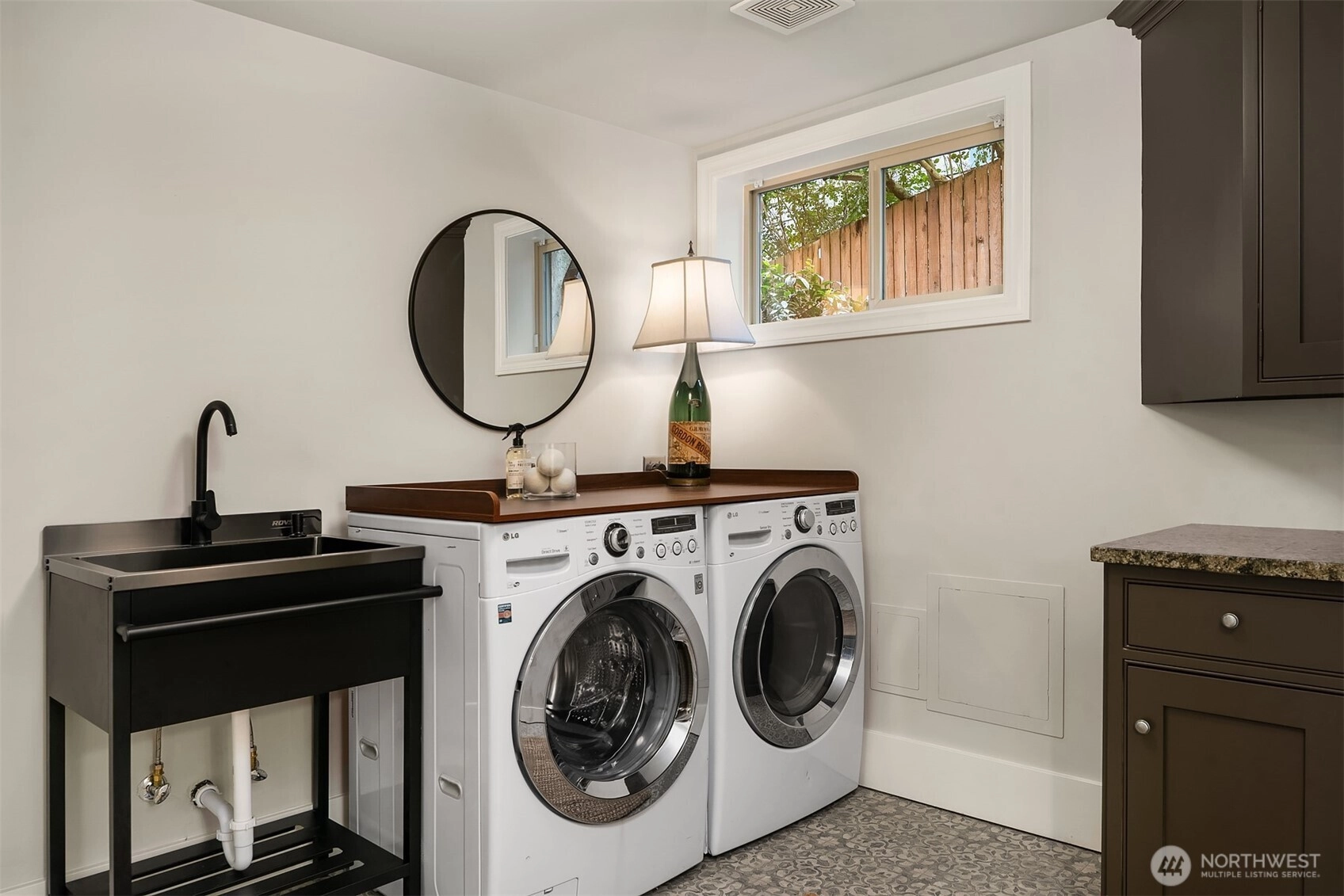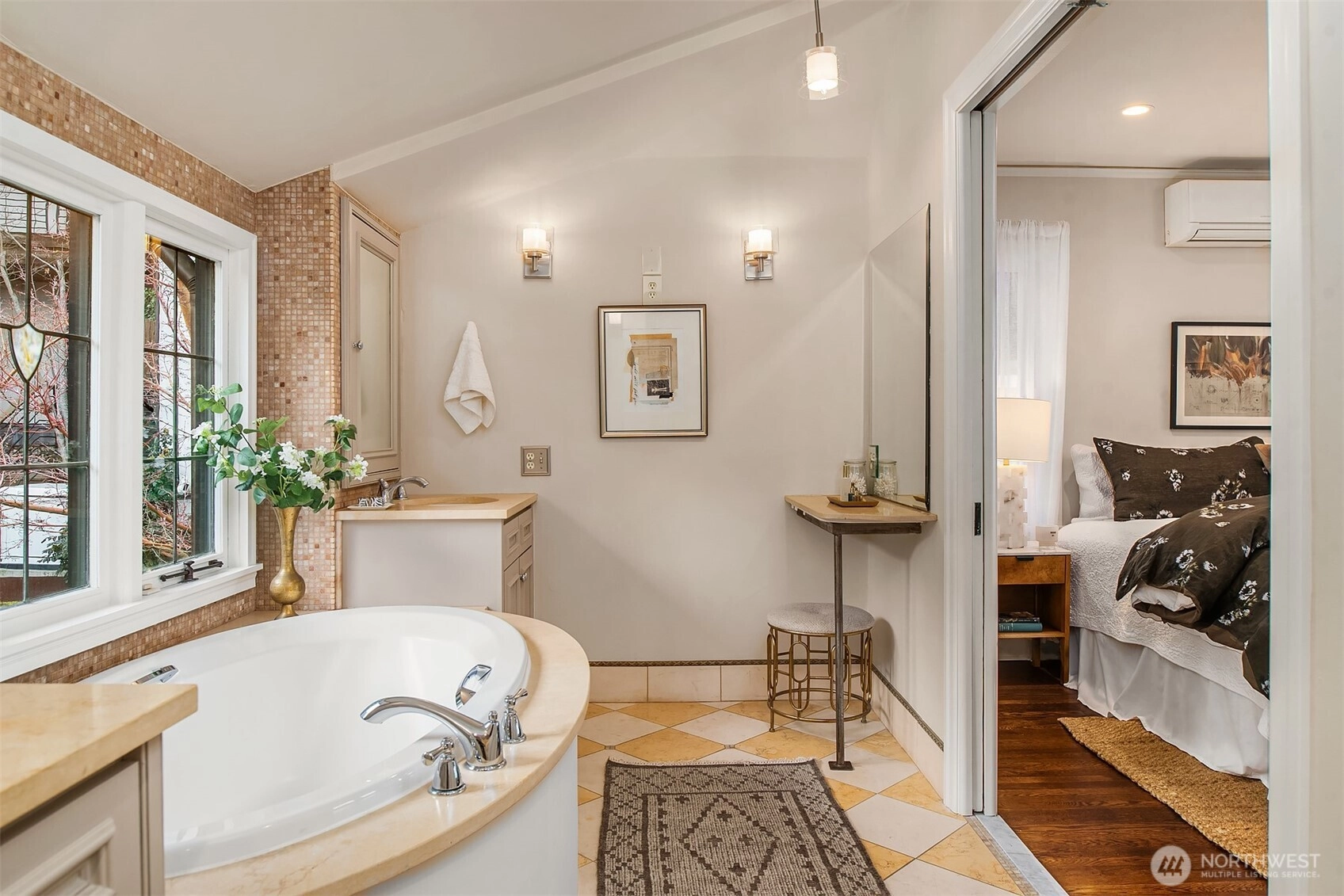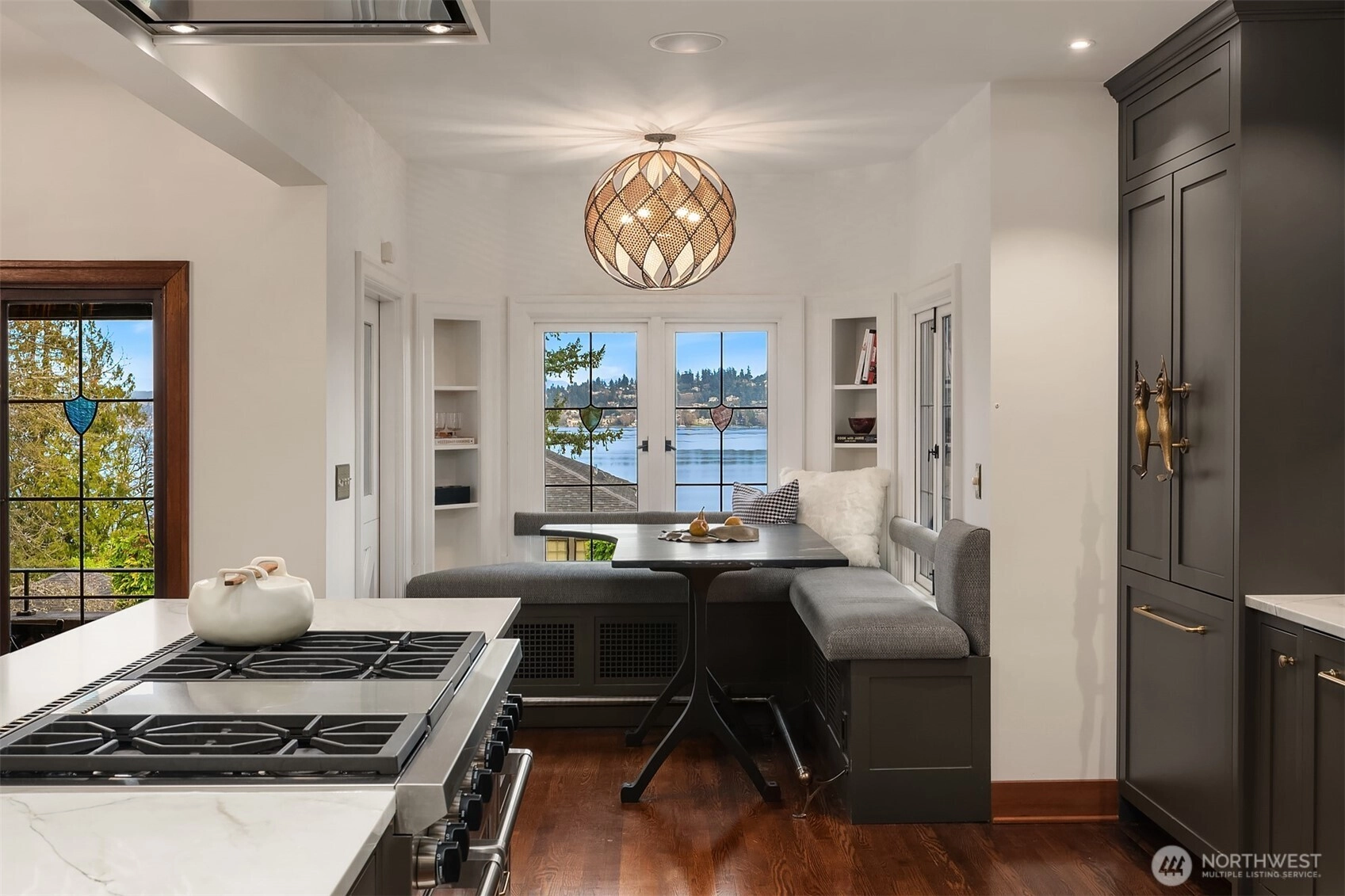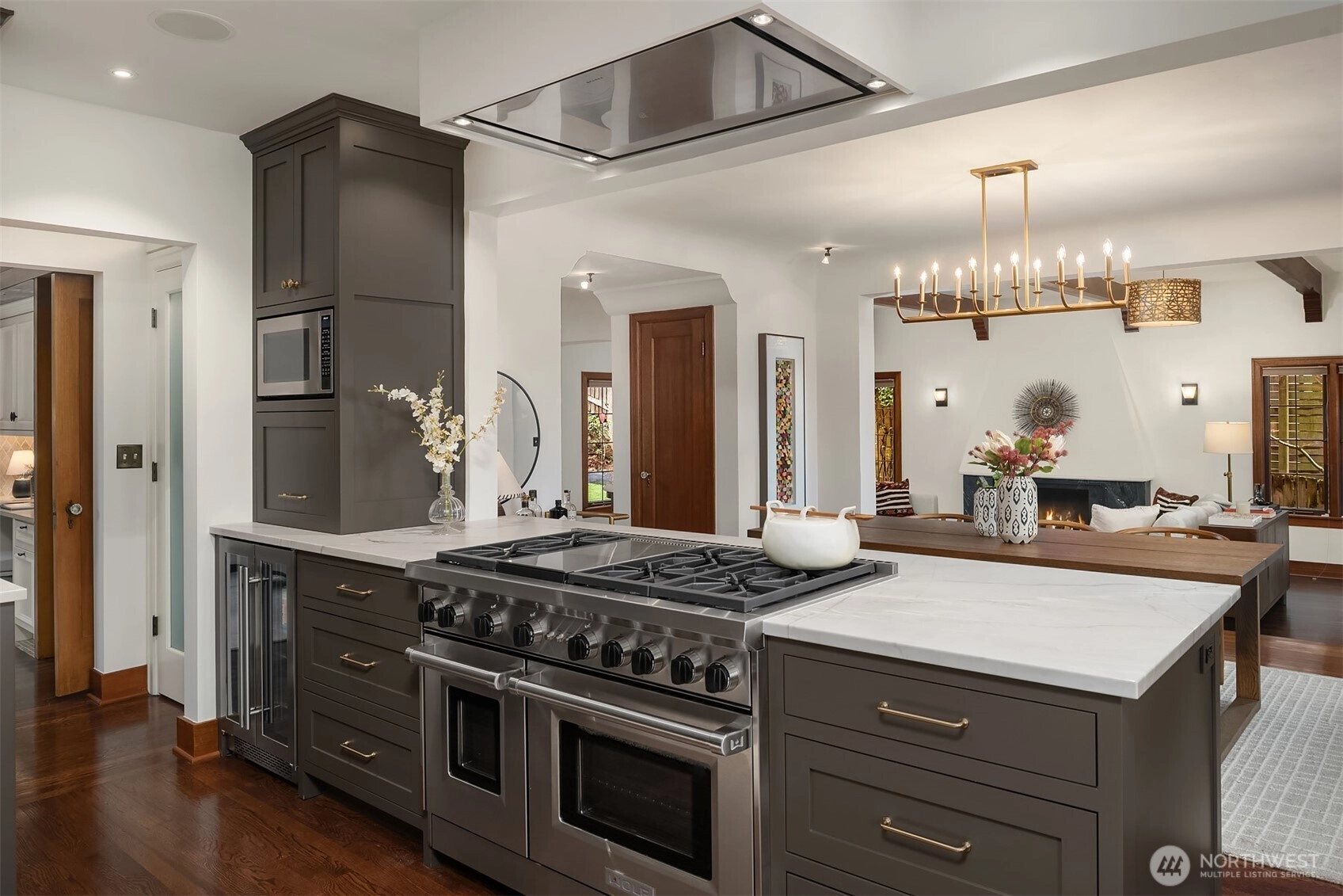 Timelessly elegant and nestled into a landscape of legacy homes & quintessentially PNW views, this storybook Tudor with voluminous ceilings on each level answers the call of every wishlist item with irresistible interior design. Gracious entertaining flows inside and out with four unique outdoor settings: a gated/private front yard; ipe deck; cabana; and plantings that bloom in all-season symphony. Upstairs find 3 beds/2 baths, including large primary suite overlooking the lake with five-piece bath in a garden setting. Main level offers spacious living & dining rooms, kitchen, powder, office, and a superb sunroom. Lower level has guest suite, media w/ cozy gas fireplace, conditioned 651 bottle wine cellar & tons of finished storage. Laundry hookups on lower & upper levels. Substantial recent updates incl total lower & main level renovations w/ showstopping, no-expense-spared kitchen + full exterior restoration. Views span lake, mountains & twinkling cityscape, surrounded by parks, boathouse, beach & lakeside meadow w/ miles of shoreline trails just 1/2 block away. Coffee, cocktails, & pizza are an easy 8 minute stroll. Charming original build was built to last & has seen only the highest-quality upgrades: every inch of plumbing & electric updated; copper gutters; luxe radiant heat; AC; windows; seismic retrofit; expanded 2 car garage; and fortified with steel I-beams to carry it through the next century. A true classic. Ask for inspections and impressive list of improvements!