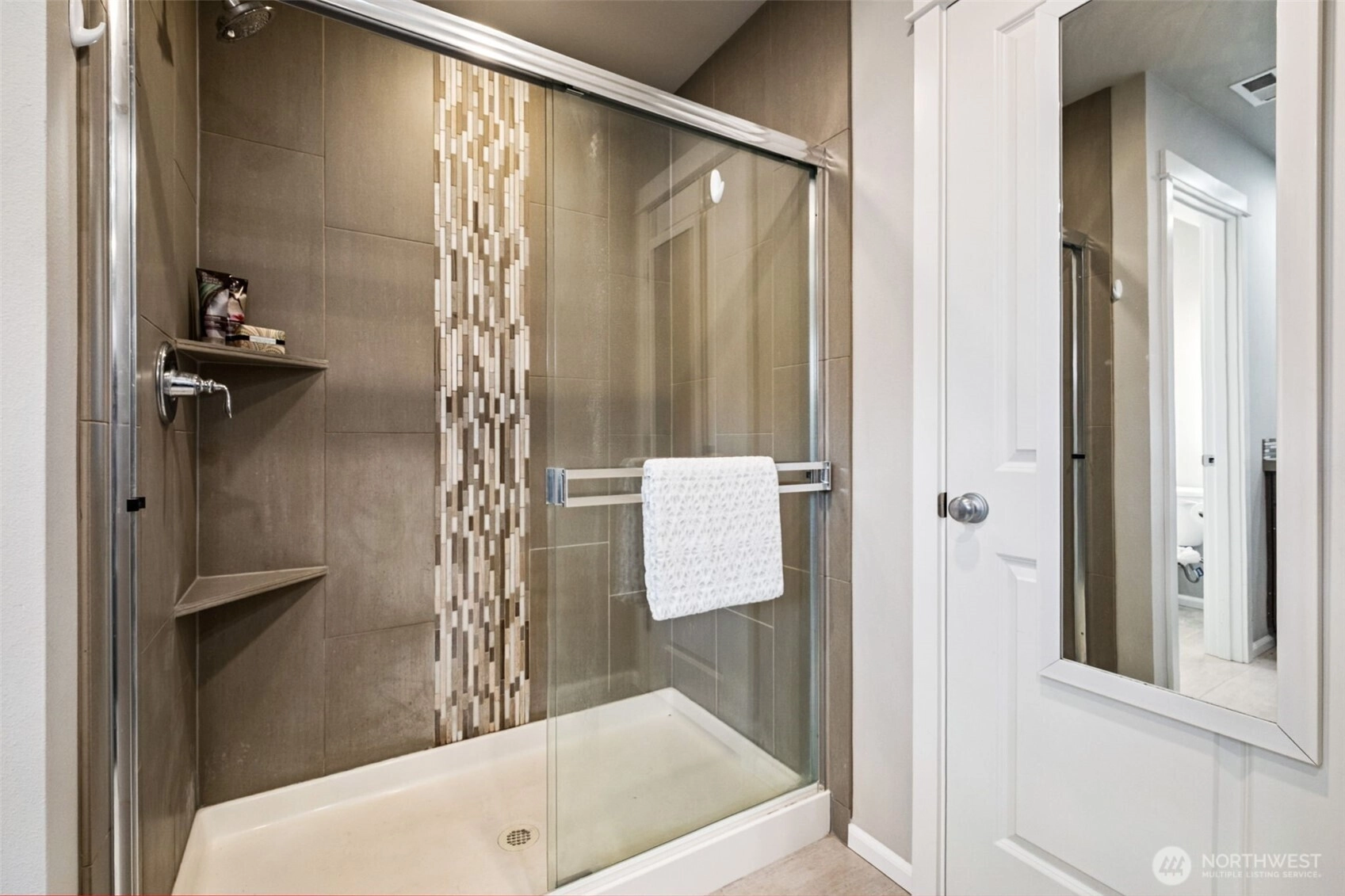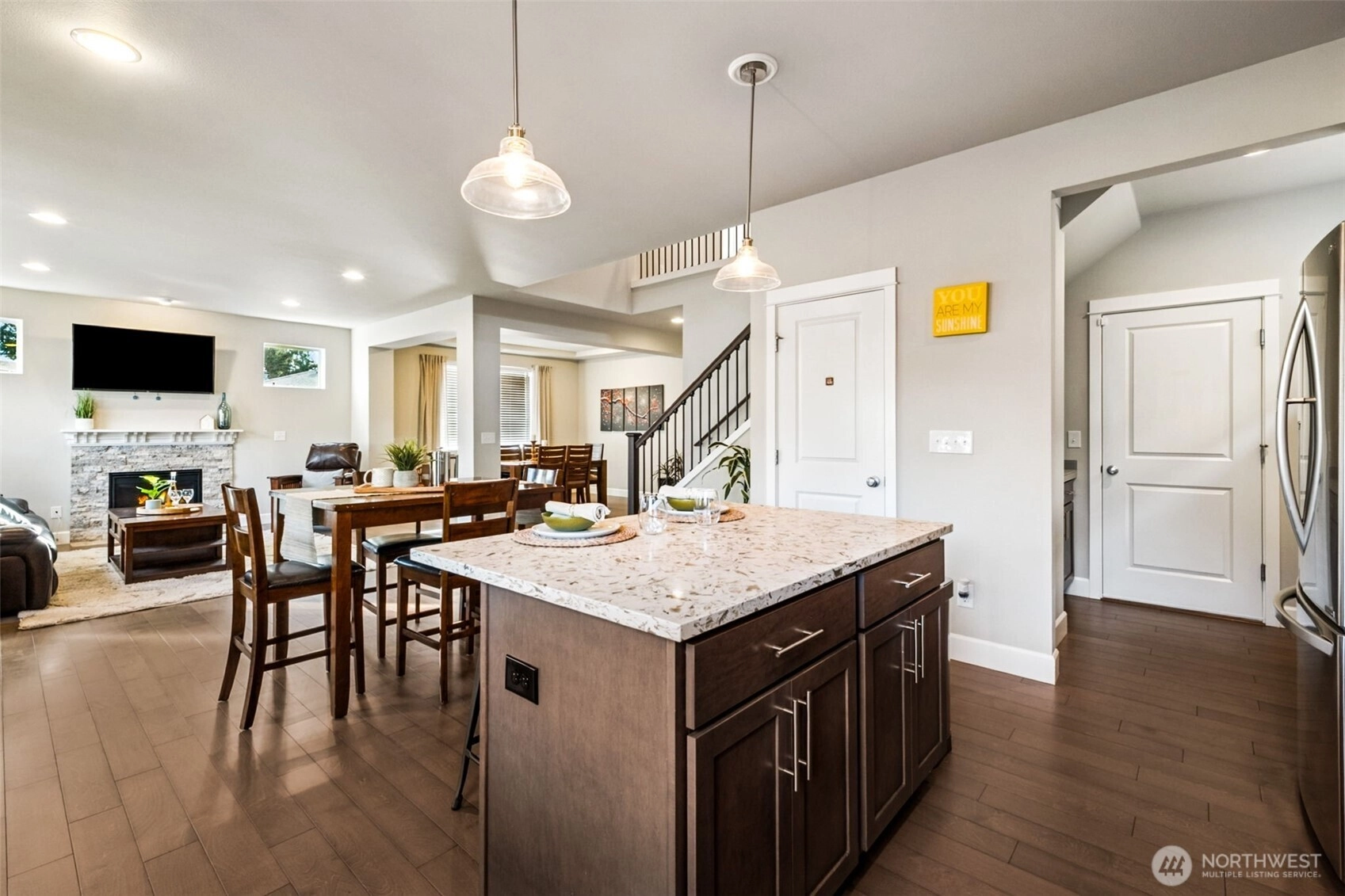 BETTER THAN NEW! This barely new 10-year-old, like-new home includes all those "extras" when buying new construction: SS appliances, window coverings, lawn installation, and air conditioning! Modern, efficient systems include an energy-saving furnace, central A/C & tankless water heater. A rare main-level bedroom with ¾ bath is ideal for guests, multigenerational living, or a private office. The open-concept living area with gas fireplace is bright and inviting, and the gourmet kitchen features quartz counters, stainless steel appliances, a large island, and walk-in pantry—perfect for everyday living and entertaining. Upstairs, the expansive primary suite offers a sitting area, vaulted ceiling, 5-piece bath, walk-in closet. Four additional bedrooms include one that works well as a bonus or media room. The fully fenced backyard includes a shed for storage, and the ample covered 300 sq. ft. patio supports year-round outdoor living! The garage has extra-tall ceilings with storage racks and room for more shelving. Short walk to Kent's Canterbury Park! Great for outdoor activities! Walk to high school; only mins to other parks, schools, shopping & services! Nearby are: downtown Kent, Kent Station, and East Hill, w/excellent access to med facilities, fitness centers, dining, retail. Outstanding commuter convenience to SR-167 & I-5, plus nearby buses and the Sounder commuter rail. Travel to SeaTac Airport, Seattle, Bellevue, Renton, Tacoma, Auburn, and more in 30–60 minutes.