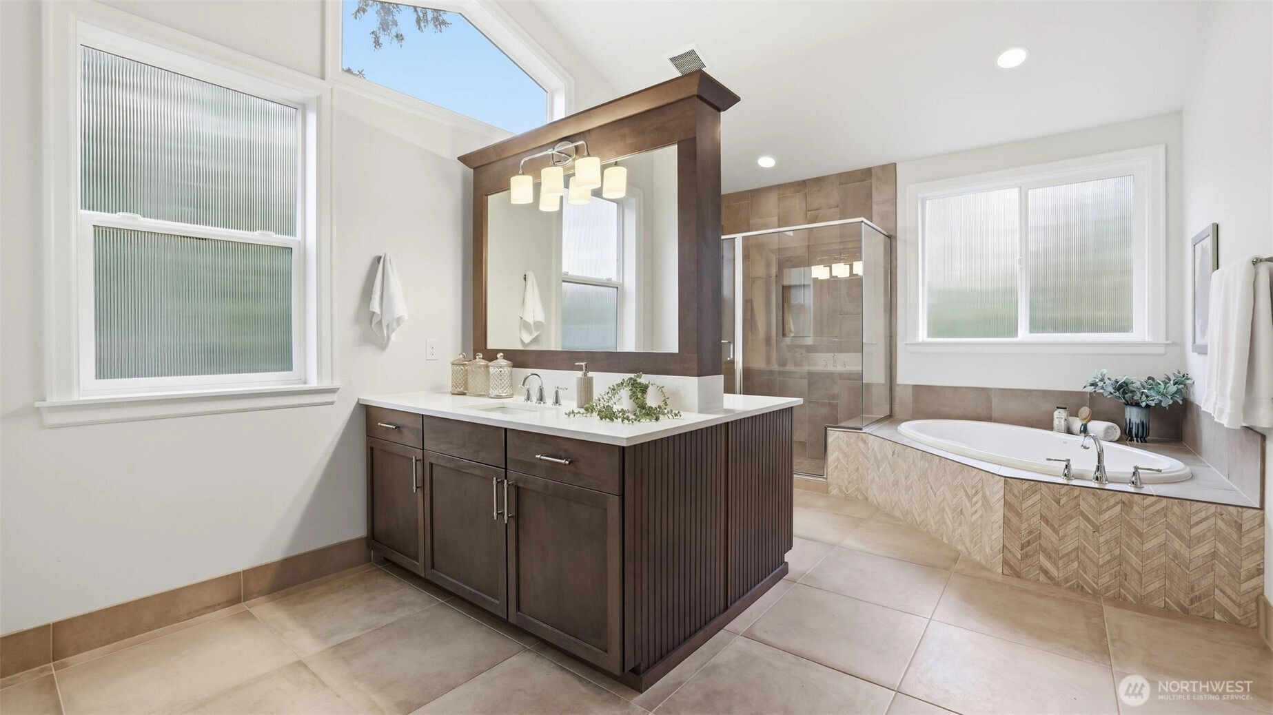 Exceptional Murray Franklyn craftsmanship shines in this stunning resale residence located in Sammamish’s desirable Brixton neighborhood, just blocks from the Town Center. Elegantly set on a corner lot with a north-facing front door, this better-than-new home offers a light-filled interior and timeless design. The thoughtful floor plan features 5 bedrooms, 4 baths, a main-floor den (or 5th bedroom) with adjacent ¾ bath, and a spacious upstairs bonus room. The expansive chef’s kitchen boasts a 6-burner cooktop, full-height cabinetry, tile backsplash, abundant quartz counters, stainless steel appliances, and a large center island with eating bar. The great room and dining area provide an ideal setting for both daily living and entertaining. Upstairs, the private primary suite features vaulted ceilings, his and her vanities, spa-like soaking tub, and dual custom closets. Three additional bedrooms—one en suite—bonus room, and laundry room complete the upper level. Enjoy year-round outdoor living with a covered patio, paver patio and walkways, and a fully fenced yard. Tandem 3-car garage and central A/C add comfort and convenience. Close to shops; dining; Met Market; Big Rock and Lower Commons Park; and top-rated Lake Washington schools.