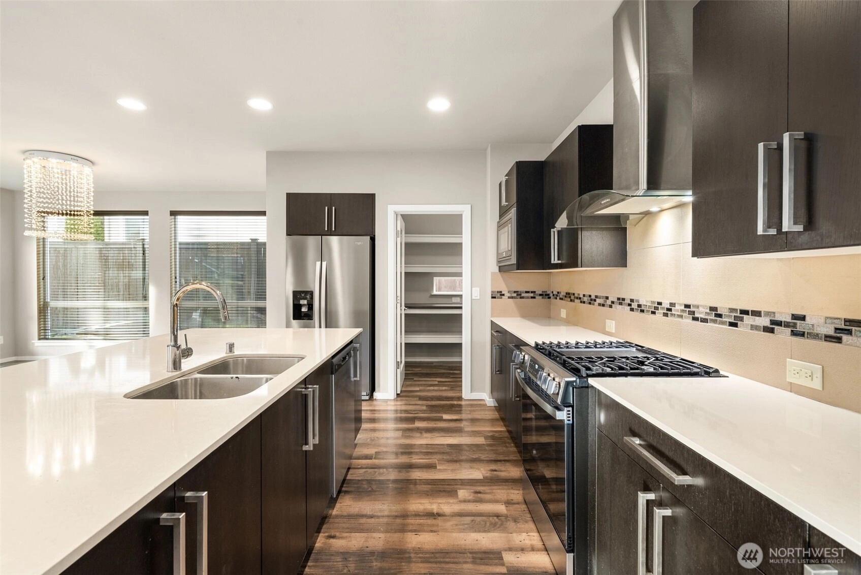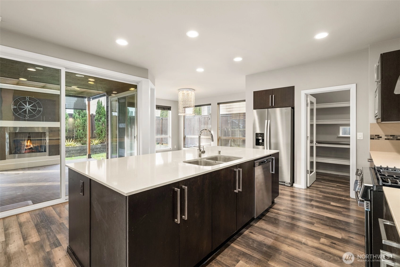 Gorgeous contemporary MainVue home in desirable Kendall Ridge! The largest floorplan in the community offers 3341 sq ft of luxurious living with 4 spacious bedrooms, 2.5 baths, a versatile den, and a generous bonus room loft area. Over $65,000 in premium upgrades, including stunning triple 10x8 sliders that open to your expansive covered patio complete with a cozy fireplace—ideal for year-round relaxation and entertaining! Inside, enjoy laminate plank flooring throughout the entire main floor and second level. The chef-inspired kitchen features a massive working pantry, oversized island, and premium stainless steel appliances. Plenty of room to spread out with massive room sizes throughout. Additional highlights: fresh new exterior paint for exceptional curb appeal, a dedicated media room with surround sound speakers for immersive movie nights, and beautiful views of the Cascade foothills. The fully landscaped and fenced backyard includes an automatic sprinkler system for effortless maintenance and plenty of space to gather. Best of all, this home has been pre-inspected to eliminate any surprises for buyers—peace of mind included! Prime location with easy access to Highway 18/167. Don't miss this turnkey gem—schedule your tour today!