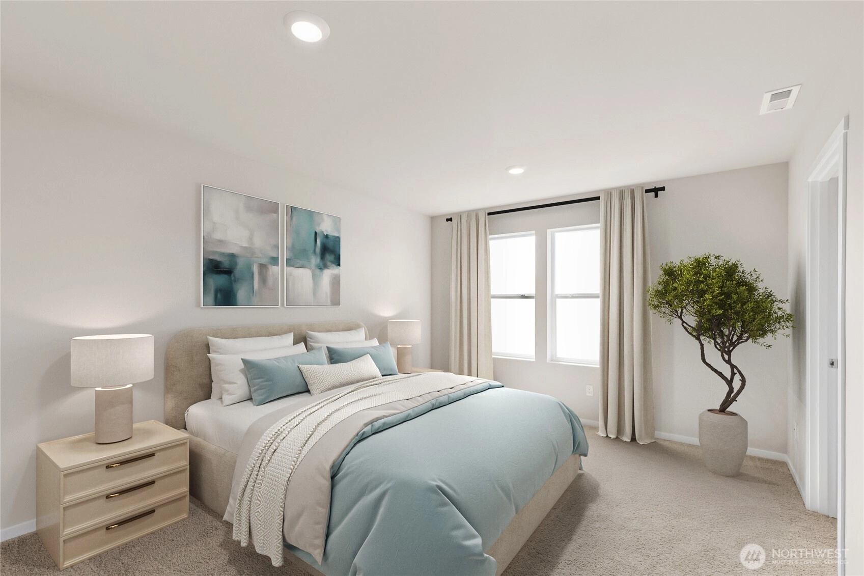 Say hello to The Juniper plan! Its bright, open main level has extended laminate hardwood throughout. The kitchen is designed for entertaining with a large eating island, quartz counters, light painted cabinetry, walk-in pantry, and stainless-steel appliances. Upstairs you’ll find the primary bedroom with ensuite that has double vanity and a large walk-in closet. Home boasts A/C, home automation package, 240Volt outlet for a car charger, plus a 1-2-10 year warranty! Bakerview is a stunning new community featuring pickleball courts, basketball court, playgrounds, picnic structures & tree-lined sidewalks. Ask about our great rates and lender incentives! Buyers must register your Broker on the first visit, including open houses.