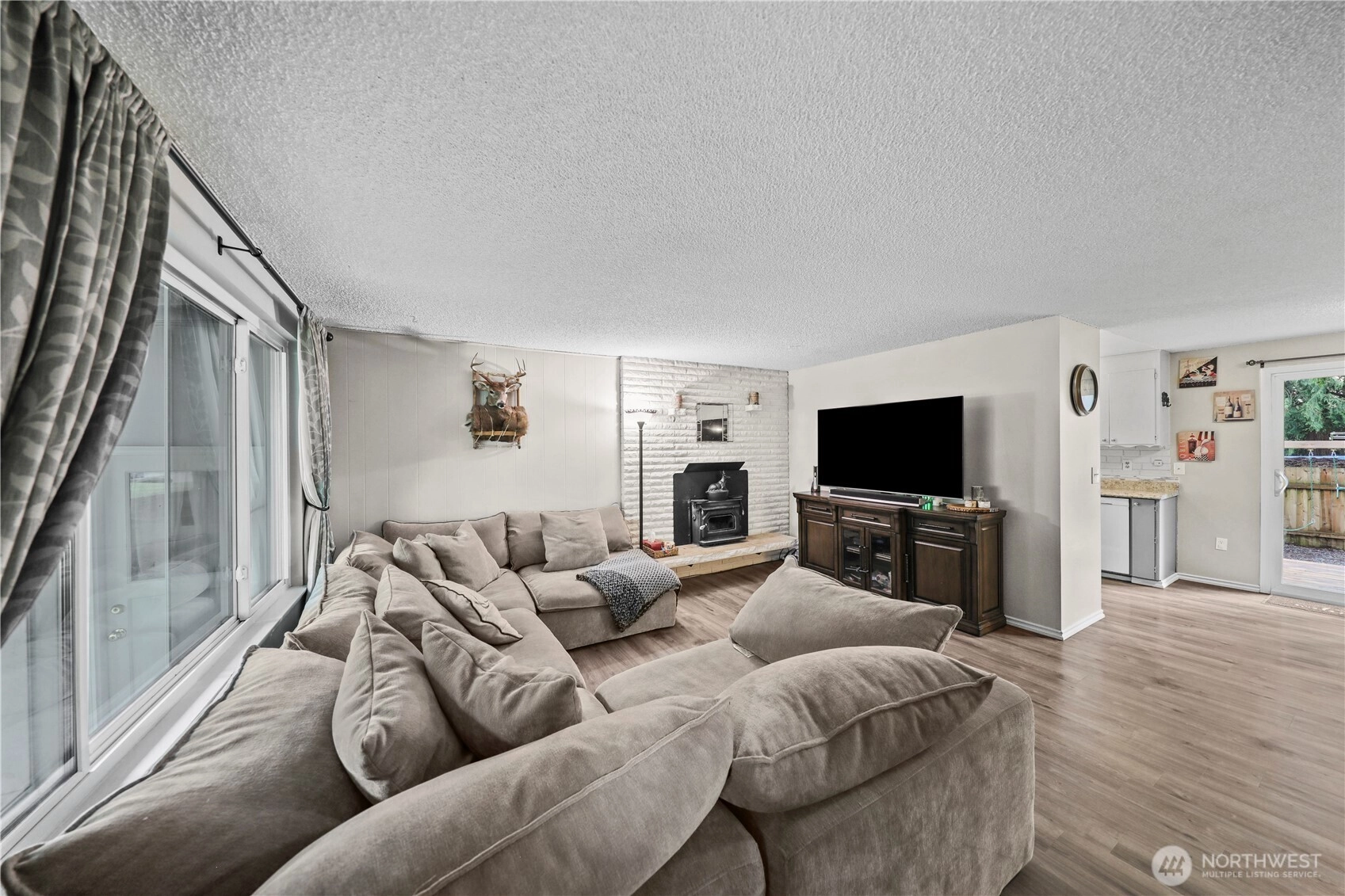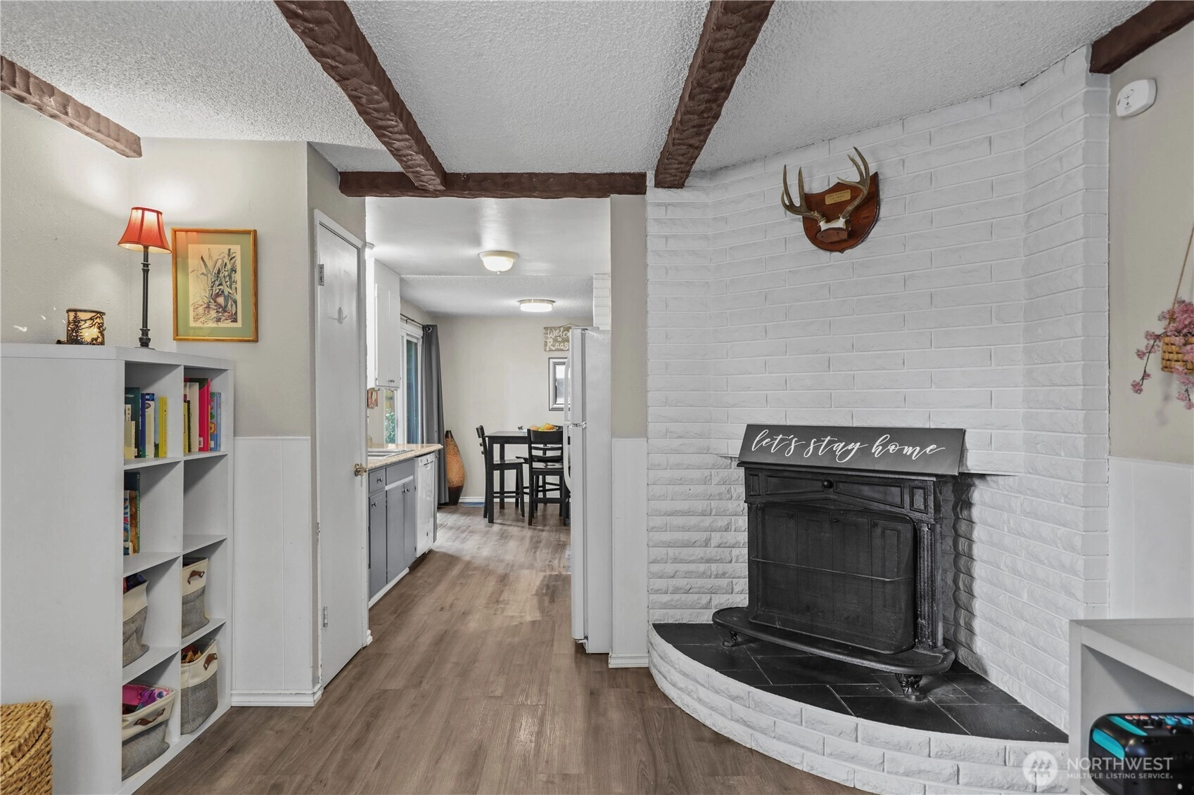 Welcome to Brooklake Manor and no HOA!!! This charming home sits on a spacious corner lot, ready for you to move in! The generous living room features a fireplace and flows seamlessly into the dining area. You'll find three well-sized bedrooms and a full bathroom with a convenient laundry space. The bright and airy walkthrough kitchen leads to the cozy family room, complete with a fireplace. Updated bathroom, new LVP flooring throughout, fresh exterior paint and new roof. Enjoy the convenience of an oversized 1.5-car garage and 2 separate gated entrances for double the RV storage space plus an 8x12 shed with an additional 5x12 covered structure. Located near shopping and easy access to I-5, this home is a must-see!