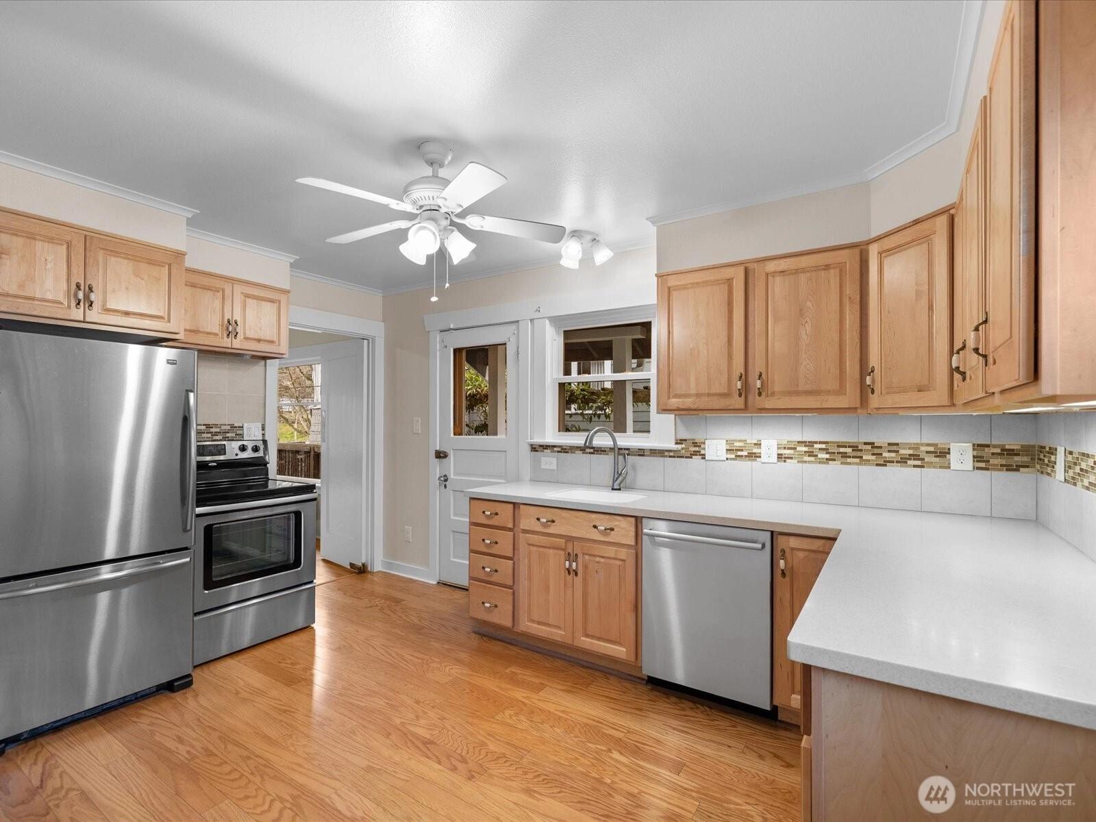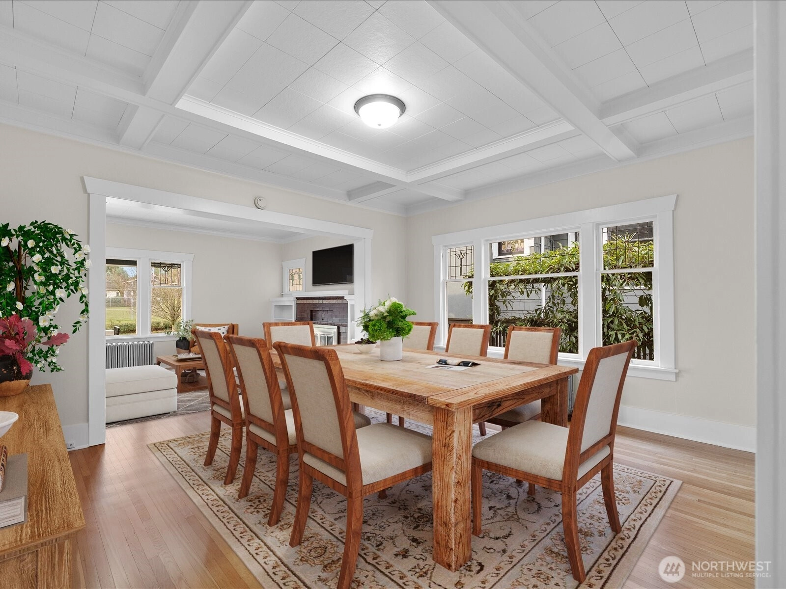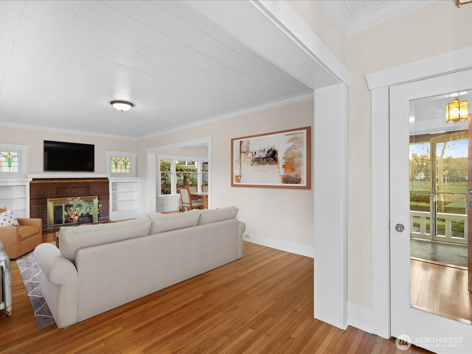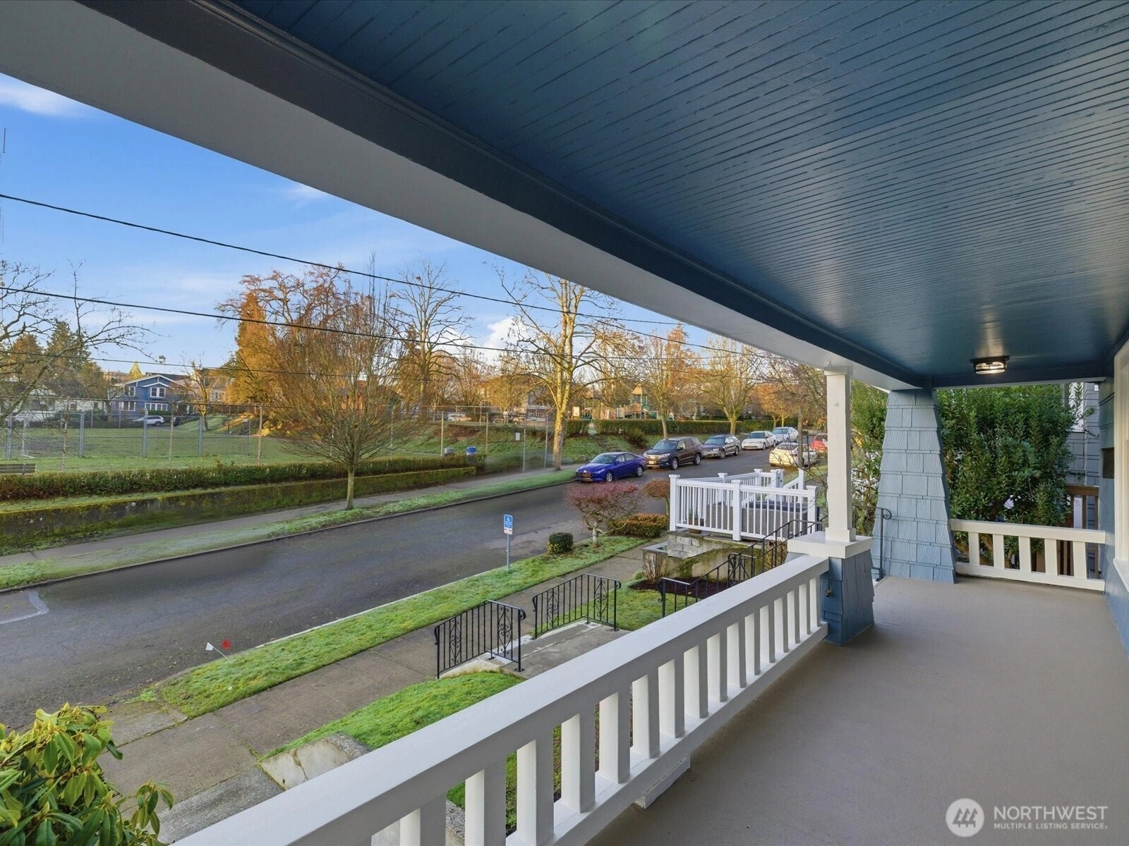 Bungalow style Craftsman-built home with inviting covered porch faces large park. Refinished original hardwoods, tall box beam ceilings, gas fireplace, pictures windows with leaded accent panes, built-ins, and extensive wood trim offer old world charm while the updated kitchen, baths, furnace, windows, roof, and more offer modern day convenience. 4 beds & 2 baths on two levels. Daylight basement boasts large fam rm w/ wall length closets. Heated garage w/ workbench plus bonus storage area. Central location just a few short blocks from Queen Anne's major shopping/restaurant district!
