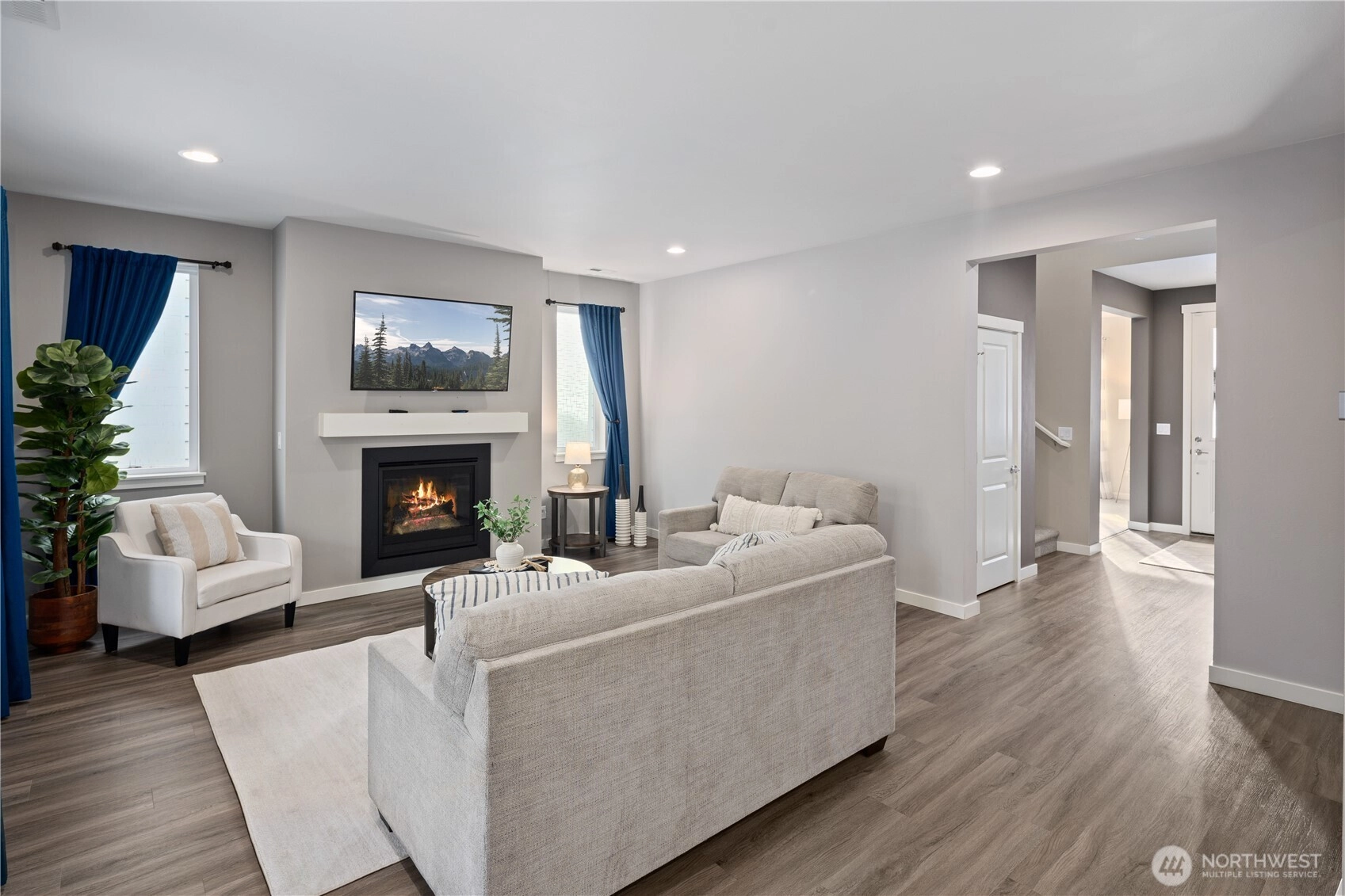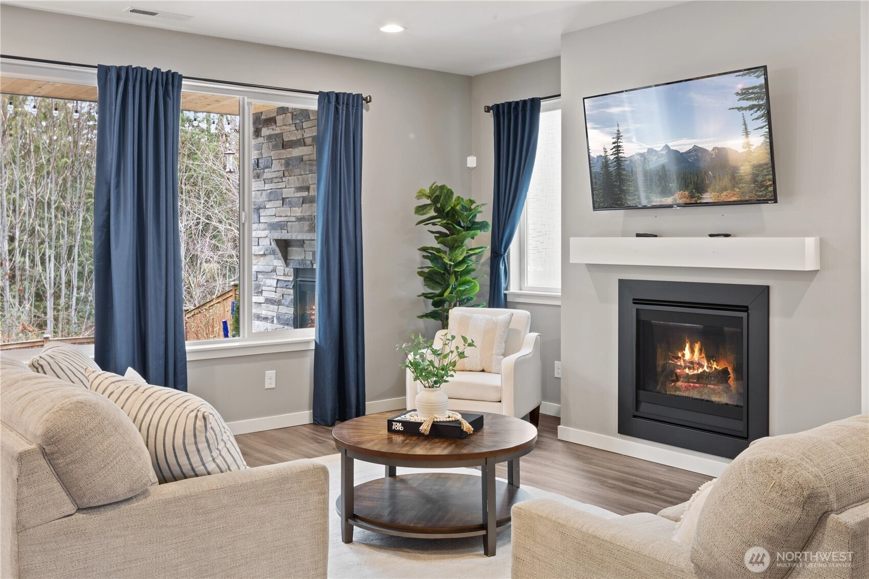 Welcome Home! Immaculate CalAtlantic resale—this one-owner home has been meticulously cared for and thoughtfully designed throughout. Offering 4 bedrooms and 2.5 baths, the open and functional floor plan provides generous space in every corner. The main level features a den or formal living area, spacious living room, dining area, and a large sliding door that opens to an expansive patio. Enjoy added privacy with serene green space to the north, bringing nature right to your backyard. Cozy up by the gas fireplace—indoors or out—perfect for year-round enjoyment. The expansive kitchen showcases a large island ideal for dining and entertaining, along with high-quality appliances and a convenient half bath on the main level. Upstairs, you’ll find a versatile loft with plenty of room for activities or relaxation. The spacious primary suite includes a luxurious five-piece bath and peaceful views of green space and evergreen trees, offering comfort and privacy. All secondary bedrooms are generously sized. A/C installed and ready for summer. Just steps to trail entrance to 200 acres of green space. This beautifully maintained home is a must-see—come experience it for yourself!