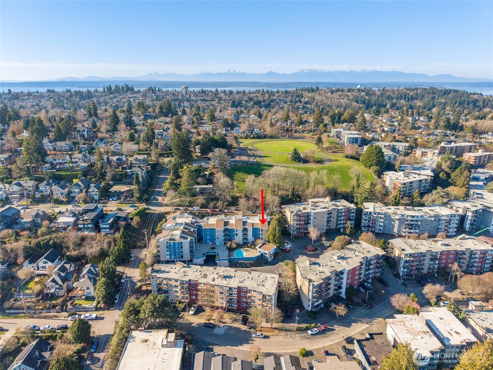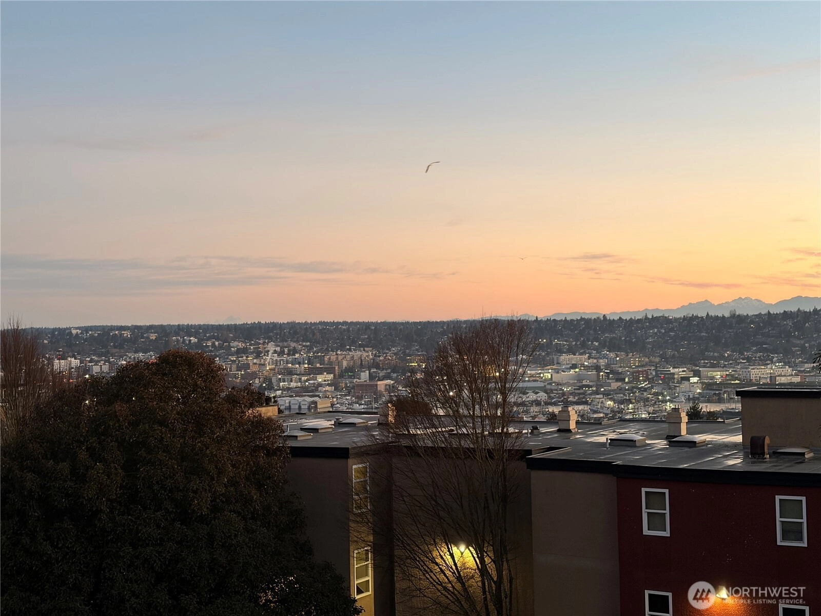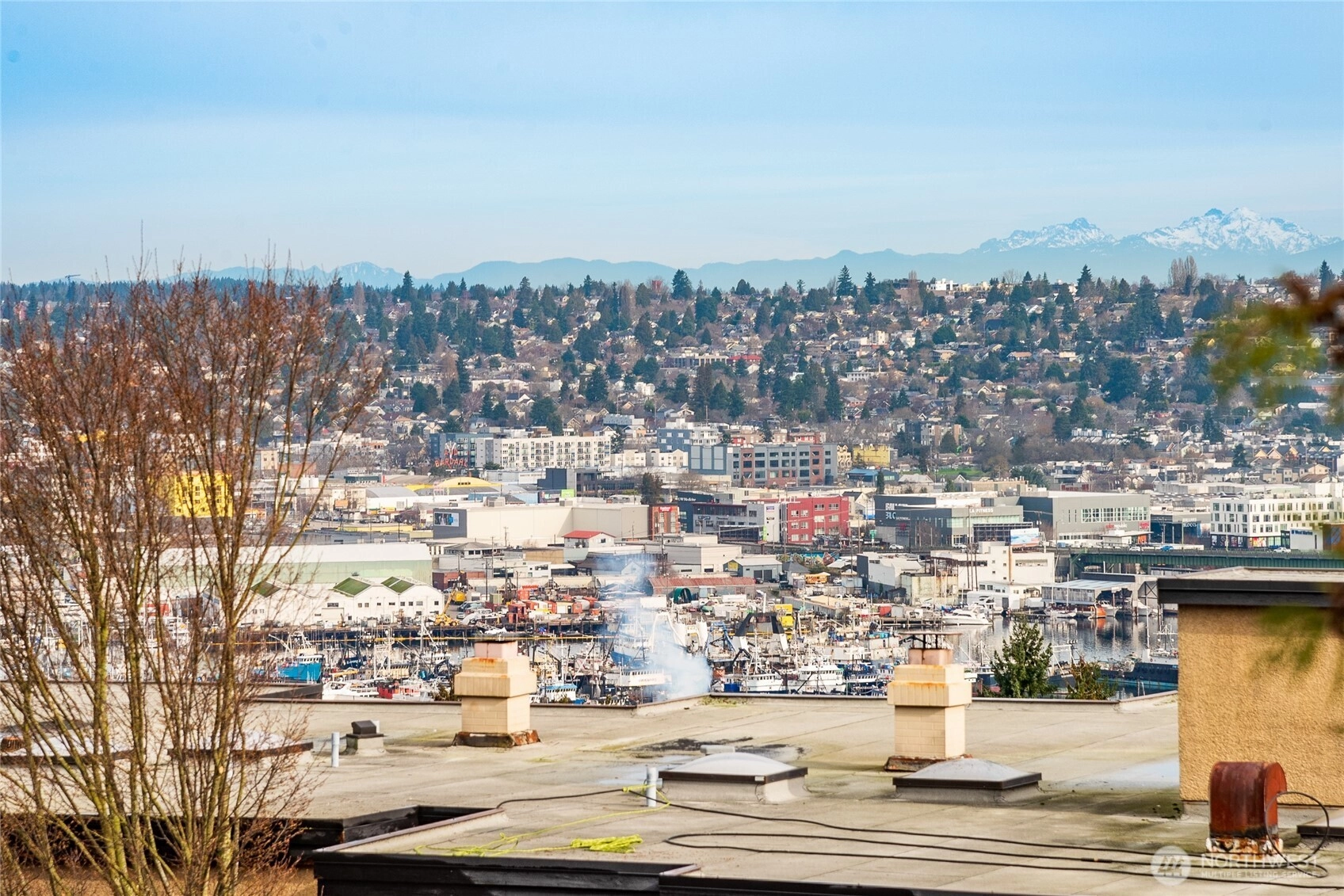 Seize the opportunity to own this top-floor, corner, view unit at Magnolia Ridge, a well-managed and recently updated condominium. This home offers a perfect balance of grandeur and warmth, with vaulted ceilings and transom windows that fill the space with natural light and a sense of openness, while the wood-burning fireplace adds a cozy and inviting ambiance. The updated kitchen with statement tile, quartz countertops and stainless appliances includes an island that opens to the dining and living areas ideal for entertaining, while the large freshly carpeted bedroom with double closets and the spacious bathroom with spa tub provide ultimate relaxation. Step onto the covered deck to enjoy views of the ship canal, Ballard Bridge, Mt. Baker, the Cascades, peekaboo view of the Space Needle and Mt. Rainier. Additional features include an in-unit washer/dryer, secure building access, covered parking, a storage unit, and a community bike room. The complex boasts exceptional amenities, including a pool and cabana, and has undergone significant enhancements since 2019, such as new windows, roof, siding, seismic retrofit, elevator, and plumbing throughout. Conveniently located near Magnolia Manor Park, Discovery Park, Magnolia Village, Ballard, Queen Anne, Fremont, and Downtown, it is the ideal urban retreat! All this PLUS, Seller will payoff special assessment at closing.