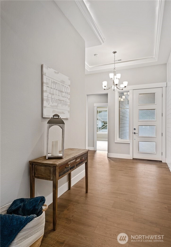 Set among mature trees in desirable Edgewood, this newer luxury home community offers a refined blend of privacy, tranquility, and modern design. Situated on its own spacious lot, this 2,367 square foot modern craftsman home showcases thoughtful craftsmanship and upscale finishes throughout. As you enter into the foyer and then into the living area you'll enjoy custom tray ceilings and intergraded ambient LED cove lighting, crisp white millwork, high vaulted ceilings and a gas fireplace with full-height stone create a warm yet sophisticated ambiance. The chef’s kitchen features quartz countertops, soft-close cabinetry, stainless steel appliances including industrial refrigerator, dual oven and a built-in beverage fridge—perfect for entertaining. The home offers three large bedrooms and 2.5 baths, including a spacious primary suite with an elegant private bath designed as a relaxing retreat with freestanding tub. Enjoy year-round comfort with a newer AC system, along with covered patios equipped with a gas fireplace and TV outlet for seamless indoor-outdoor living which includes a gazebo. Additional highlights include a spacious three-car garage, full front and back landscaping and numerous refined details throughout. A must-see home offering luxury, comfort, and timeless appeal.