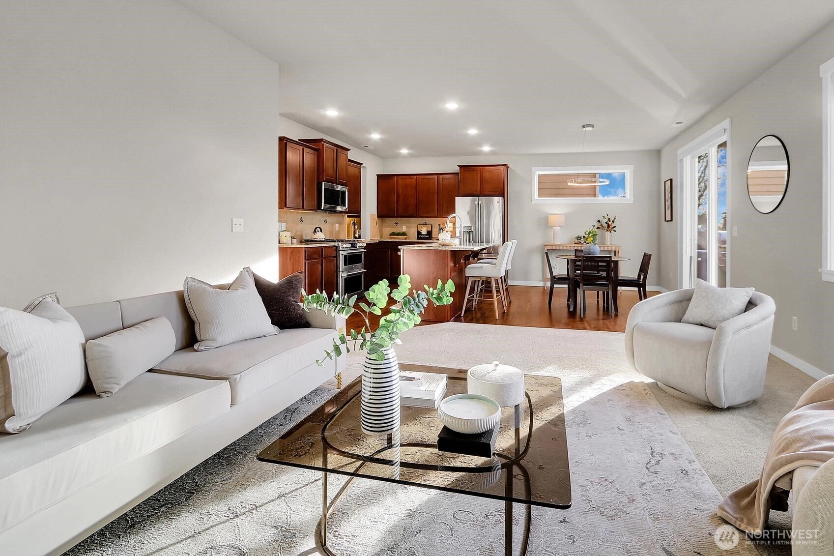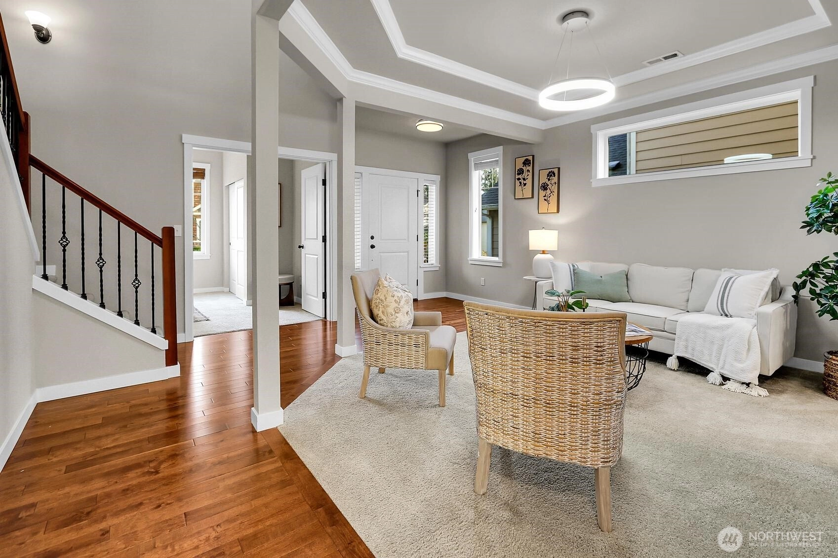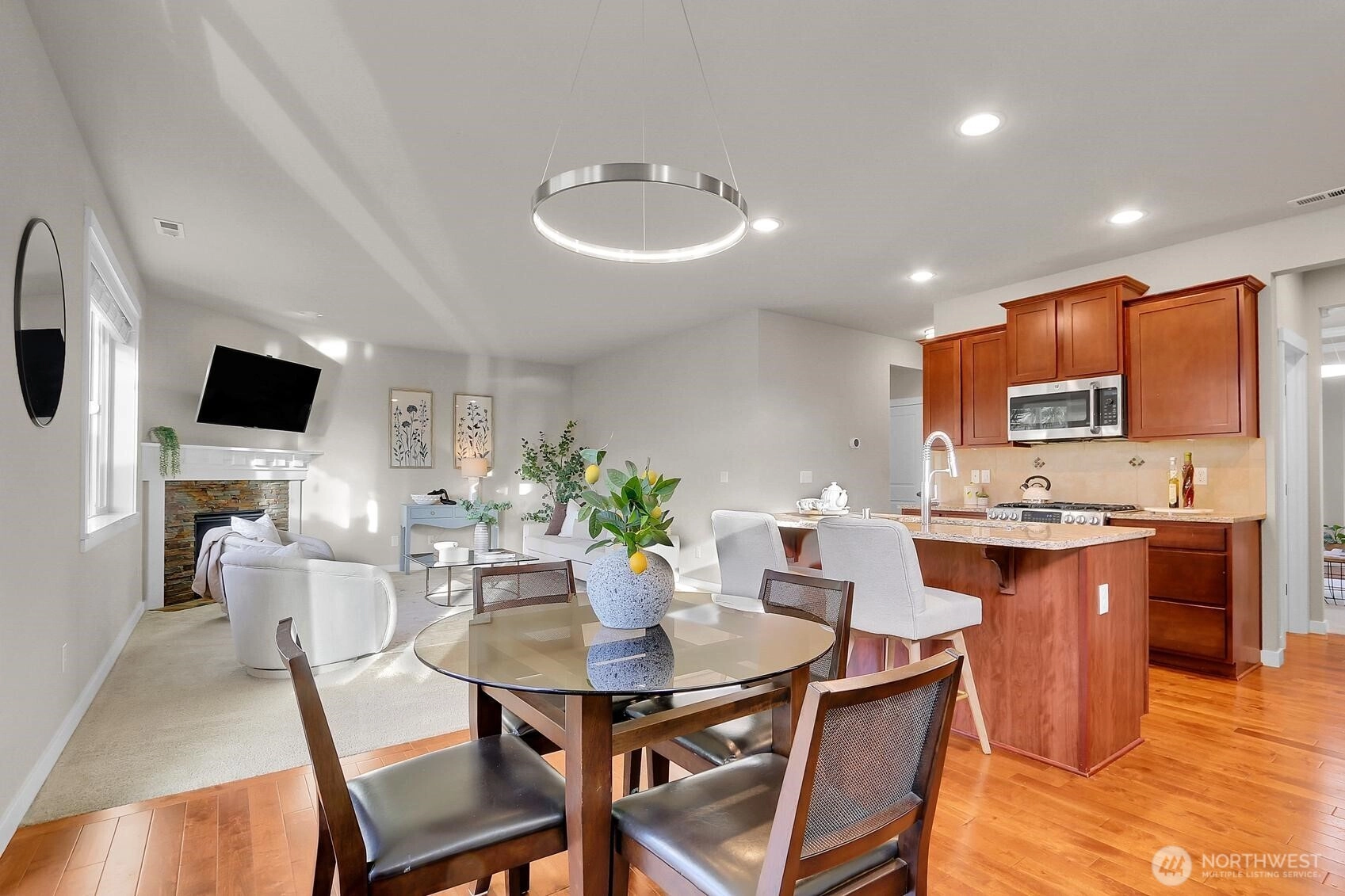 Welcome to this centrally located Lynnwood home, tucked into a quiet residential neighborhood that offers minutes-away access to I-5 and I-405 while maintaining the serenity of being just steps from Lake Serene. This well-maintained, one-owner home has been thoughtfully cared for over the years. A welcoming foyer with soaring two-story ceilings opens to an inviting living room and flows seamlessly into the generously sized kitchen, complete with a walk-in pantry and separate bar alcove. A perfect layout for entertaining- enjoy your morning coffee on the deck or host afternoon BBQs with a gas line already plumbed! The spacious floor plan features five bedrooms, including a main-floor bedroom and ¾ bath ideal for multi-generational living, guest accommodations, or a home office. Upstairs, the expansive primary suite offers vaulted ceilings, a five-piece bath, and a large walk-in closet. A three-car garage provides ample storage and includes an EV charger for modern living. Enjoy the perfect balance of privacy, functionality, and proximity to shopping, dining, and commuter convenience—located in the sought-after Mukilteo School District, this is the one you’ve been waiting for!