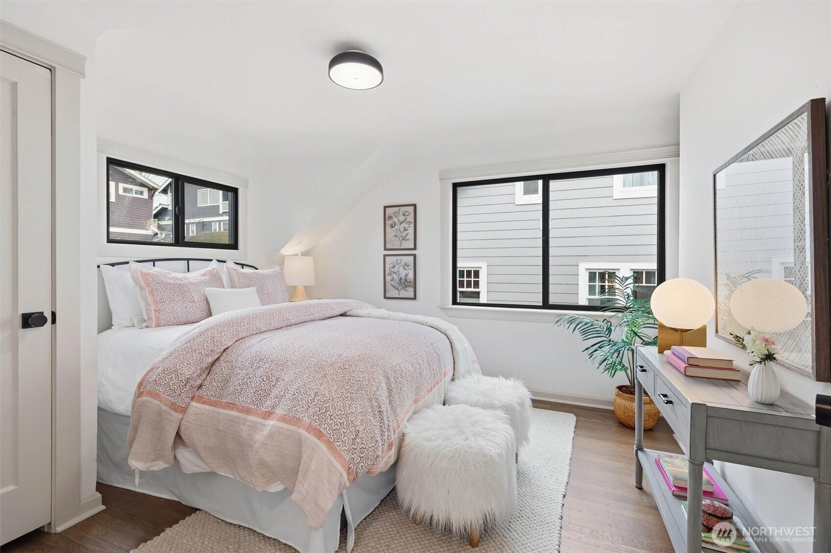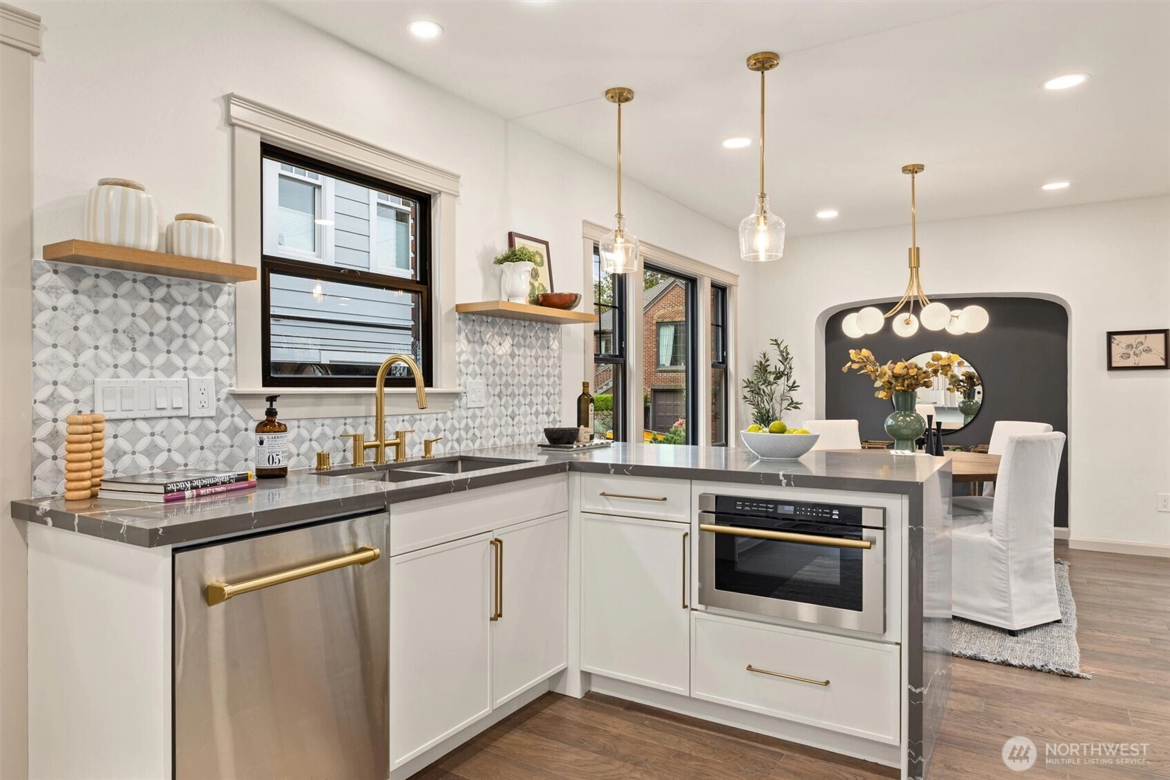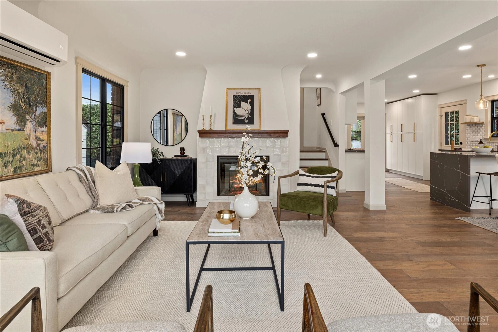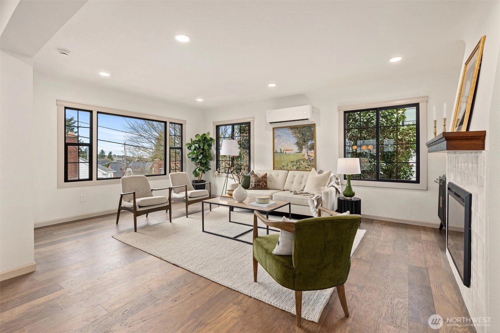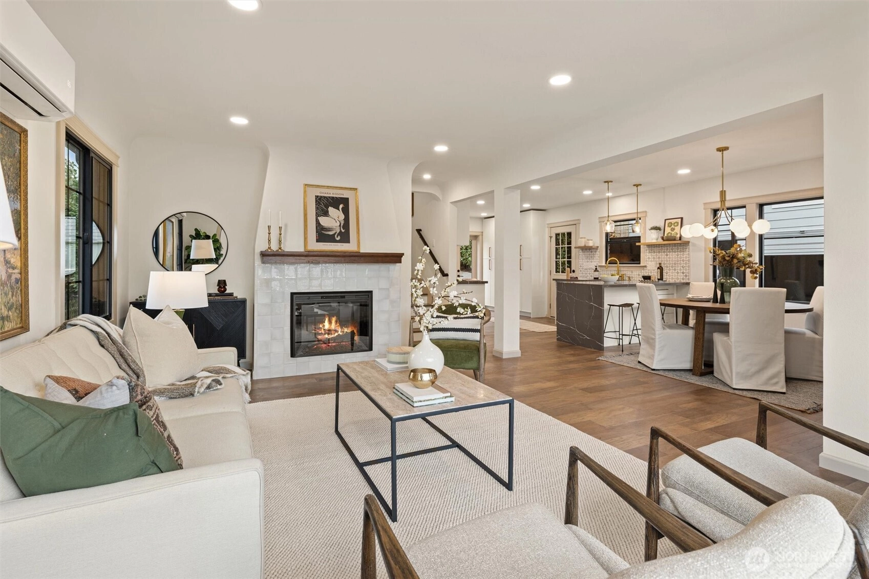 Queen Anne brick classic, fully updated for today’s modern lifestyle. Meticulous renovations completed with permits — new electrical, plumbing, heating and air conditioning, windows, roof, and interior finishes. Timeless architectural features preserved as the floorplan is intelligently modernized. 2512 Nob Hill Ave N offers 2,500 sq ft of comfortable living across four bedrooms and three bathrooms, plus a crow’s-nest office with a balcony and views of the Cascade Mountains. The reimagined main level showcases an open floorplan and French doors to the backyard for seamless indoor/outdoor entertaining. Living room captures views of the Ship Canal and Olympic Mountains. Main floor includes one bedroom and a full bathroom. Upstairs finds a primary ensuite bedroom with even better views and a second bedroom. A fully finished basement adds a fourth bedroom, a bathroom, a laundry room, and a spacious family room. Nestled on a charming street in upper Queen Anne with an exceptional location — just a 0.5-mile stroll to shops, restaurants, grocers, and a host of popular amenities. 1-car attached garage plus additional driveway parking. Convenient access to Highway 99 for an effortless commute to downtown Seattle or SLU. Your urban oasis awaits — don’t miss this extraordinary opportunity to live in the heart of Seattle’s most vibrant neighborhoods!