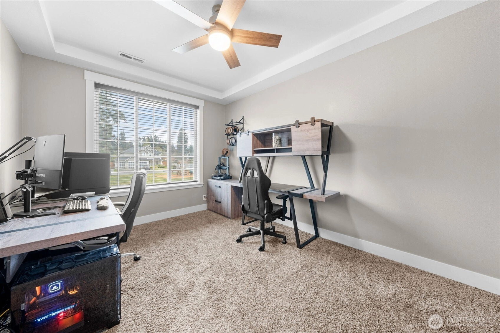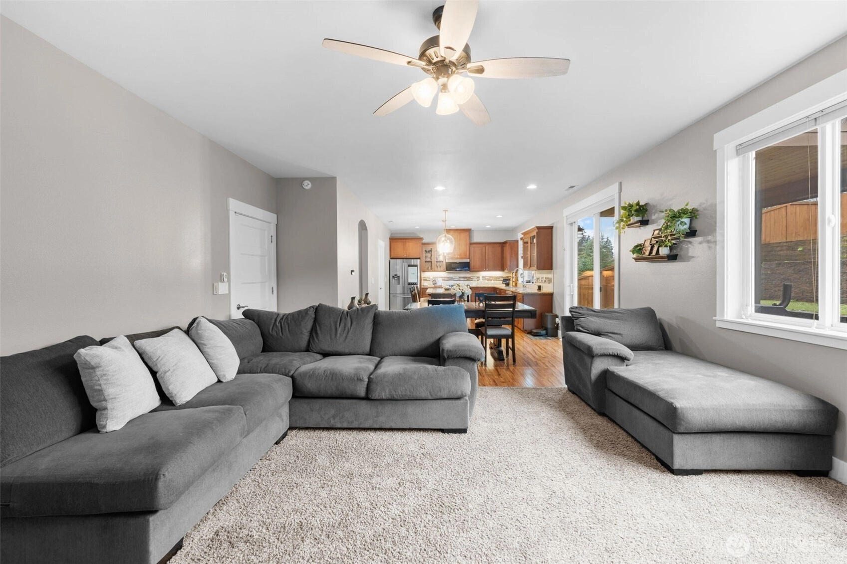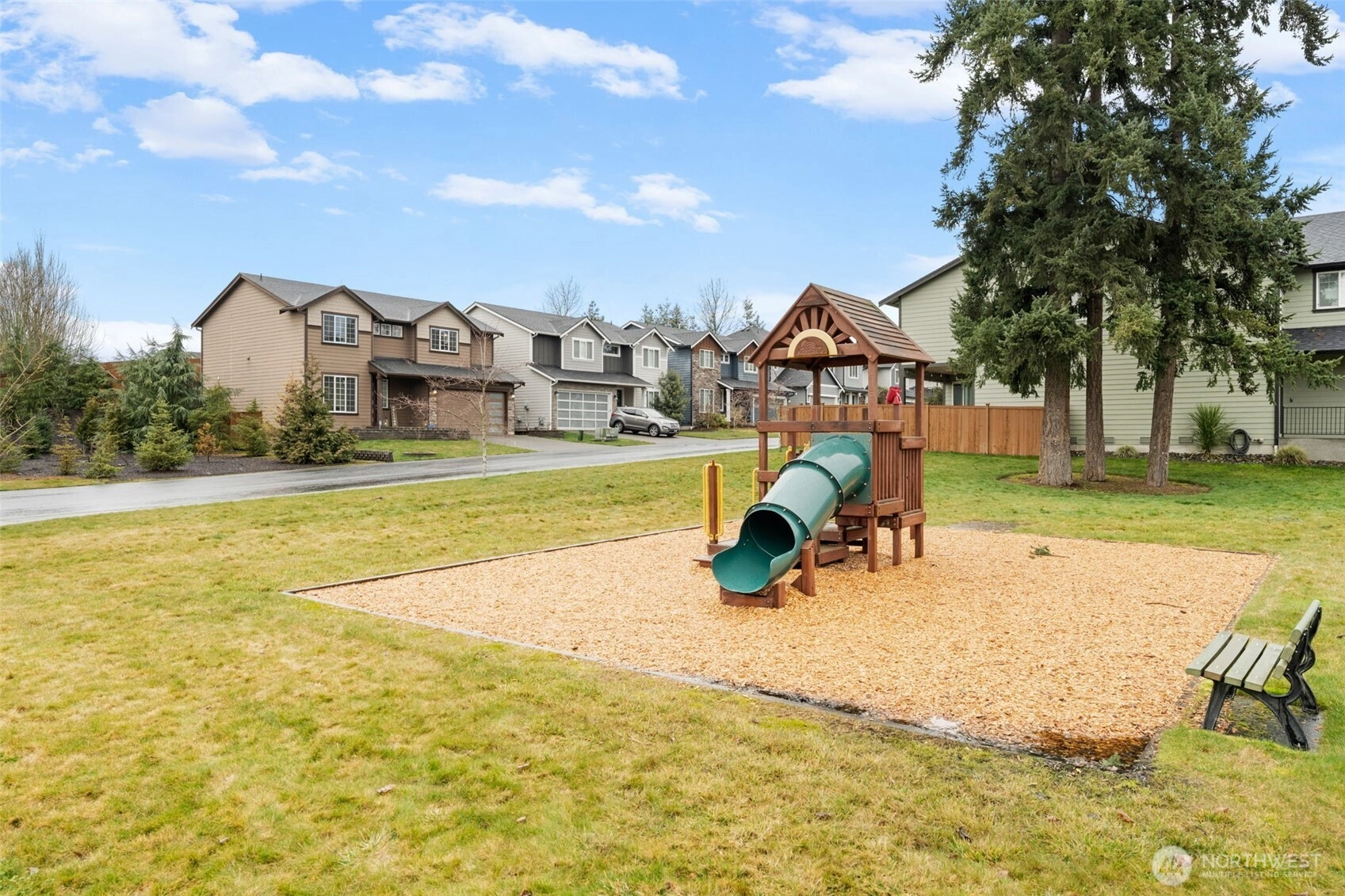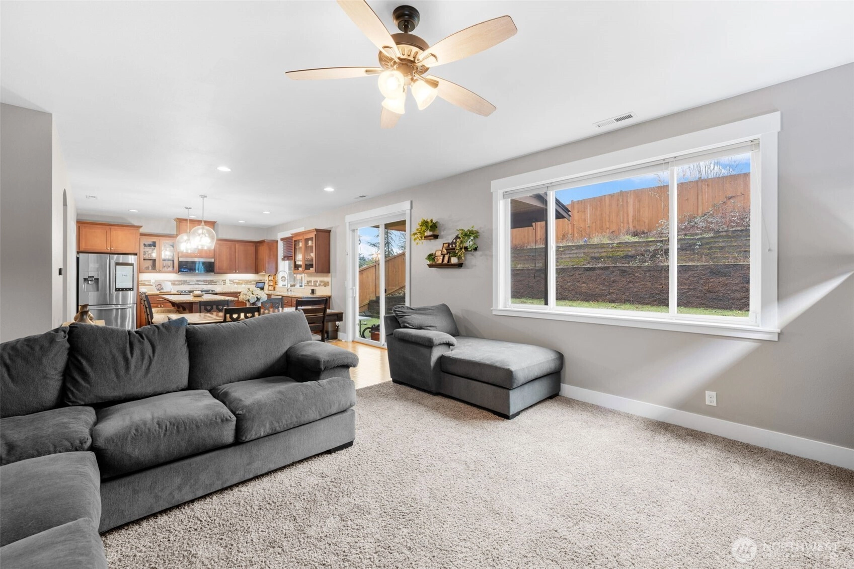 Welcome home to The Amethyst by Great NW Homes, a residence designed to impress from the moment you step inside. A dramatic two-story entry with a partial open handrail sets the tone, leading to a convenient front-facing office with a large window, carpet and ceiling fan is ideal for working from home as it is located away from the active areas. ½ bath on the main. The true great-room layout blends living and large kitchen spaces seamlessly, offering abundant cabinetry, generous countertop space, and an exceptional walk-in pantry. Gas fireplace in living room for those cozy evenings. Four oversized bedrooms include a spacious primary retreat featuring a luxurious five-piece ensuite and huge Walkin closet. Laundry room is located upstairs. Thoughtful finishes elevate every corner: granite slab counters, custom cabinetry, laminate flooring, and stainless-steel appliances. Outdoors, enjoy a fully landscaped yard with terraces great for gardening and fully fenced, a covered back porch great for BBQing, and so much more...crafted for comfort, style, and everyday living. Large two car garage. Terra Vista Community features playground and picnic area all on a quite dead-end cul-de-sac. Close to the mall, schools, restaurants, and highway.