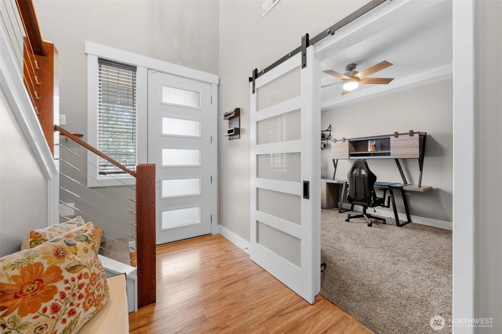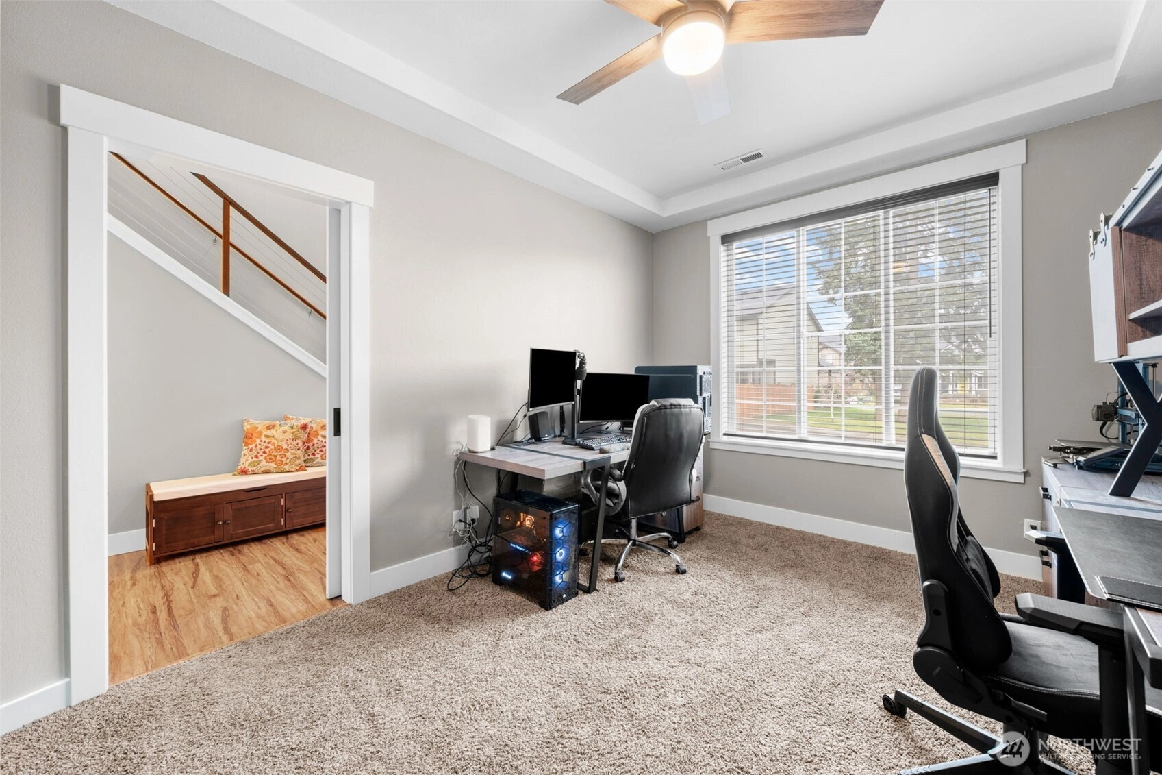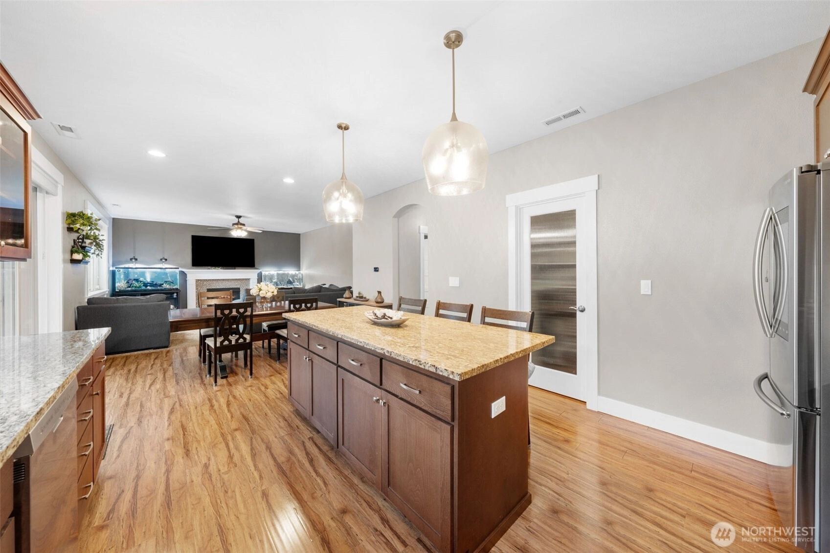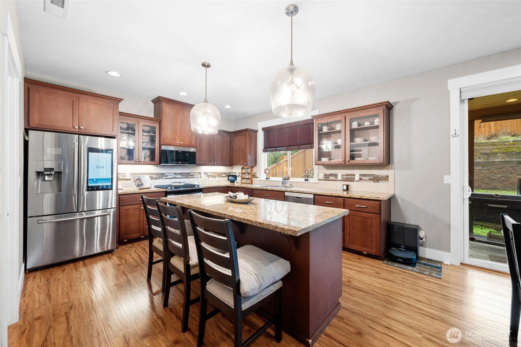 Welcome home to The Amethyst by Great NW Homes, a residence designed to impress from the moment you step inside. A dramatic two-story entry with a partial open handrail sets the tone, leading to a convenient front-facing office with a large window, carpet and ceiling fan is ideal for working from home as it is located away from the active areas. ½ bath on the main. The true great-room layout blends living and large kitchen spaces seamlessly, offering abundant cabinetry, generous countertop space, and an exceptional walk-in pantry. Gas fireplace in living room for those cozy evenings. Four oversized bedrooms include a spacious primary retreat featuring a luxurious five-piece ensuite and huge Walkin closet. Laundry room is located upstairs. Thoughtful finishes elevate every corner: granite slab counters, custom cabinetry, laminate flooring, and stainless-steel appliances. Outdoors, enjoy a fully landscaped yard with terraces great for gardening and fully fenced, a covered back porch great for BBQing, and so much more...crafted for comfort, style, and everyday living. Large two car garage. Terra Vista Community features playground and picnic area all on a quite dead-end cul-de-sac. Close to the mall, schools, restaurants, and highway.