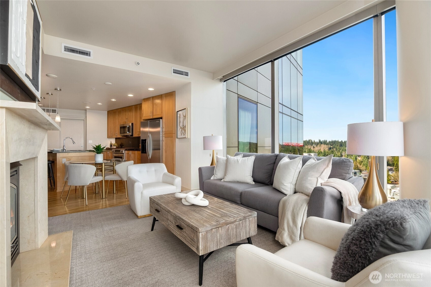 Experience the pinnacle of urban sophistication in this stunning corner residence at Washington Square! Enveloped in floor-to-ceiling glass, this light-filled sanctuary offers views of the Cascade Mountains with a seamless connection to the Bellevue skyline. The interior features imported hardwood floors, a large private balcony and a cozy gas fireplace. Standout convenience defines this home, featuring a premier parking space located directly next to the elevator and a dedicated storage unit. Strategically positioned in the heart of Bellevue, you are steps from Amazon, the world-class shopping of Bellevue Square, and the serene Downtown Park. Residents enjoy 24-hour concierge, fitness facility, spa and owner’s lounge with a chef’s kitchen. This the ultimate hub for the modern professional seeking convenience and lifestyle!