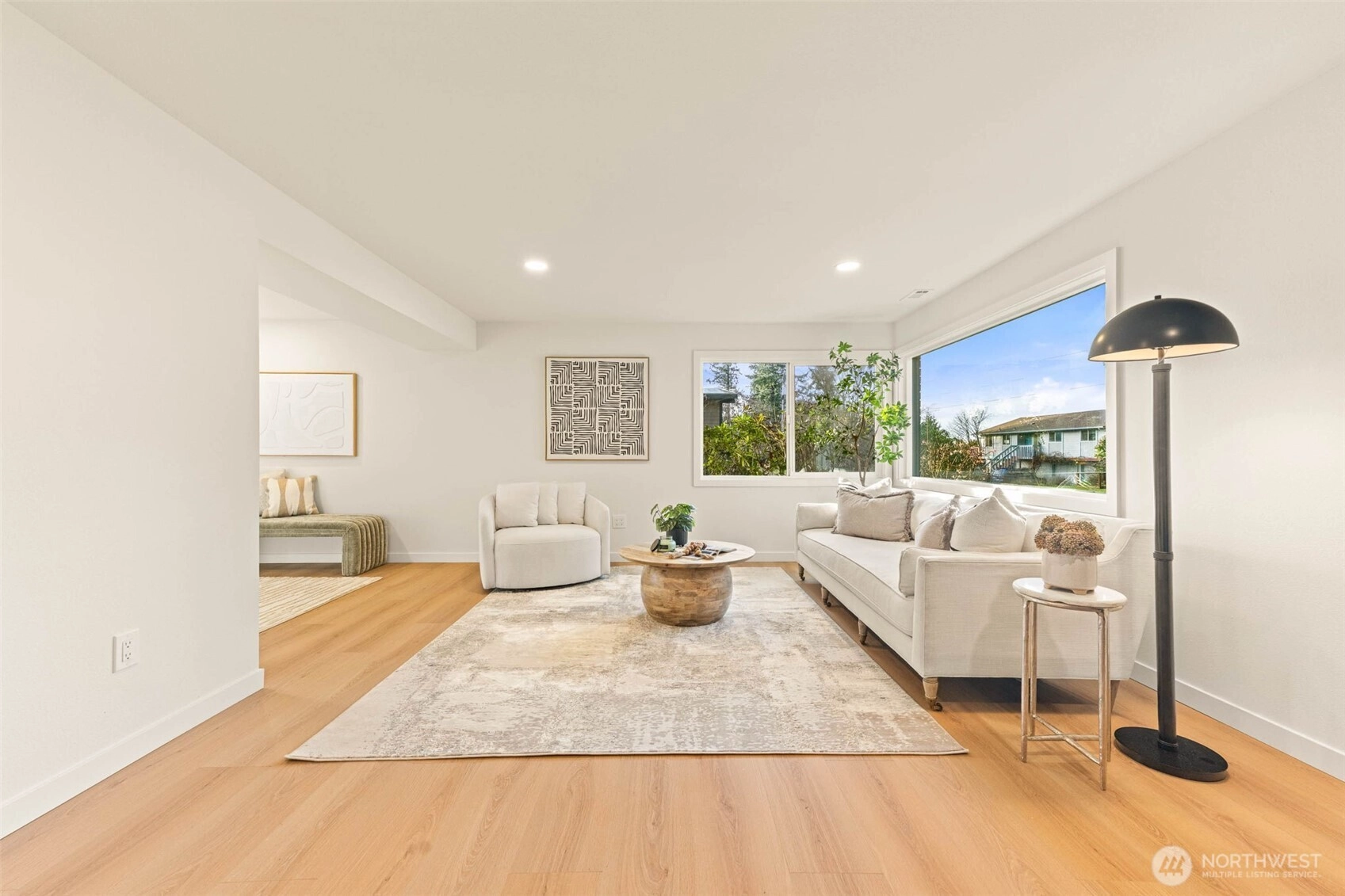 Framed by peek-a-boo views of the water and the Olympic Mountains, this beautifully remodeled Edmonds home is set within one of the area’s most established neighborhoods, just minutes from the heart of downtown. Filled with abundant natural light, the home has been thoughtfully reimagined and is truly turn-key, with permits in hand and finishes that strike a balance between modern design and timeless appeal. Large windows throughout create a bright, airy atmosphere, while the subtle coastal outlook provides a constant reminder of the home’s Pacific Northwest setting. At the center of the home, the designer kitchen is both striking and highly functional, anchored by an oversized island with generous seating- ideal for everyday living and effortless entertaining. The kitchen flows seamlessly into the main living space, where a wet bar just off the living room creates a natural gathering point for hosting and connection. Three bedrooms on the main level offer a rare and highly desirable floor plan, providing comfort, convenience, and ease of living. Downstairs, a private separate entrance leads to a secondary living room and fourth bedroom, creating flexible space well suited for guests, multi-generational living, or extended use. attached two-car garage is complemented by generous additional parking, offering endless opportunity for boat or RV storage—an exceptional feature this close to downtown Edmonds. Located within the award-winning Edmonds School District & free from HOA!