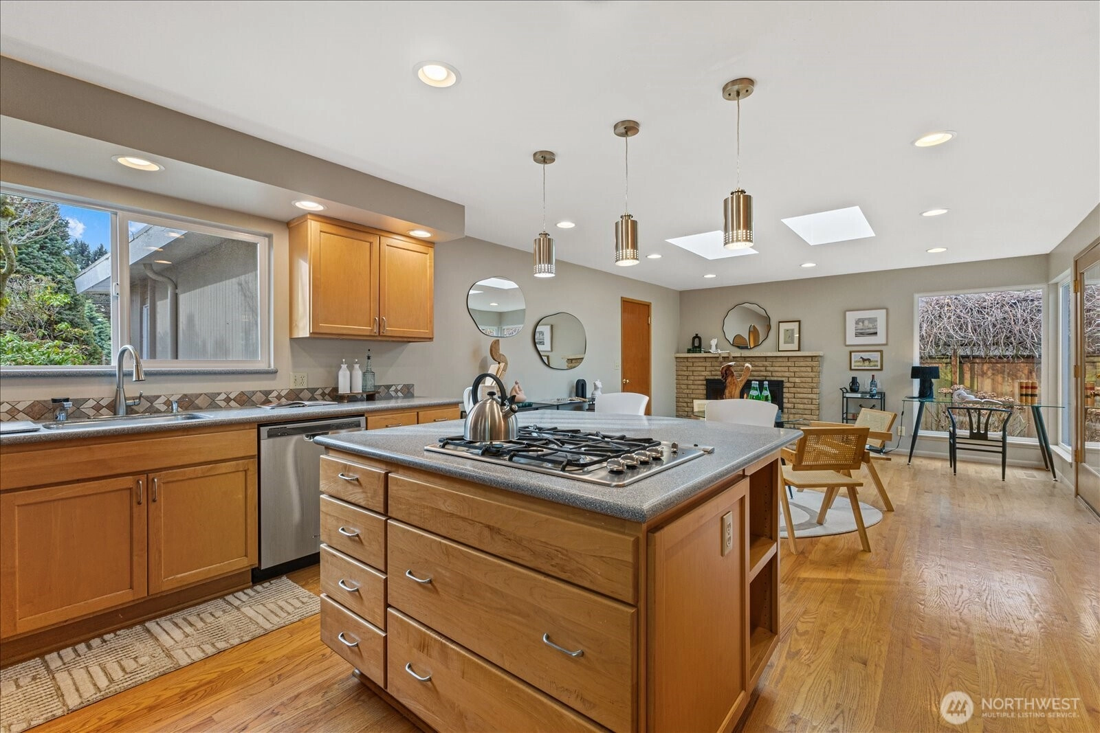 Nestled in the highly sought-after Windermere neighborhood. This home combines a true sense of community with no HOA restrictions. Enjoy a peaceful residential setting just minutes from Magnuson Park and the Burke-Gilman Trail. This versatile 5-bedroom, 2.75-bath residence is perfect as-is, with a one-story main level plus a daylight basement—ideal for those seeking minimal stairs or multi-generational living. The bright kitchen, formal living and dining rooms, and multiple fireplaces create a warm, inviting atmosphere, while skylights fill the home with natural light. New carpet throughout adds a fresh, move-in-ready touch. The daylight basement offers a spacious recreation room, a fifth bedroom perfect for media or hobbies, abundant storage, and a handy workbench area. Additionally, approximately 780 sq. ft. of unfinished basement space provides endless opportunities for a home office, gym, creative studio, or expansion. Whether you’re looking for rental income potential, space for a mother-in-law suite, or simply a home with room to grow, this property offers it all.