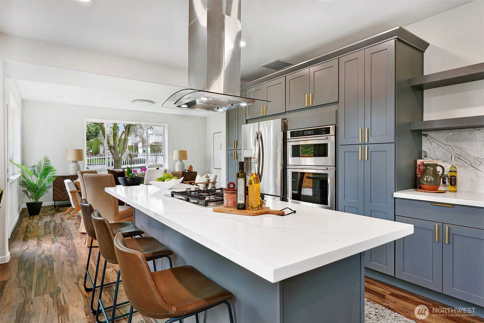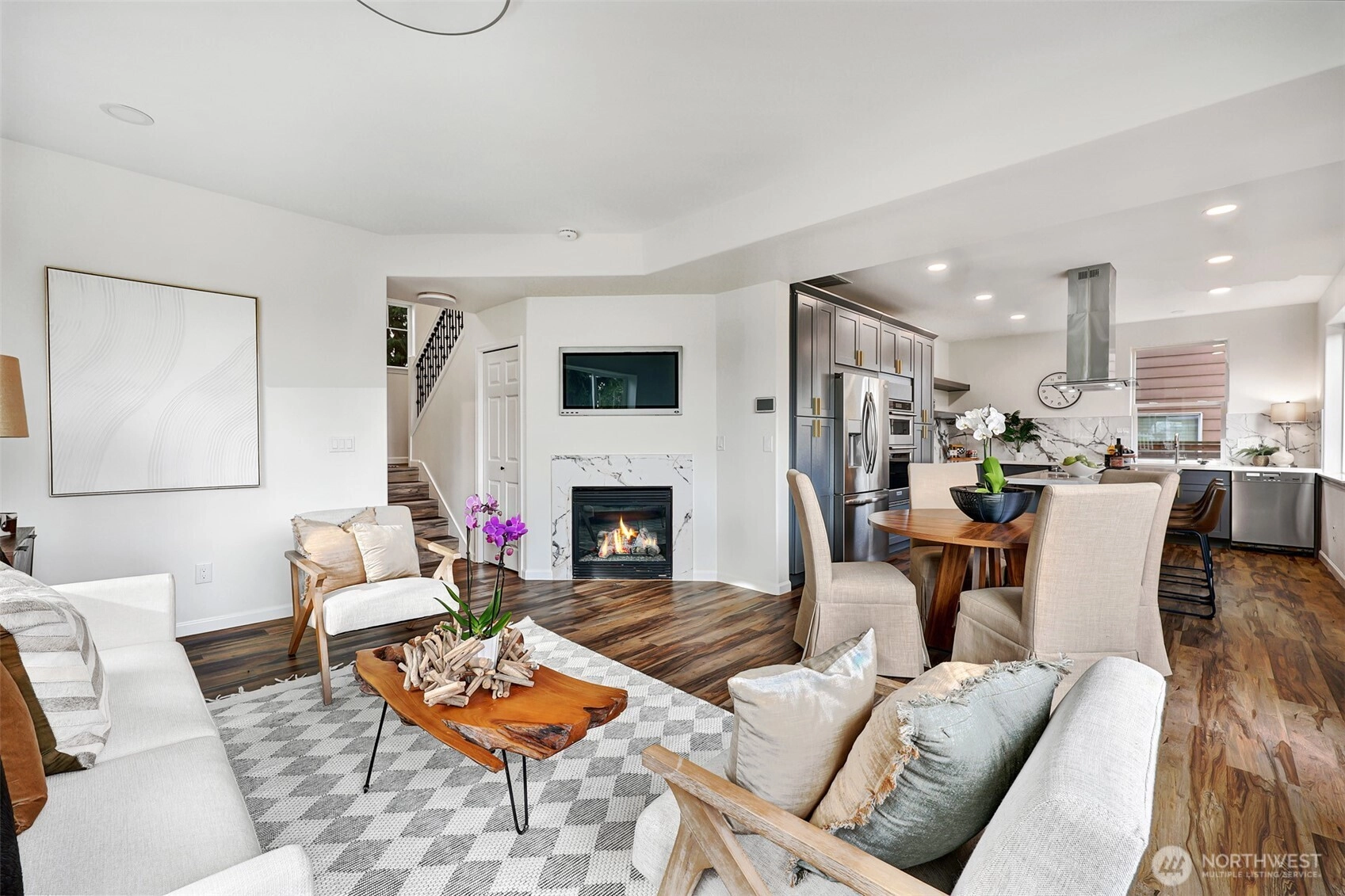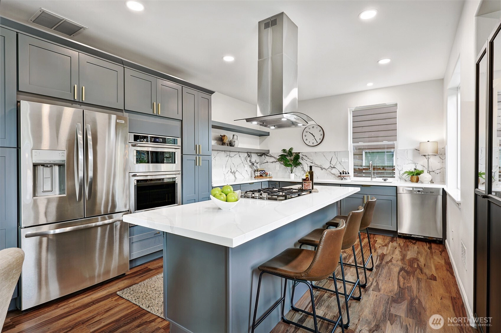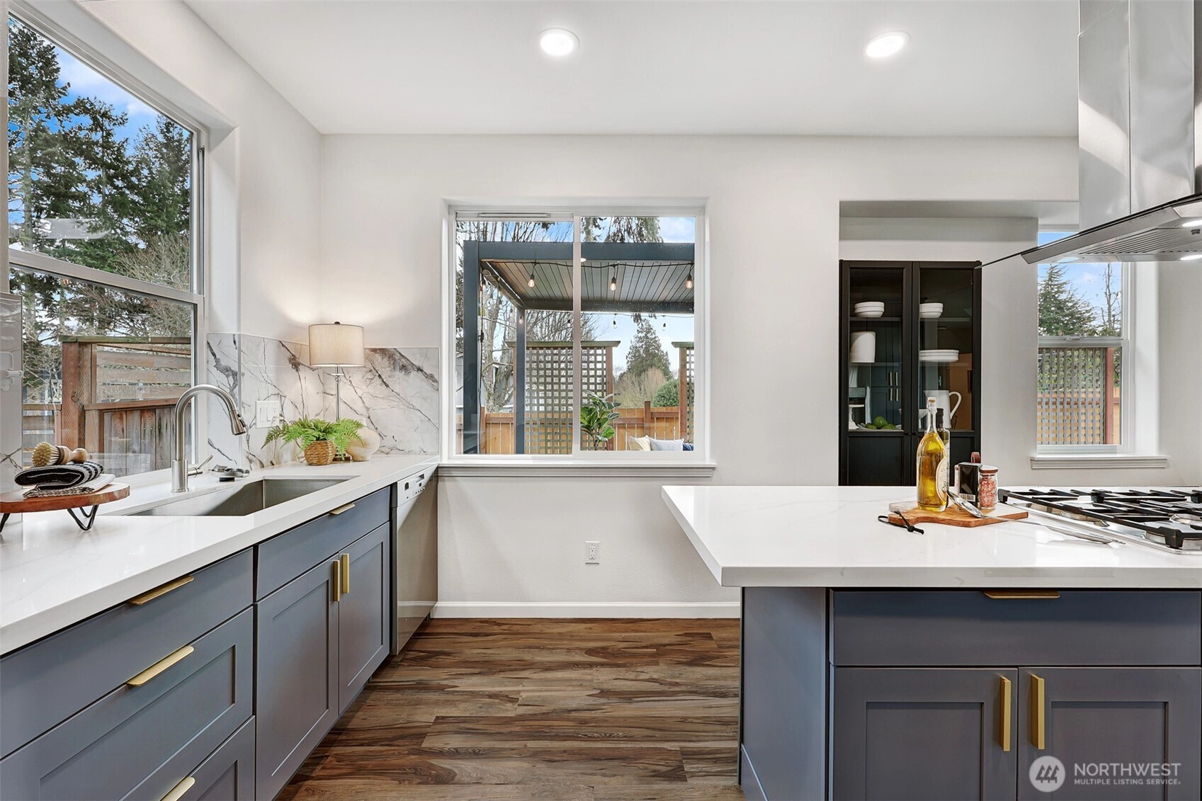 Bright and spacious Mountlake Terrace home situated on a private, fully fenced lot with mature landscaping and a spacious side yard – perfect for play or gardening. This home is an entertainer’s dream! Brand-new remodel includes an open-concept kitchen, dining room and lounge area. Reconfigured chef’s kitchen boasts all-new quartz countertops, cabinets, stainless appliances, and a large center island perfect for cooking and gathering. Second floor features additional rec-room flex space for entertaining – and entertainment – leading to a spacious primary with en-suite bath and an additional bedroom. Third level includes third and fourth bedrooms. All baths are newly updated; fresh interior and exterior paint, including garage. Central A/C keeps you cool in the summer. Cozy, lit gazebo and ample deck for year-round outdoor enjoyment. Centrally located in sought-after Edmonds School District, close to shops and only five minutes in either direction to MLT and Lynnwood Link light rail stations! Simply move in and enjoy!