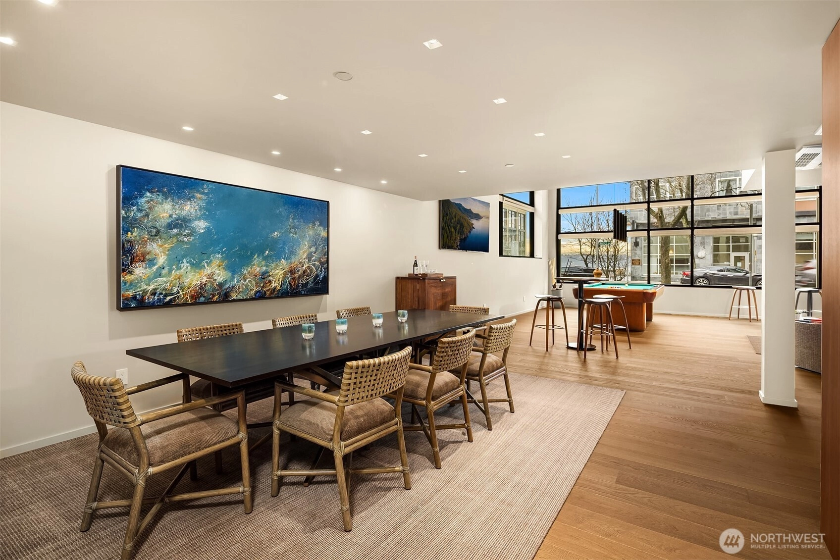 Executive-level property with a prime Belltown address. A complete renovation in 2020 produced this peerless residence with commercial flexibility. Two levels can be either a combined home or use the lower level as incredible entertaining space and the upper level as a luxury apartment. Rich woodwork throughout conveys a sense of quality and stability. Handsome fixtures grace every room, and custom lighting will impress as the interiors glow with one touch. A residential kitchen on the upper level features an induction range, ample storage, and an easy flow into the dining and living areas. Hidden surround sound throughout will flood the space with music, whether it's a quiet jazz or a spirited party. The main floor features two-story ceilings, a great room effect, discreet powder room, and commercial kitchen perfect for catering and hosting events. Sophisticated HVAC systems keep the interiors comfortable at all times, and custom motorized blinds can provide total privacy or be opened to unveil views of Elliott Bay. No other home in the Seattle core delivers the flexibility, luxury and utility offered in this distinct residence. The award-winning Banner Building, designed by Weinstein A+U, continues to inspire and thrill anyone who visits. Perfectly located for easy access to dining, shopping, Pike Place Market, waterfront and the world-class music and arts venues nearby. Large parking in secure garage. Explore the possibilities in this signature home today!