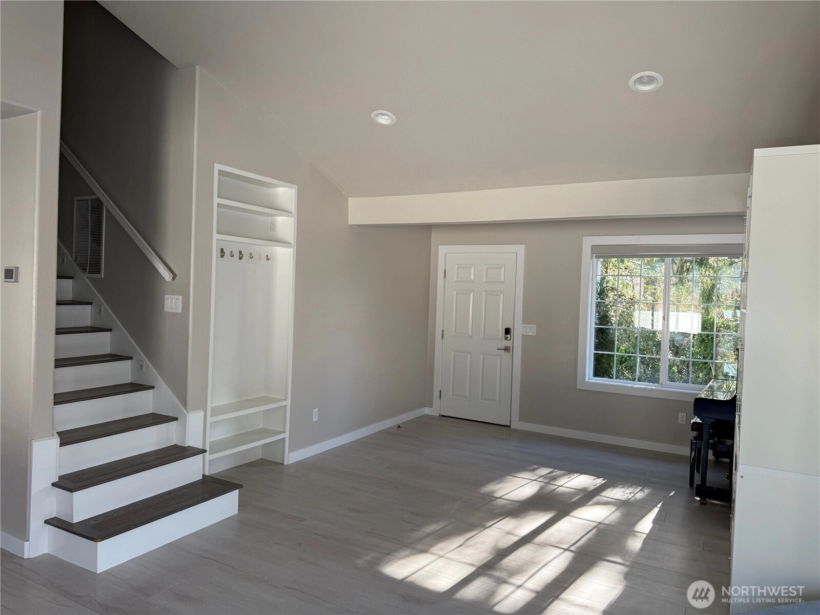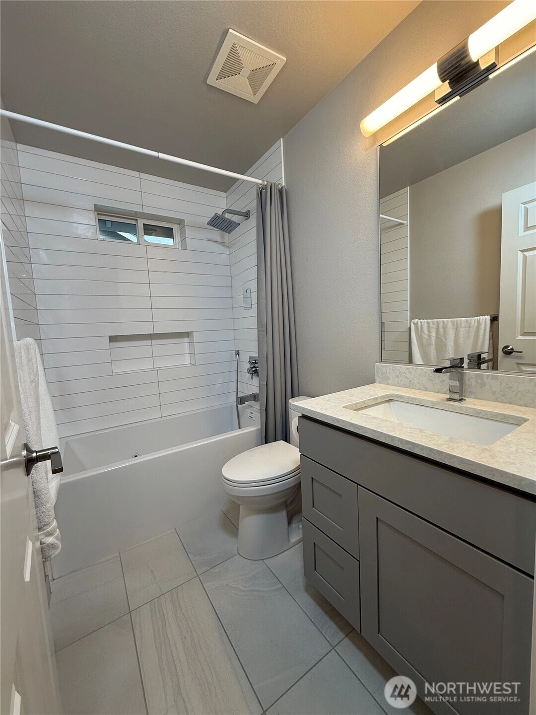 Beautifully remodeled home on the Greenbelt lot. Extensive upgrade throughout, featuring a modern kitchen w/quartz countertop and SS appliances, Great room concept w/vaulted ceilings & absolutely no wasted space! Engineered Hardwood floors upstairs, laminate downstairs and Heated tile floors in the bathrooms. Vaulted Primary suite w/generous walk-in closet & bath plus two very large guest bedrooms! Completely finished garage, could be used as playroom/gym. Cat 5 wiring! lifetime vinyl siding & shake details set it off!