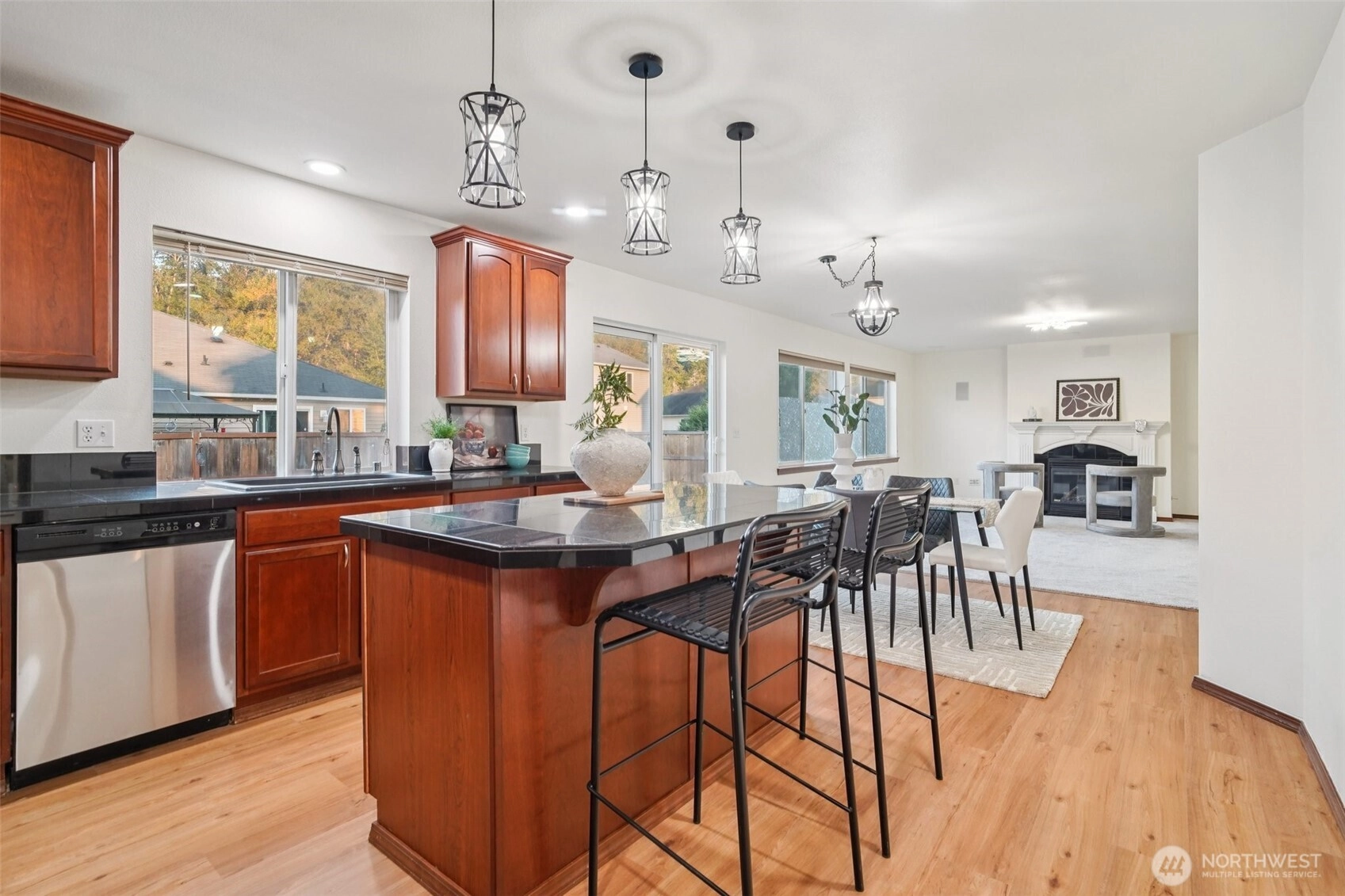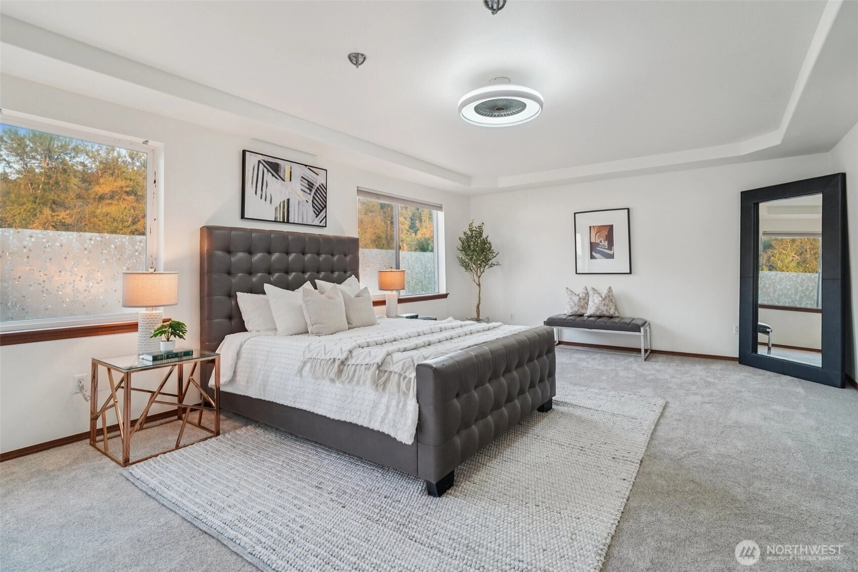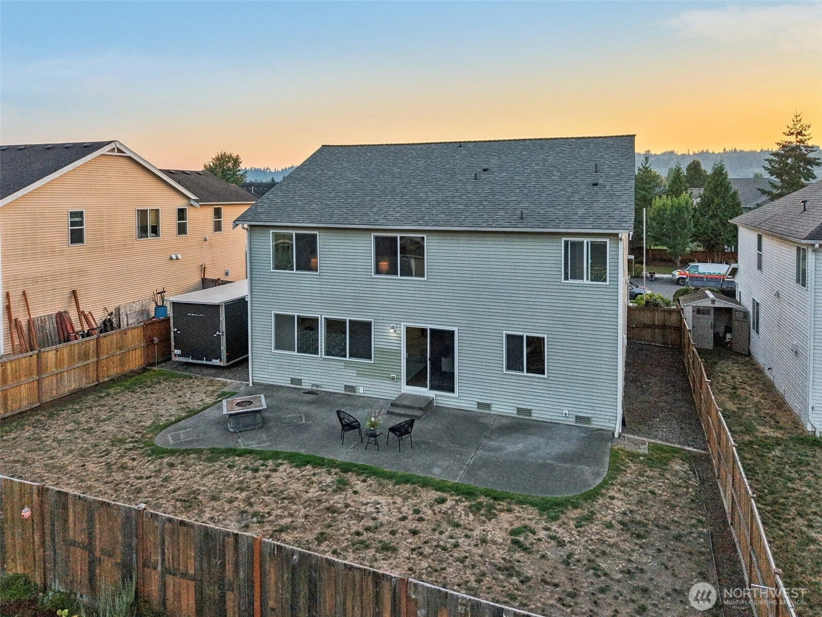 Discover your dream home with stunning mountain views in Orting's River's Edge community! This spacious 4-bedroom + Office/Den, 2.5-bathroom home offers a quiet neighborhood setting and modern updates. The interior features a built-in surround sound system, new luxury vinyl and carpet, fresh paint, and a new skylight. With tons of storage, this home is both comfortable and functional. For added convenience, the laundry room is located on the second floor, right by all the bedrooms. Recent upgrades for peace of mind include a roof less than two years old and a new water heater. The private, fully fenced yard with a new double-gate lock entry provides a secure space for outdoor enjoyment. There's even RV/trailer parking behind the gate