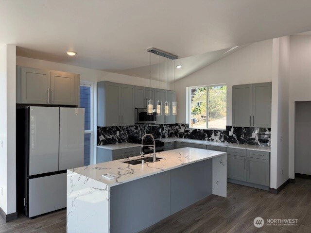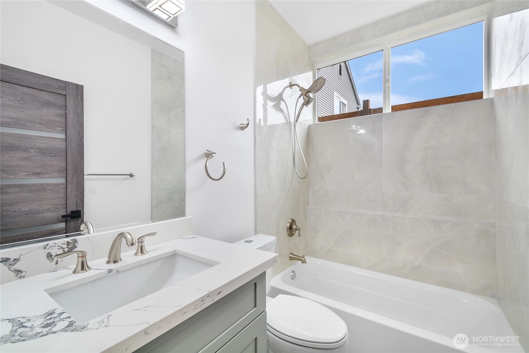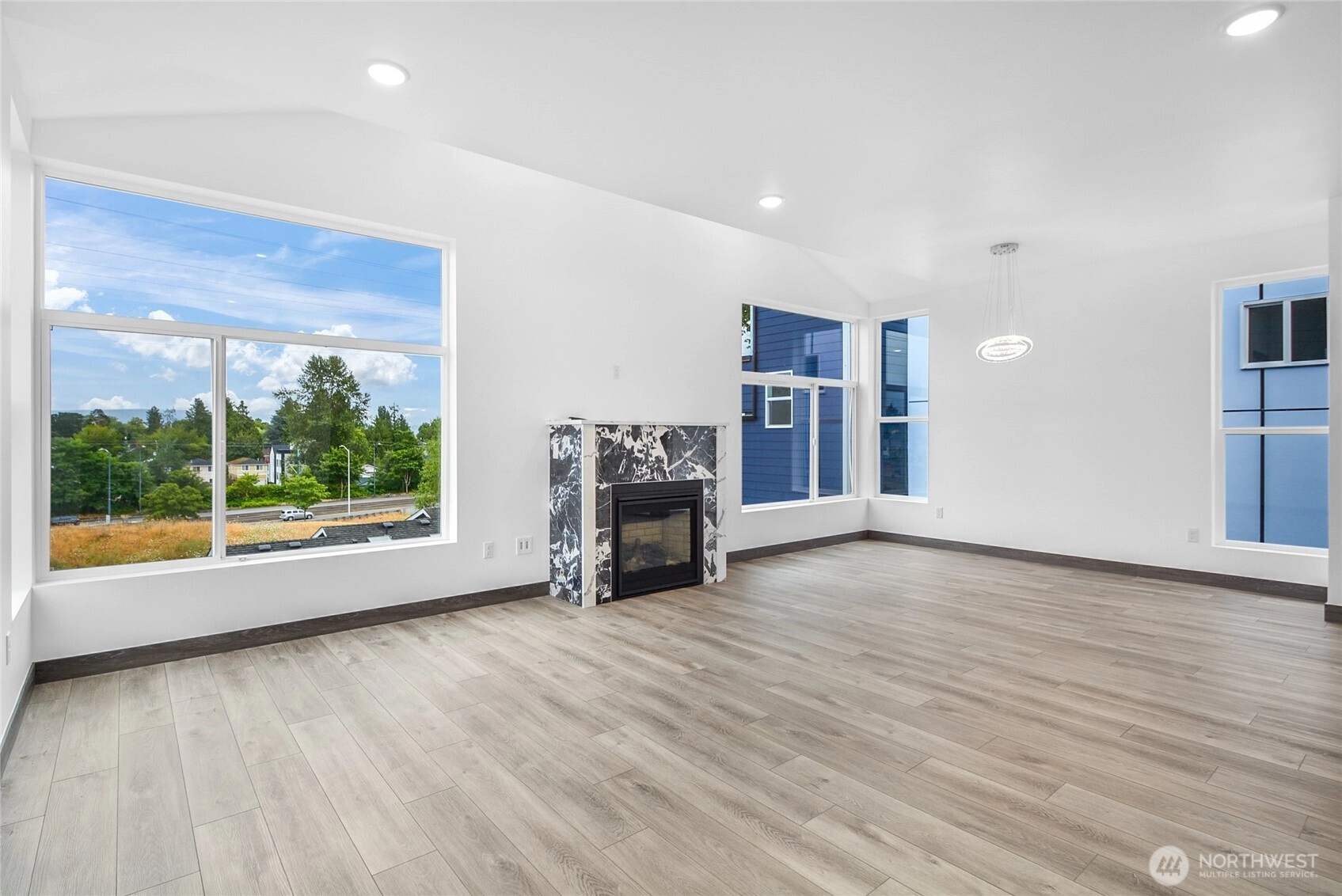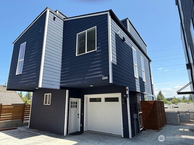 Brand-new modern home in Beacon Hill featuring 3 bedrooms and 3.5 baths. Enjoy luxury living with an open-concept layout, high-end finishes, and vaulted ceilings. Relax or entertain on the heated rooftop deck with mountain views and a gas BBQ hookup. The primary suite offers a walk-in closet and spa-like bath. Includes energy-efficient systems, a tankless water heater, mini-split A/C, and an attached one-car garage, EV charger. Gas tankless water heater, stove, fireplace. AC & heat pump and a recirculation water line. Conveniently located near light rail, trails, dining, and shopping.