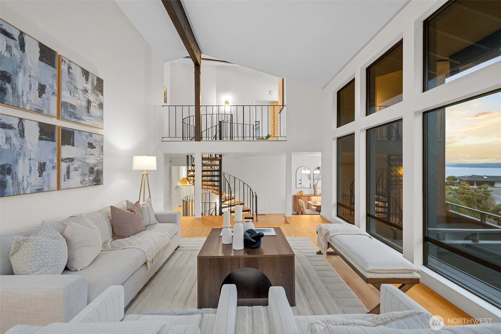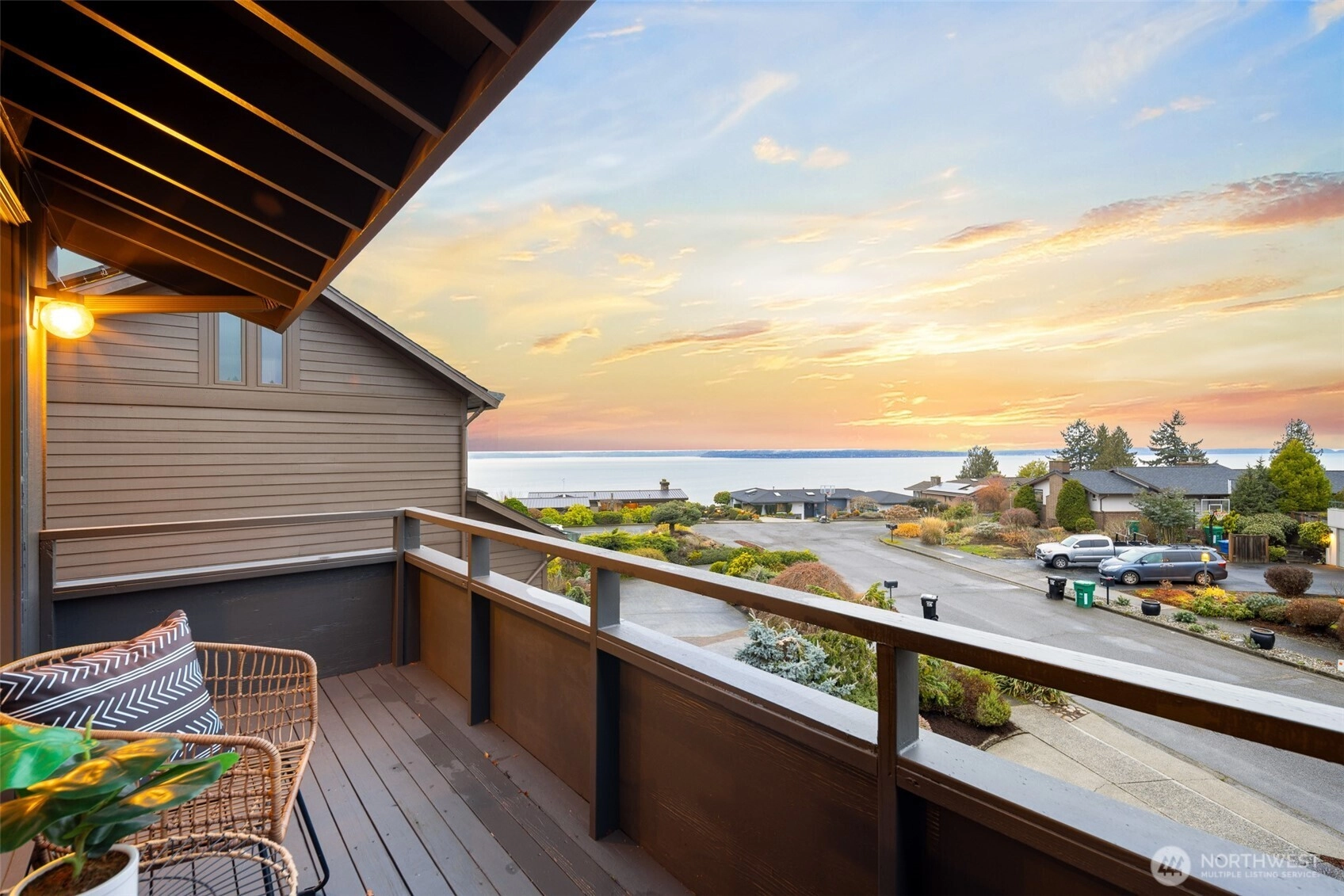 Welcome to Seacrest, a rare Broadview haven built to embrace sweeping Puget Sound views. Tucked just a few houses from the shoreline on a quiet cul de sac, this lovingly crafted home was designed for the builder’s daughter and reflects warmth, care, and thoughtful intention throughout. Freshly painted inside and out, with new flooring and updated kitchen and baths, the home feels beautifully refreshed. Floor to ceiling windows frame protected Sound views, and a recently installed modern elevator offers effortless access across all levels. The top floor features two bedrooms including a primary suite with 3/4 bath, and its own private view balcony. A rare indoor lap pool, sauna, steam shower, and six person hot tub create an incredible resort like wellness retreat right at home! Downstairs, a suite with it's own entrance, or can be used as a rec room with spare bedroom with full bath.The main level invites everyday ease with direct gated parking access to the kitchen from the private road behind the home. The main floor includes two bedrooms, a full bath, laundry room, the kitchen, sun room, a formal dining room, a spacious family room, a living room illuminated by impressive two story view windows that capture the Sound, and a view deck that looks out toward the water. The backyard is partially fenced, large and private surrounded by trees with a small covered deck off the family room. Don't miss this rare Seattle beauty!