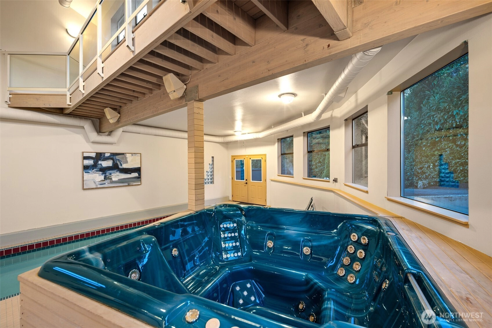 Second Kitchen Bath Off Primary Dining Room Elevator Fireplace Fireplace (Primary Bedroom) French Doors Hot Tub/Spa Indoor Pool Sauna Security System Skylight(s) Sprinkler System Vaulted Ceilings Walk-In Closet(s) Water Heater