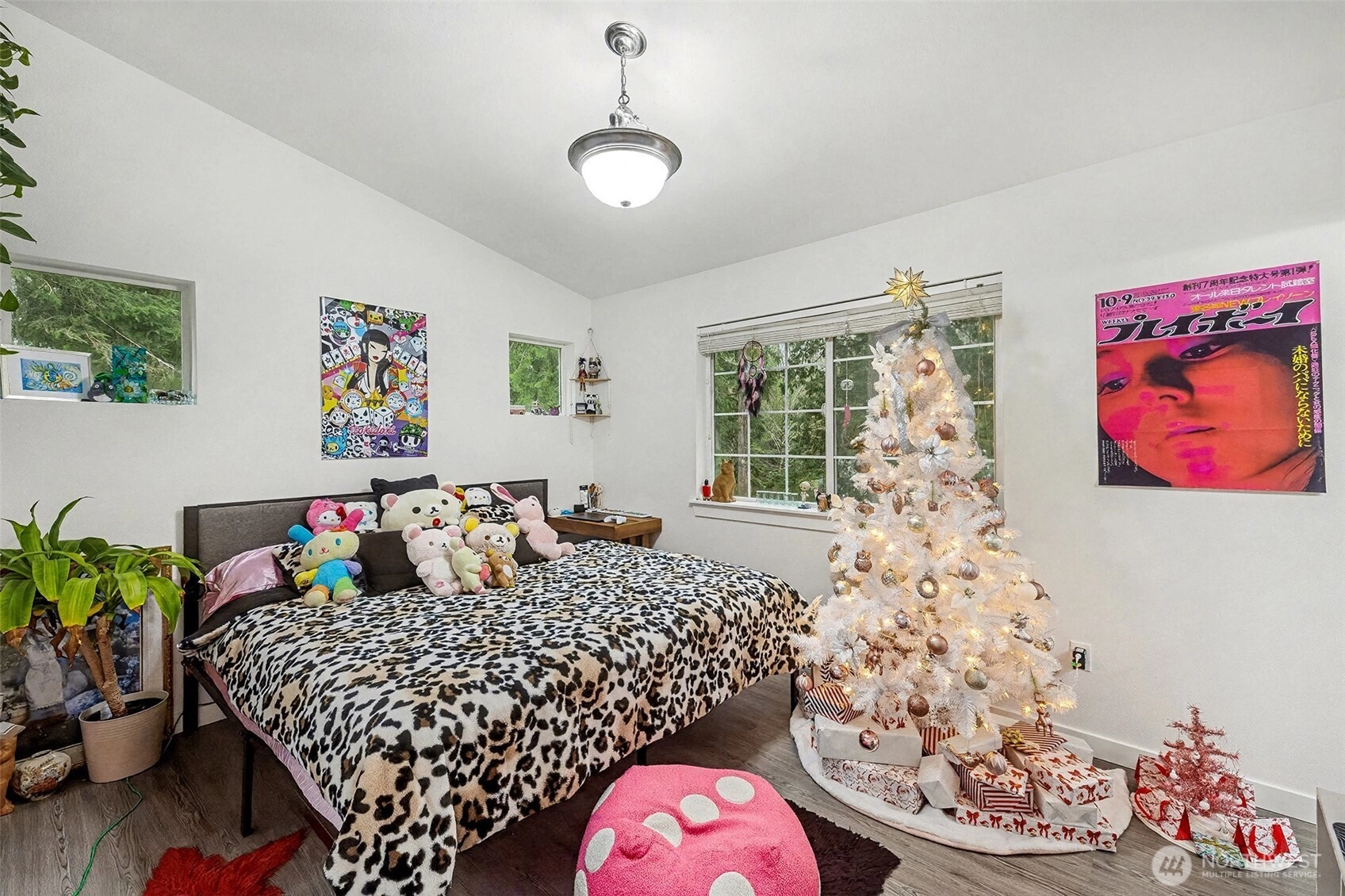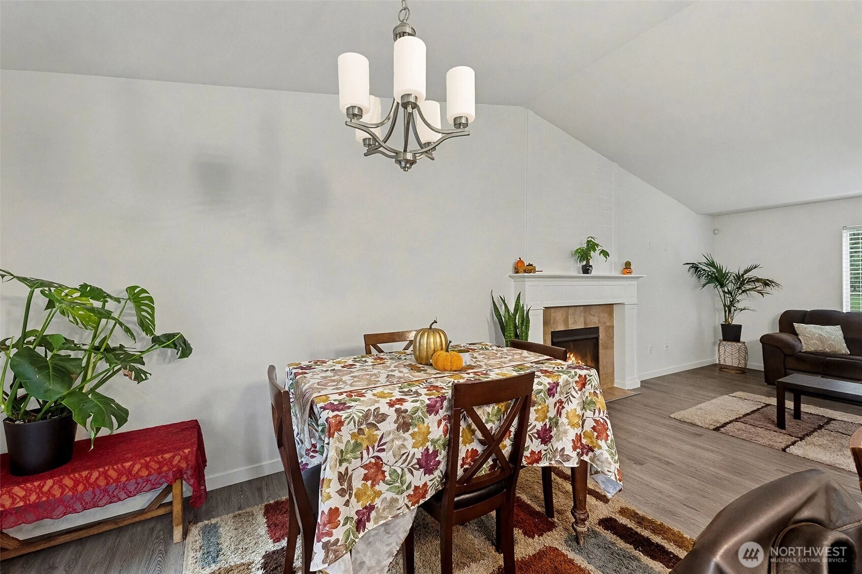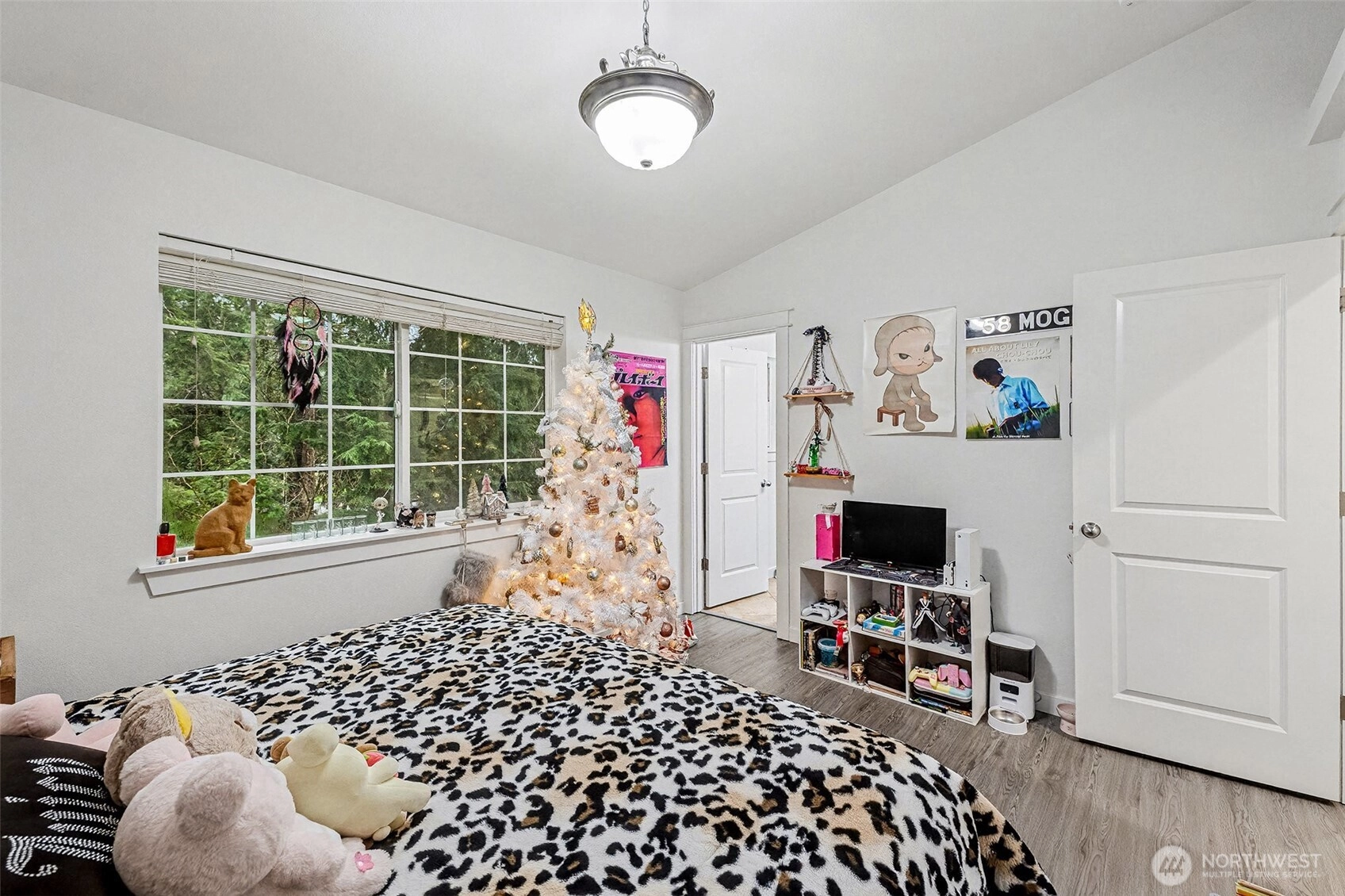 An amazing buyer's bonus from seller (Credit of $5,000 for new kitchen appliances. Or use that to apply it to your closing cost.) Tucked away at the end of a quiet cul-de-sac and surrounded by trees, this peaceful home offers comfort and privacy. Laminate floors and vaulted ceilings enhance the bright, open living spaces. The living room features a gas fireplace with a charming shiplap mantle, while the dining room opens directly onto the deck—perfect for indoor-outdoor living. The kitchen boasts new, rich cabinetry and a center island. The primary suite includes a full ensuite bath and a walk-in closet with an extensive closet system. Gas hot water and fireplace add efficiency and comfort. Low maintenance and move-in ready, the home also offers a grassy backyard with a path leading into the woods. Enjoy true tranquility and privacy next to acres of forest.