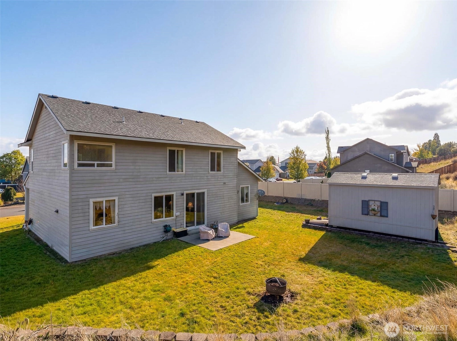 Spectacular two-story home with sweeping river views! This spacious residence offers 4 bedrooms, 2.5 bathrooms, and 2,578 square feet on a .36-acre lot with a 3-car tandem garage. The expansive kitchen features durable hard-surface countertops, a large island, and abundant cabinetry—ideal for both everyday living and entertaining. The family room captures stunning river views, while the dining room includes a slider that opens to the backyard and flows seamlessly into the generous great room. A convenient half bath and laundry room with sink complete the main level. Upstairs, the oversized primary suite boasts scenic views, a walk-in closet, soaking tub, walk-in shower, and double vanity. Three additional bedrooms and a full bathroom provide ample space. The partially fenced backyard includes a shop, firepit, and irrigation water—perfect for relaxing, gardening, and outdoor gatherings.