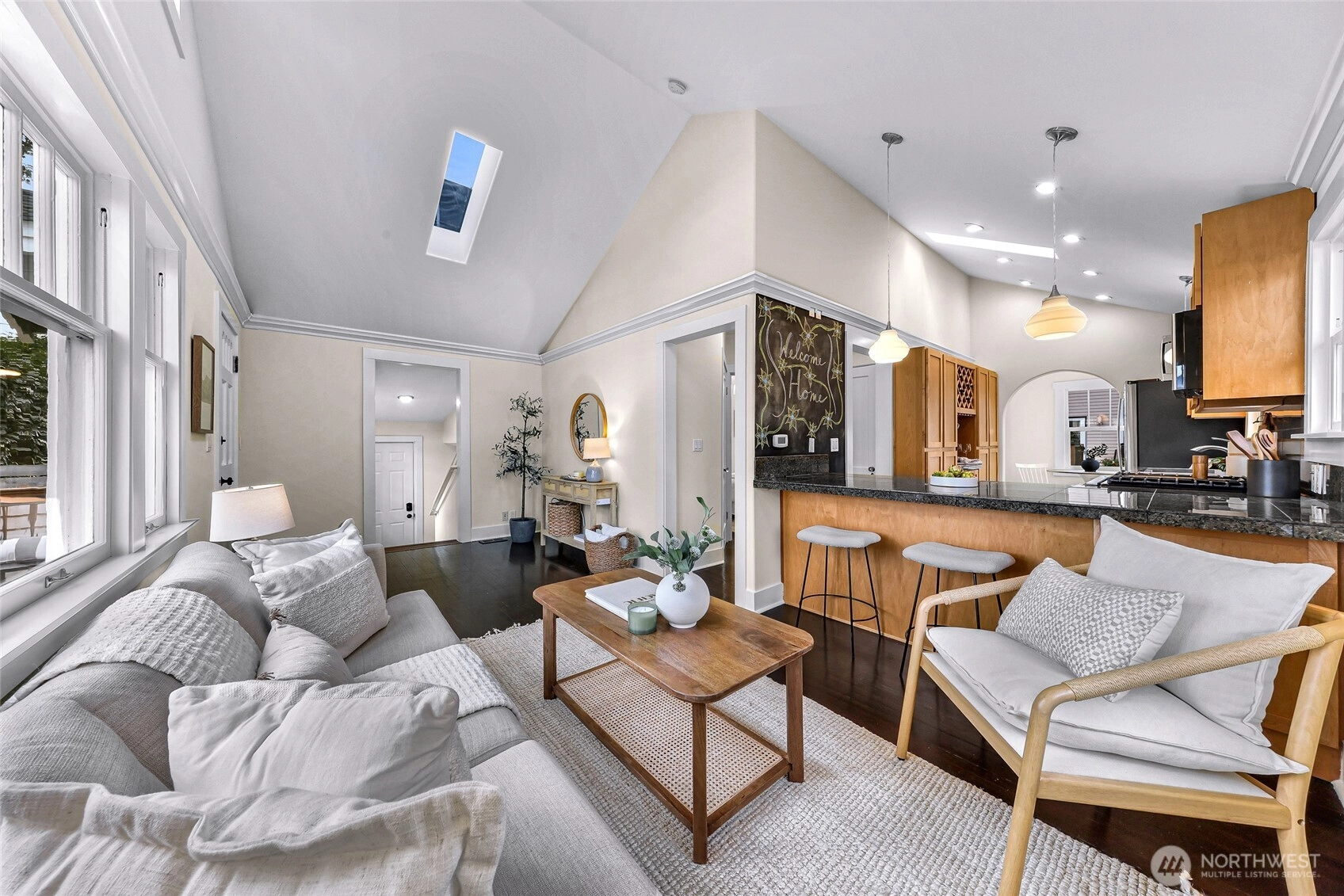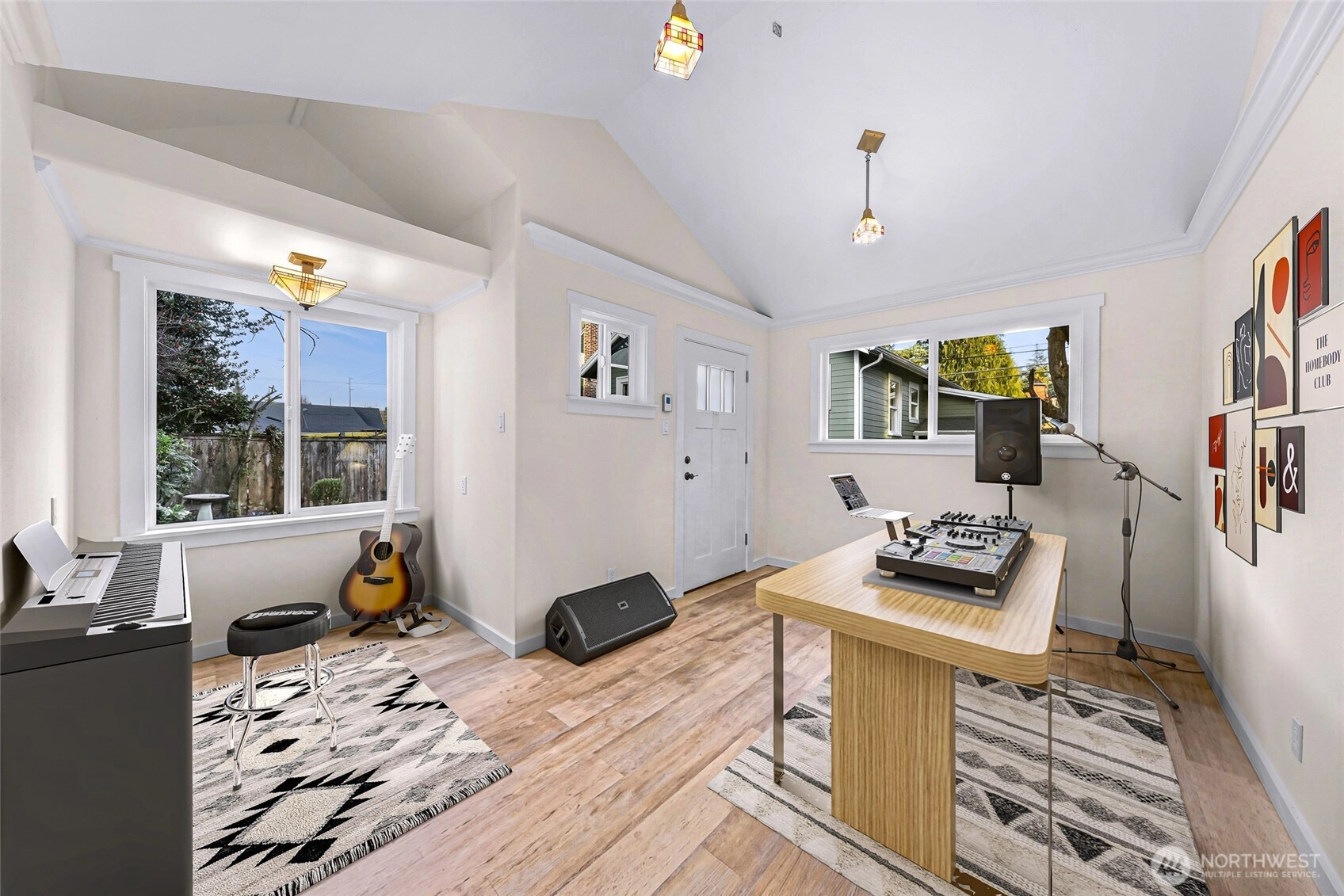 Charming Maple Leaf craftsman with modern updates and century’s old character. This turnkey cottage offers 2 bedrooms, 2 full bathrooms, and a bonus private heated studio flex space. Each area of the home is thoughtfully updated for the ultimate living experience. Prepare gourmet meals in the generous kitchen with abundant counter space, upgraded appliances, and storage galore. Unwind in style with spacious primary bedroom + 5-piece en suite bathroom, and sweet private patio. Entertain friends at the best bar in town, host movie and game nights, or just kick back and relax in style and comfort in the second living space. Roomy, detached studio only increases this amazing home from a ten to an eleven. Need more work from home separation? Check! Home gym? Done! Hobby shop? You guessed it! Band practice space? Rock on! Take advantage of beautiful Seattle summers in the well-curated garden, and soak up some sun lounging on the deck. Just blocks from Maple Leaf staples Cafe Javasti, Maple Leaf Reservoir Park, Maple Leaf Ace Hardware, Kona Kitchen. This home is a commuter’s dream with easy access to I-5, Northgate Light Rail Station, and other public transit. Off-street parking and plenty of street parking!