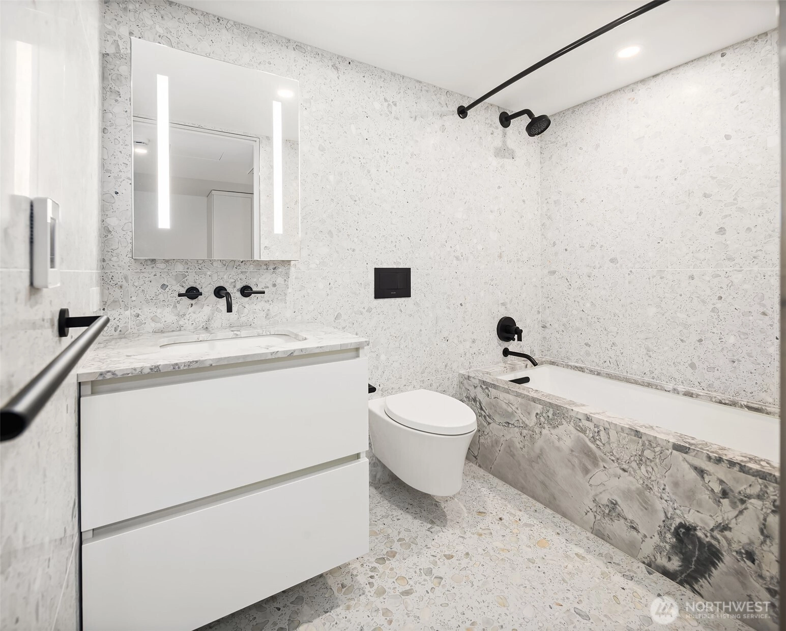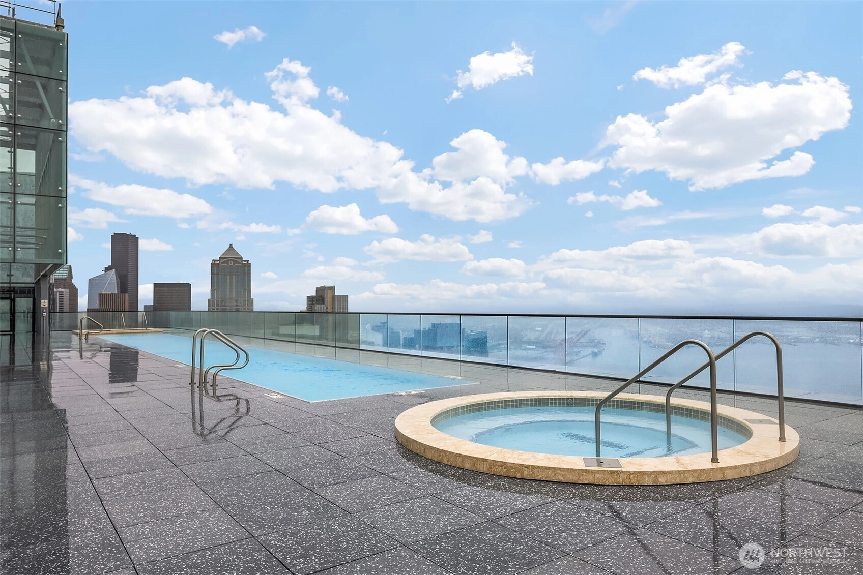 Best-priced, brand new unit in the building with iconic northwest-facing water views. This unit offers an open, efficient layout with a private oversized balcony extending the living space, and floor-to-ceiling, triple-paned windows capturing the Space Needle, Elliott Bay, and the Olympic Mountains, delivering dramatic sunsets and city-water views. Interiors feature custom B&B Italia cabinetry, Kohler fixtures, Miele appliances with gas cooktop, motorized blinds, keyless entry, in-unit washer & dryer and wide-plank hardwood flooring throughout. Low HOA dues complement a thoughtfully designed luxury residence. Residents enjoy access to the 46th, 47th and 48th floor amenities, including a 25-meter cantilevered rooftop sky pool, two hot tubs, rooftop garden, state-of-the-art fitness & wellness center with yoga studio, spa, bike lounge, pet play and grooming areas, rooftop entertaining spaces, and a resident lounge. Parking available for purchase for additional $100,000 (Space #189). An exceptional opportunity for those who value views, design, and luxury.