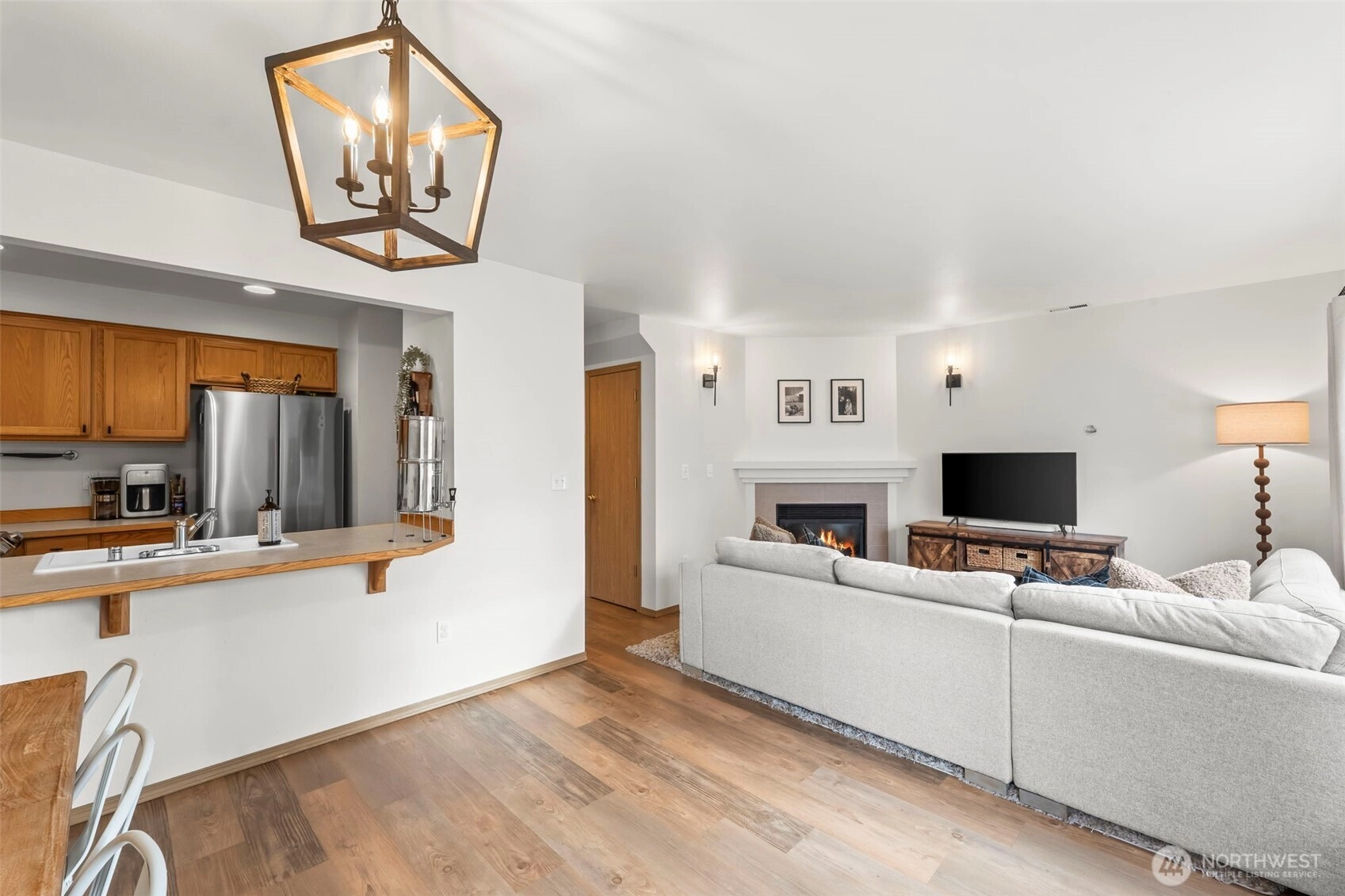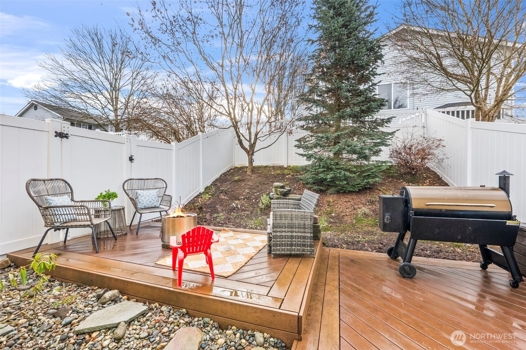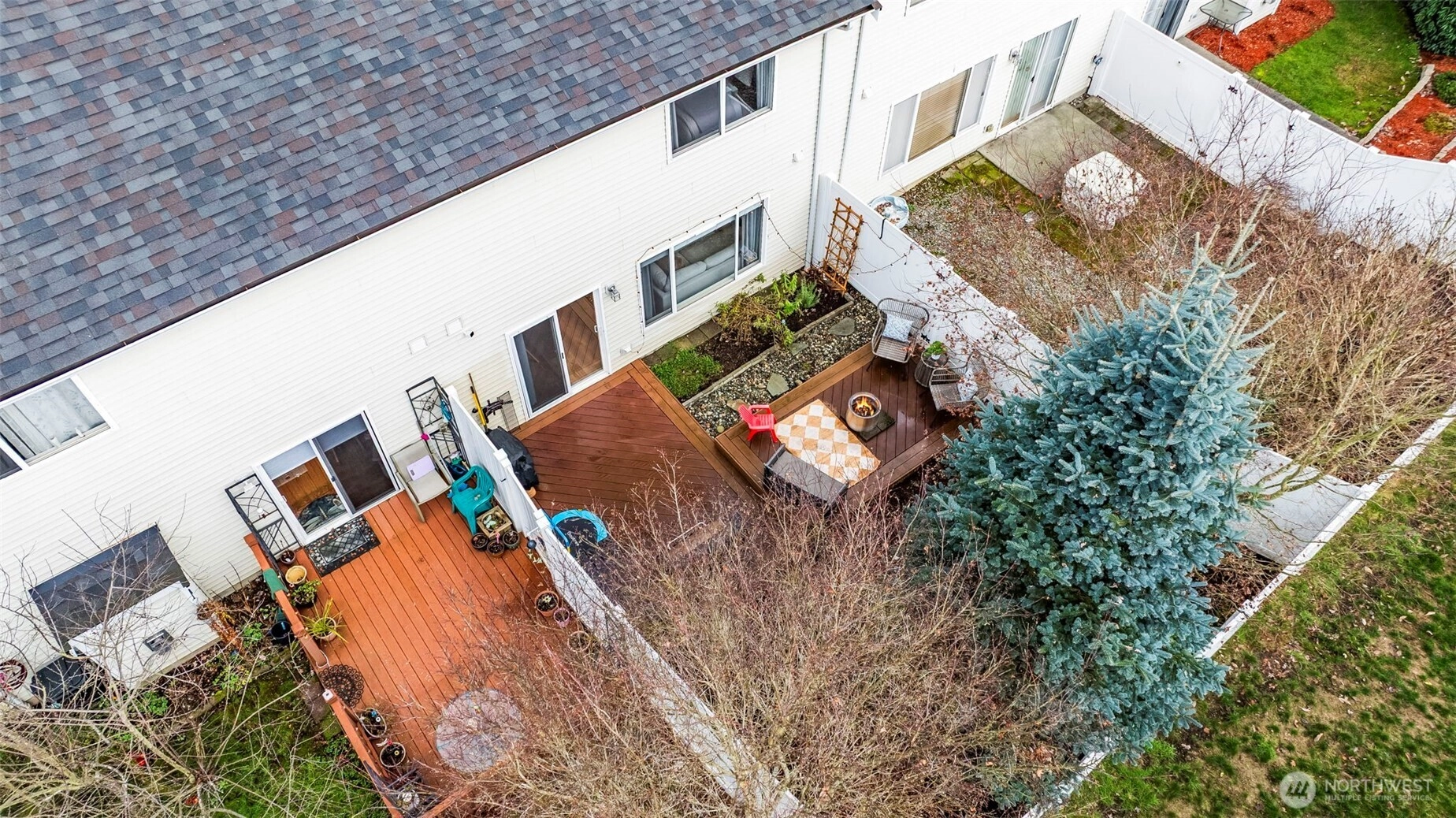 Pristine Model townhome on a quiet cul-de-sac offering a fully fenced back yard and entertainment deck. Shows like new and it has many fine designer accents. 3 bedrooms and 2.5 baths. Bright open floor plan layout with bright windows. Gleaming laminate wood flooring. Formal living room with gas fireplace. Modern kitchen overlooking the dining room nook with access to the tremendous backyard deck and fine landscaped backyard area. Primary bedroom suite with attached bath. Convenient attached garage with storage. The Arbor Ridge condominium community is highly desirable and conveniently located for easy commuter access to the east side and close to schools and shopping. Community sports court and it is close to parks and more.