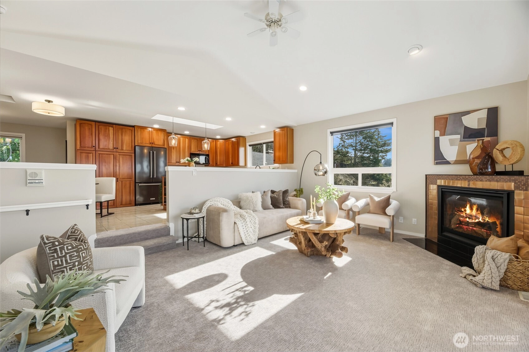 Sit back and take in sweeping views of sea and sky from this coveted Beach Drive home with breathtaking Sound and Olympic Mountain vistas. A true condo alternative, this 3 bed / 2.5 bath residence features a PRIVATE ELEVATOR servicing all levels and a reverse floor plan designed to maximize natural light and scenery. The light-filled upper level offers an inviting space to relax and enjoy vibrant sunsets, along with an open kitchen and dining concept ideal for entertaining. There is a gas fireplace to keep you warm in cooler months and A/C for Summer time. Step onto the expansive deck for 180-degree views stretching from Lincoln Park to Bainbridge Island. Ideal for watching ferries, marine life or the sun gently slip behind the mountains. The main level hosts three bedrooms and two baths, including a serene Primary Suite with walk-in closet, gas fireplace, and private deck access. Exceptionally well cared for, this home offers low-maintenance living with no HOA. Additional highlights include a two-car garage with storage and a fantastic location near Alki, Lincoln Park, and The Junction. Become part of this incredible coastal community!