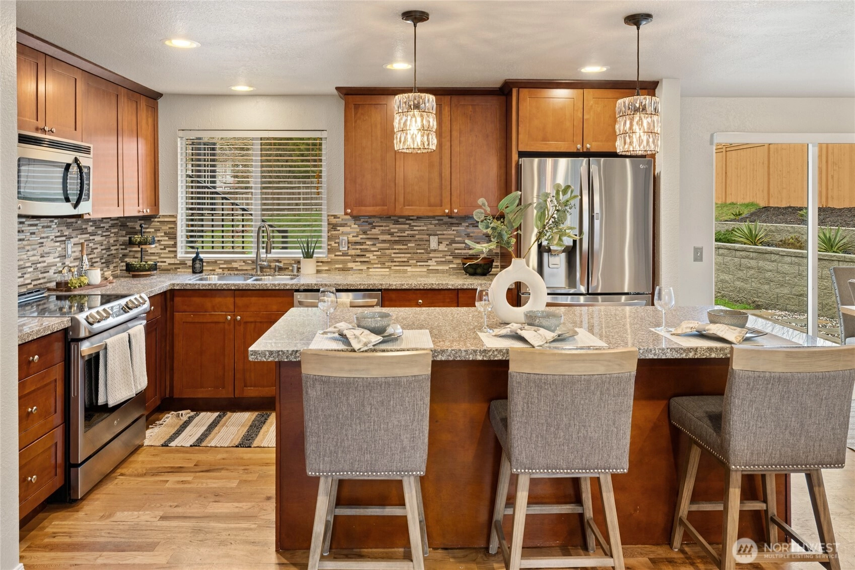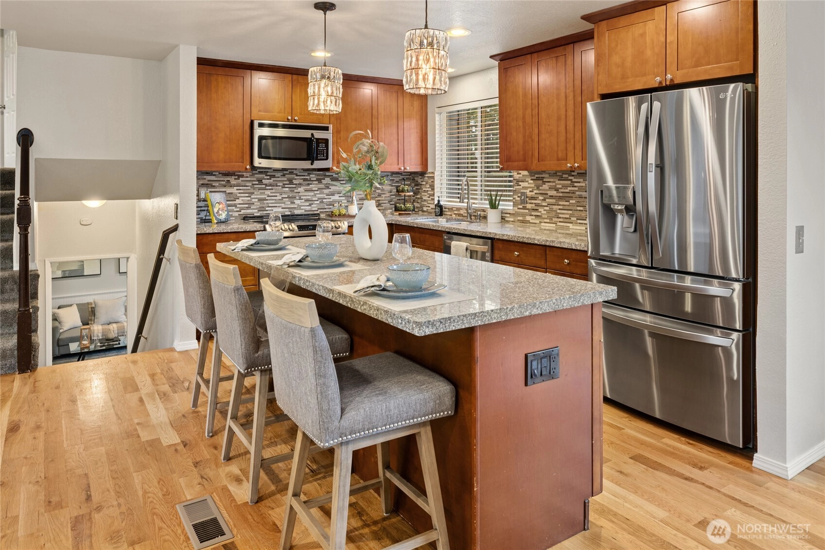No More Showing! We have accepted an offer, waiting on relocation signature. Beautifully updated tri-level home on a large, fully fenced 13,940 sq ft lot in desirable Brier. This 3 bedroom, 2.5 bath home offers 1,599 sq ft of comfortable living space with numerous major upgrades for peace of mind. Recent improvements include new siding, roof, gutters, garage and front doors, deck, and all appliances (approx. 1 year old), plus new furnace, A/C, and hot water heater (approx. 2 years old). Solid hardwood floors welcome you into the light-filled main level. The updated kitchen features granite countertops, stainless steel appliances, and a large island, opening to the living and dining areas—ideal for everyday living and entertaining. A cozy gas fireplace completes the main level. The upper level includes a primary suite with a ¾ bath and French doors leading to a newer deck, plus two additional bedrooms and a full bath. The lower level offers a spacious family room with access to the backyard, laundry area, and half bath. Excellent location close to parks, schools, shopping, and major highways. Located within the highly regarded Edmonds School District. Move-in ready and a wonderful opportunity in one of Brier’s most desirable neighborhoods.