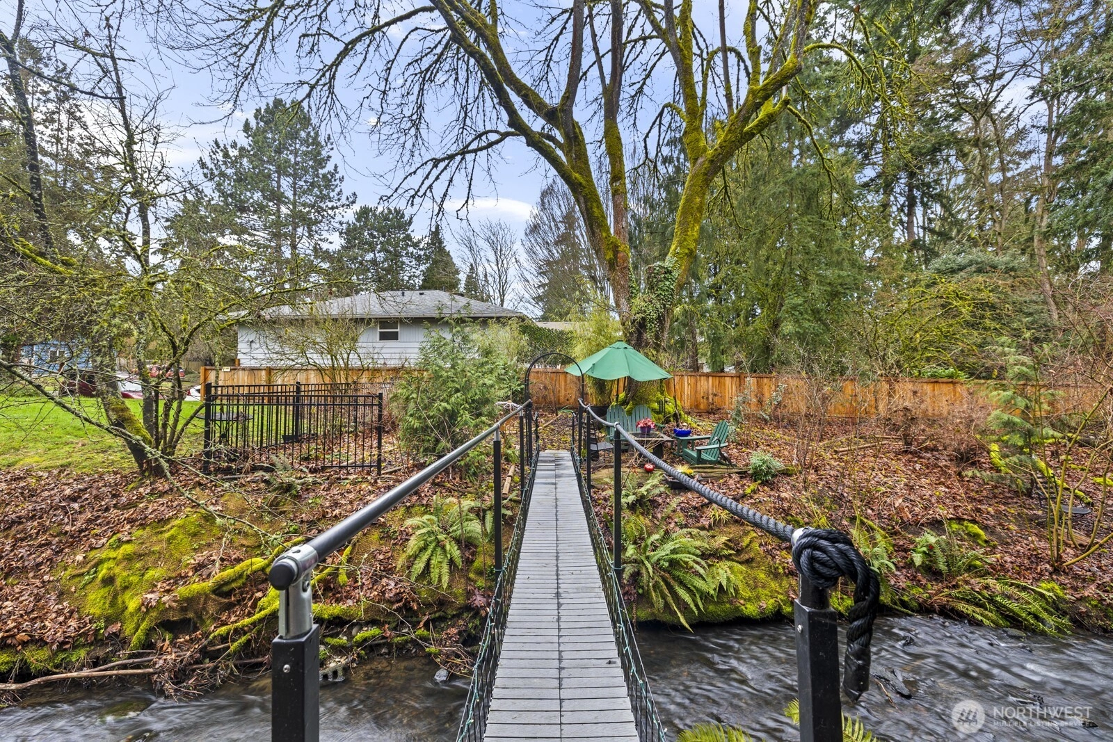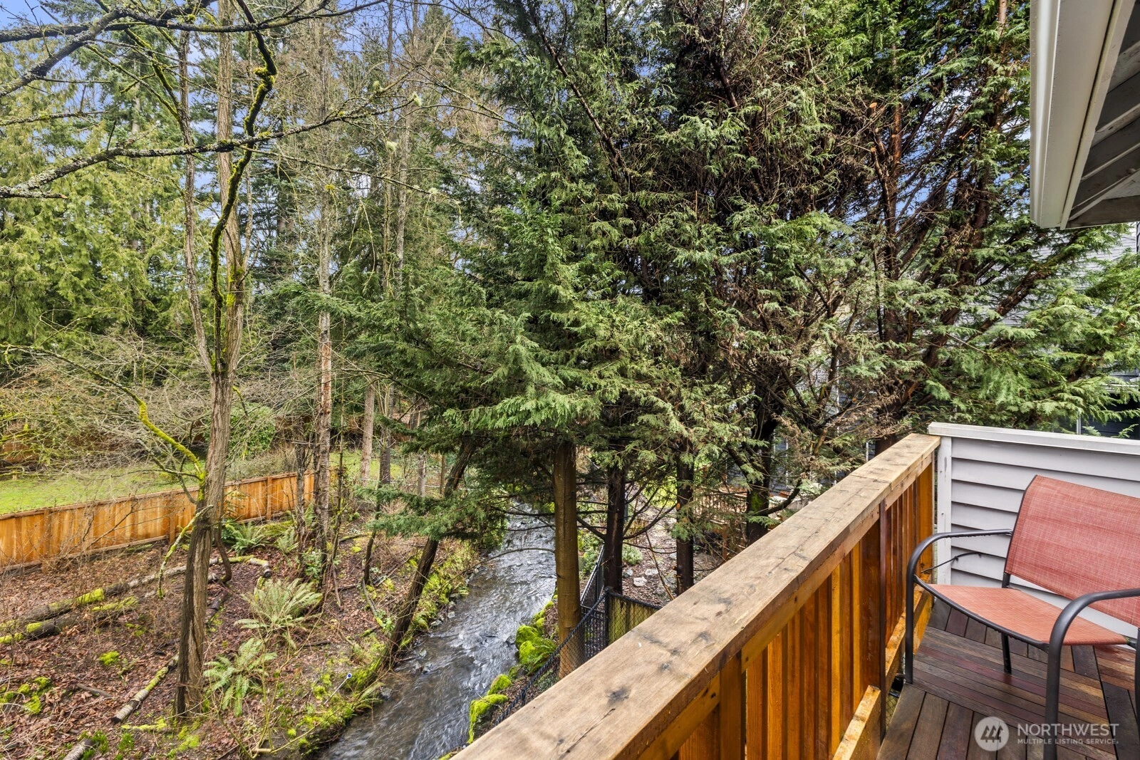 Private park-like living is yours in this magnificent Meadowbrook home! Set on a roomy lot with Thornton Creek at your doorstep & lush native plantings all around, you'll truly feel worlds away from it all; yet all that the city has to offer is just moments away! Sunlight & treed views pour in through abundant windows on the main level, accentuating engineered hardwood floors, a cozy wood-burning fireplace, efficient A/C & a chef's kitchen equipped with quartz counters, stainless steel appliances & ample storage. Living areas are comfortable yet inviting with a smart layout that maximizes space and light! All 4 bedrooms are upstairs, including a relaxing primary with 5-piece ensuite bath, large closet & private deck looking out to your peaceful surroundings. Multiple outdoor spaces all overlook the babbling creek & gorgeous greenery, dappled in shade from towering trees to create a true backyard oasis unlike any other. Stroll to nearby gems like Meadowbrook Playfield & the Burke-Gilman Trail, or take a short drive to Northgate shopping, Wedgwood restaurants or lake views from Matthews Beach. Easy commute downtown via nearby thoroughfares, buses or light rail. Hurry & make this home yours!