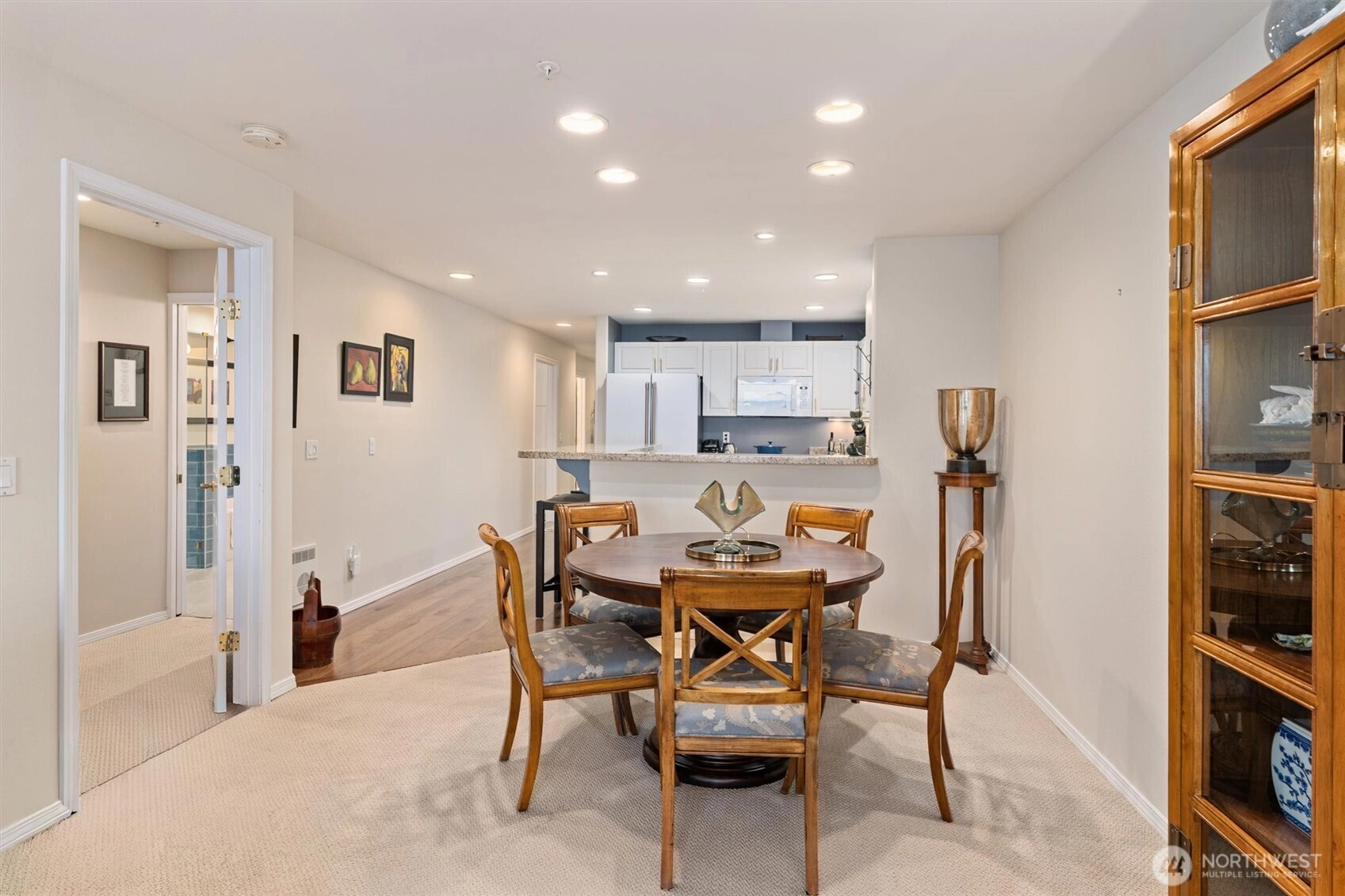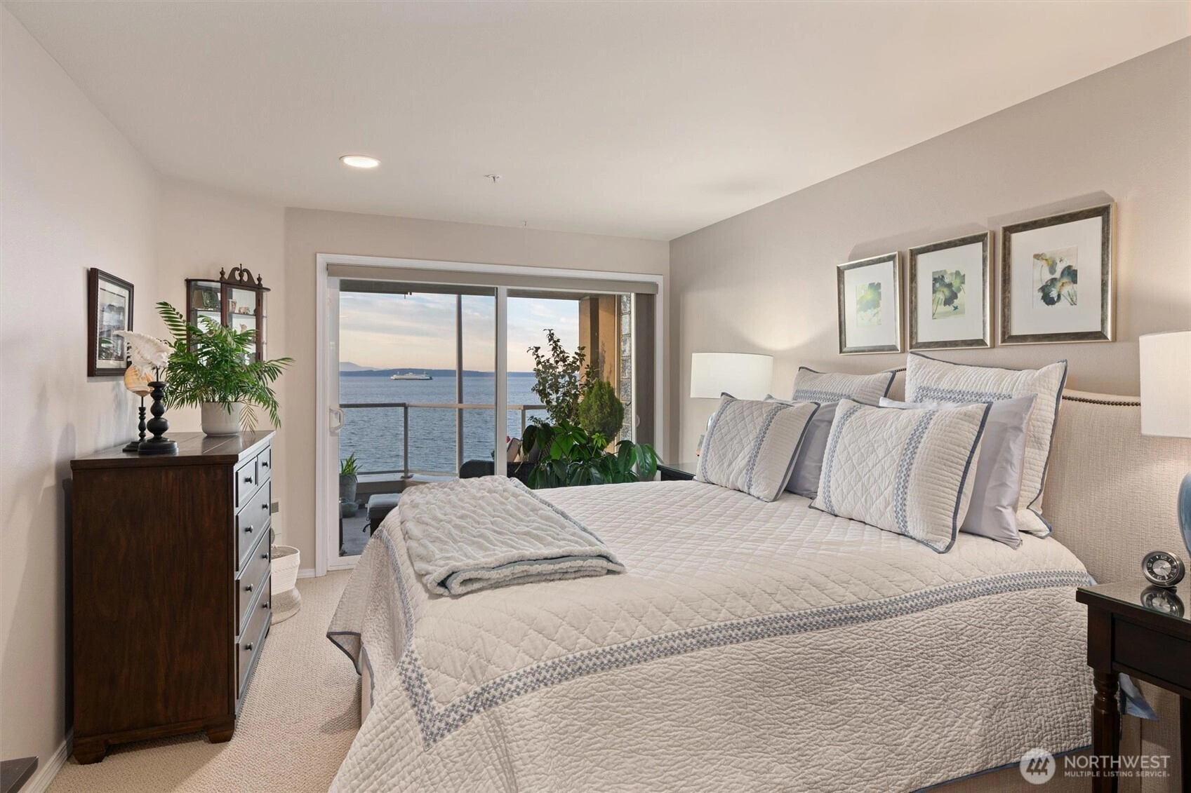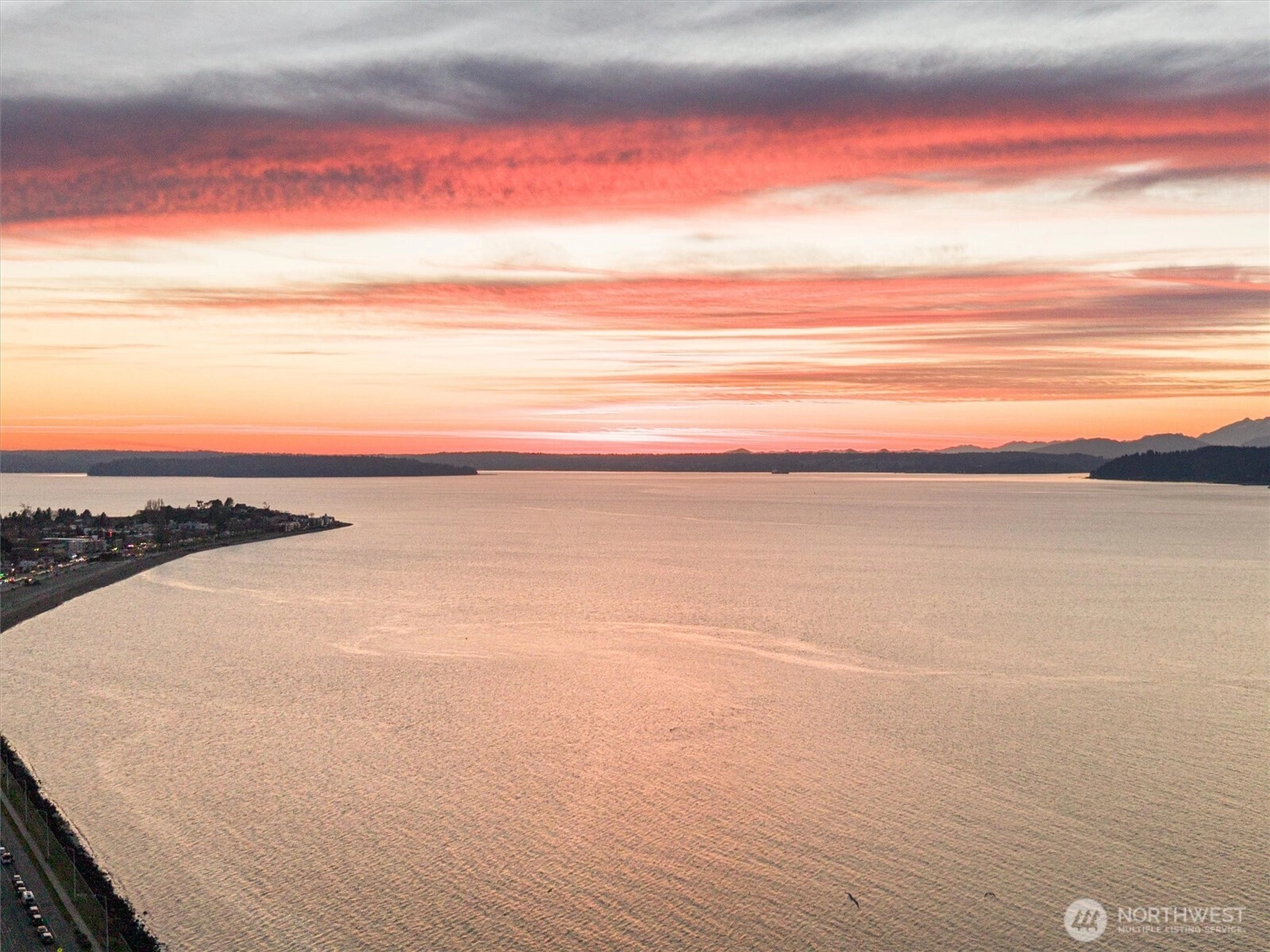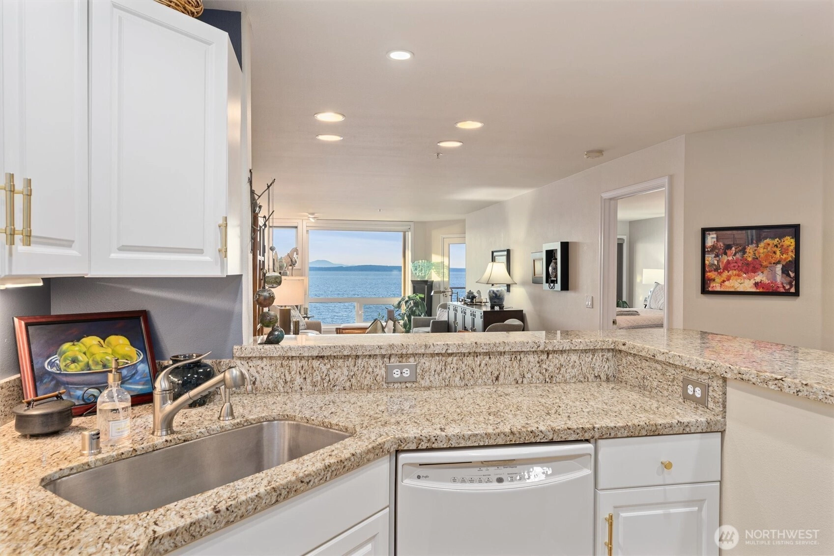 Beach Elegance! Immerse yourself in 180° unobstructed views of Puget Sound and the Olympic Mountains! A thoughtfully updated 2-bedroom + office/media condo, welcoming you with a rich hardwood entry that flows down the hallway, and into the bright and cheery kitchen. The kitchen features newer appliances, and stunning Sound views, making it a great spot for friends to gather and create lasting memories. The guest room connects to the guest bath, creating a convenient ensuite for visitors, while the primary suite opens directly onto the view deck – as does the living room - providing indoor/outdoor living and entertaining. The living room, with full picture windows, captures the spectacular surroundings in every season. Sports enthusiasts will appreciate the nearby West Seattle Water Taxi, offering a scenic and quick ride downtown for Mariners or Seahawks games without the hassle of driving. Enjoy the added peace of mind of knowing the elevator was just recently modernized! This lovely unit also includes two parking spaces in the enclosed garage plus additional storage, adding convenience to waterfront living. Step outside your door and enjoy Alki Beach’s charming eateries, coffee houses, and walking paths, or simply relax and watch the ferries and cruise ships glide by. With a well-run HOA, The Waterside remains one of the most desirable residences on the beach. Make this the year you call Alki Beach home—where every day feels like a retreat! Aloha from Alki!