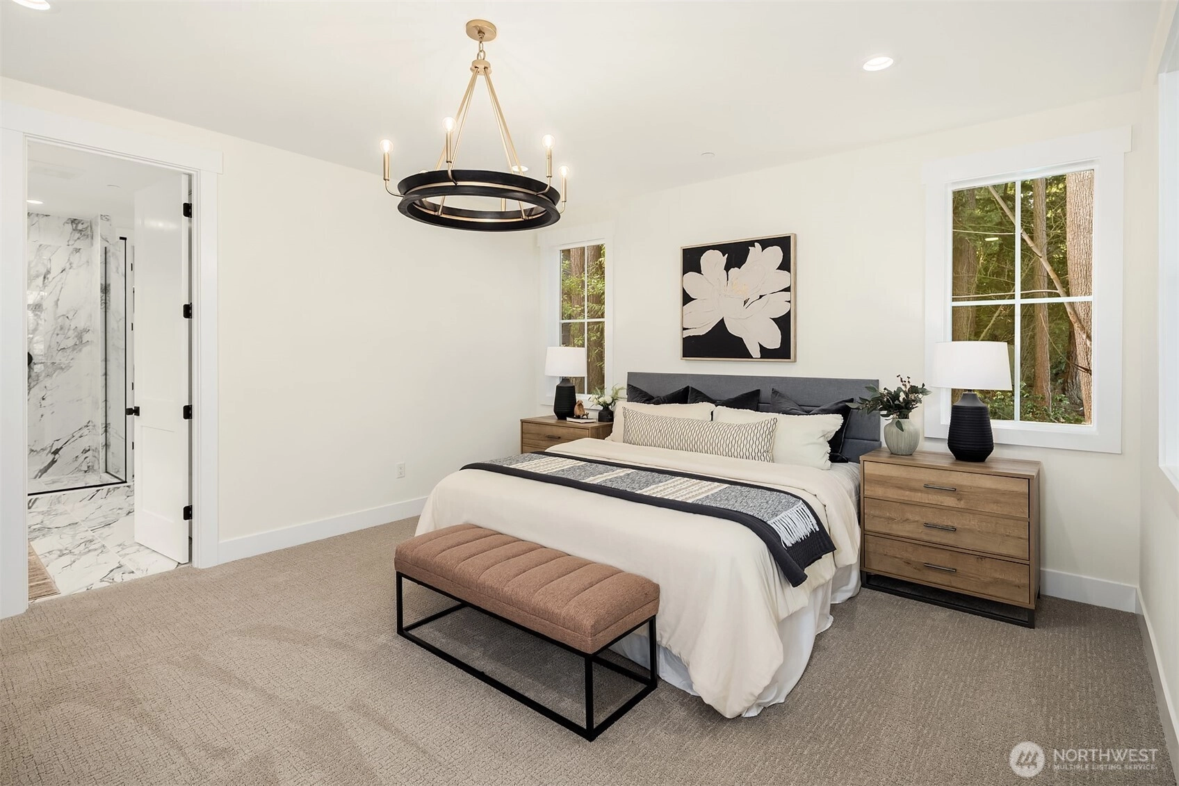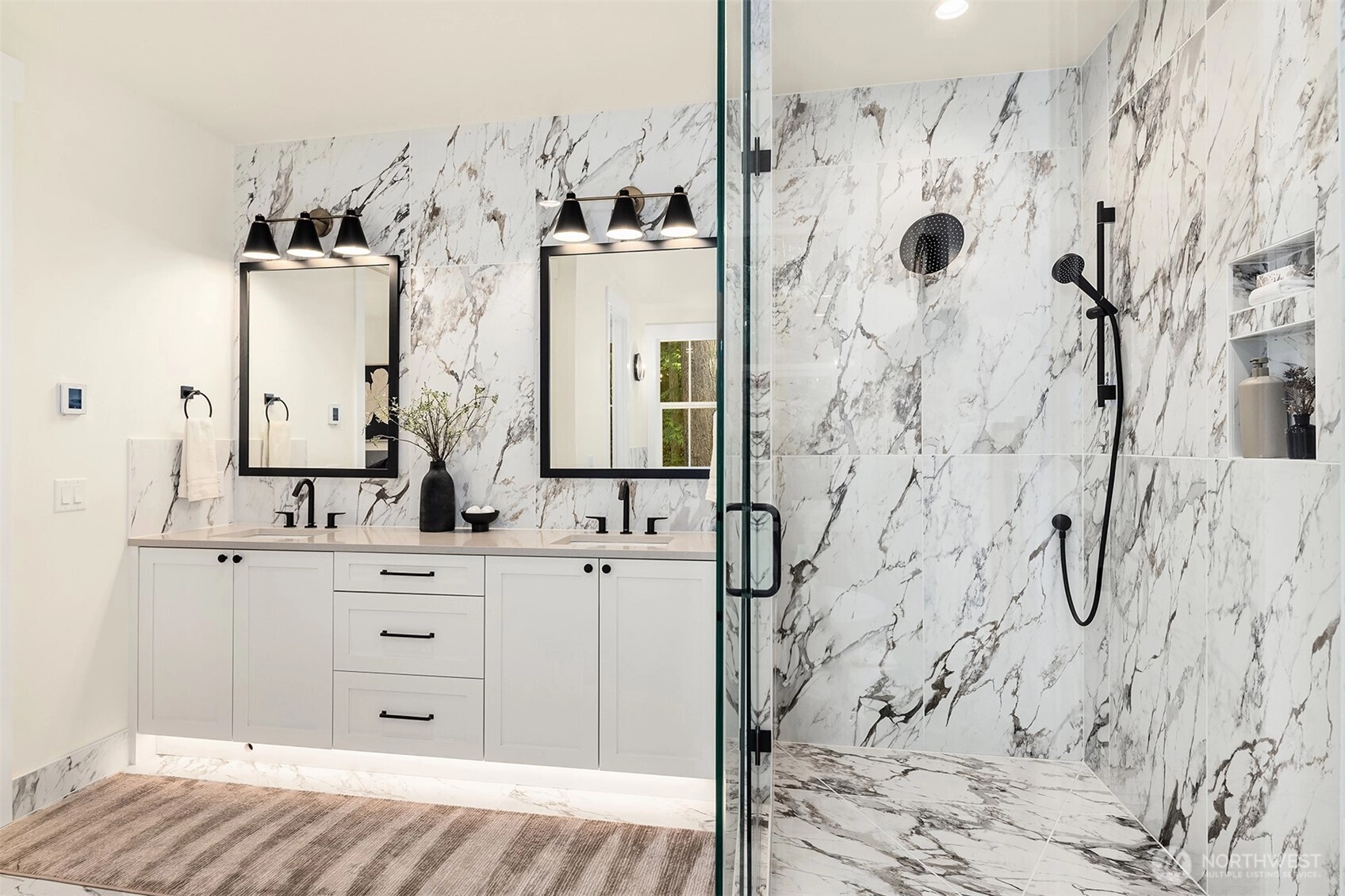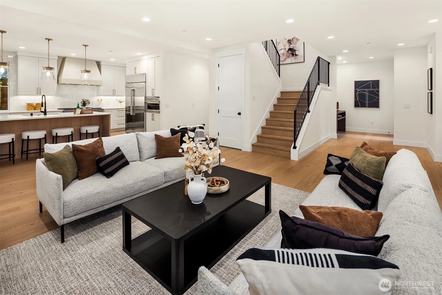 Tucked away in Kirkland's charming Highlands neighborhood is the stunning new home from renowned builders, A&R Homes. Enter into the great room with beautiful gas fire place, meticulously designed with custom surround and matching accent lights. Living area flows seamlessly into the chef's kitchen with space to gather around the oversized island. Custom plaster hood, beverage fridge and stunning Monogram appliances make it a joy to cook in this beautiful kitchen. Covered patio extends the living area outdoors any time of year. Dining area has a semi-private feel, but still accessible to the adjacent living spaces. Mudroom off two-car garage, powder room, and office complete this main level. Upstairs are four spacious bedrooms, three baths, a laundry room with built-ins and sink, and a bonus living area. The serene primary suite overlooks wooded surroundings and includes a spa-inspired bath with heated floors, soaking tub, luxe shower, and walk-in closet. Enjoy the Highlands lifestyle with tree-lined streets, nearby parks and trails, top-rated Lake Washington schools, and easy access to downtown Kirkland, waterfront dining, and major tech corridors.