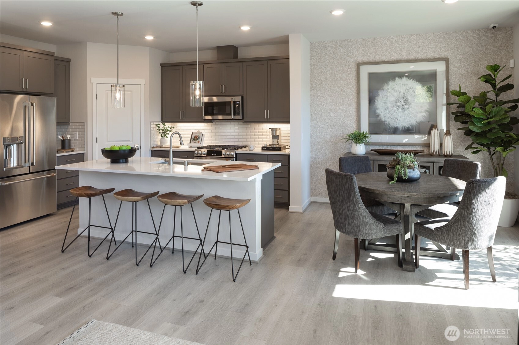 What's Special: 1st Floor Guest Bedroom | Loft | No Rear Neighbors | South Facing Lot. New Construction – February Completion! Welcome to the A24 at 13205 NE 127th Way Unit E in Senderos! Spread across three thoughtfully designed floors, this home blends comfort and versatility. The entry level welcomes you with a charming porch, a private bedroom, and full bath—ideal for guests or a cozy home office. Upstairs, the heart of the home shines with an open kitchen, dining area, and great room that flow effortlessly to a covered deck for fresh-air gatherings. The top floor offers a tech nook, convenient laundry, two secondary bedrooms, and a shared bath. Your serene primary suite completes the space with a walk-in closet and spa-inspired bath. Nestled along Lake Washington’s eastern shore, this Kirkland community invites you to enjoy scenic parks, waterfront adventures, and vibrant downtown shopping and dining. With top-rated schools and easy access to Seattle, Senderos is a place you’ll love to call home. Additional Highlights Include: EV charger and enlarged primary shower. Photos are for representative purposes only. Builder broker registration policy requires, if represented, your broker register you with Community Site agent prior to OR with you, on your 1st visit. MLS#2477599