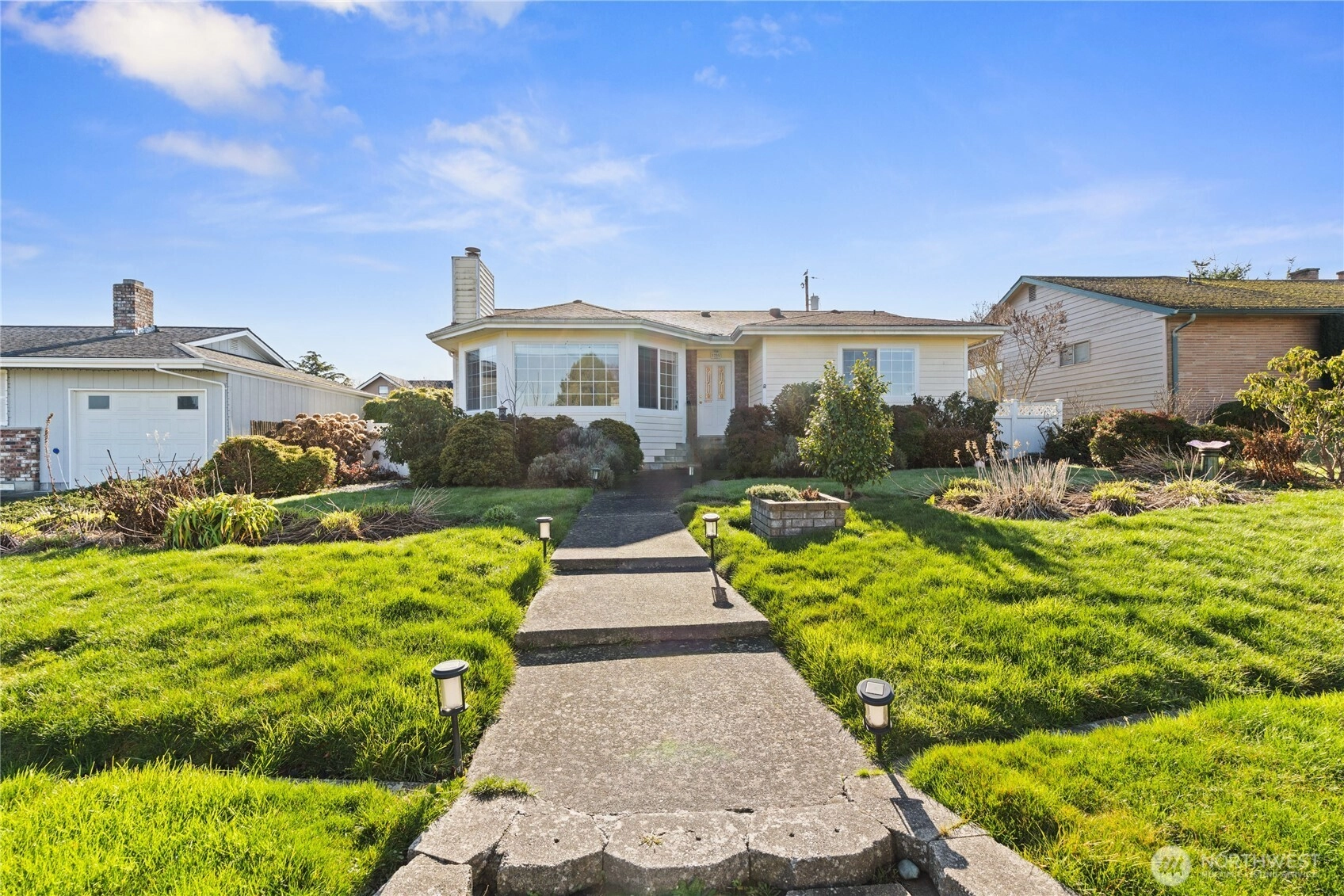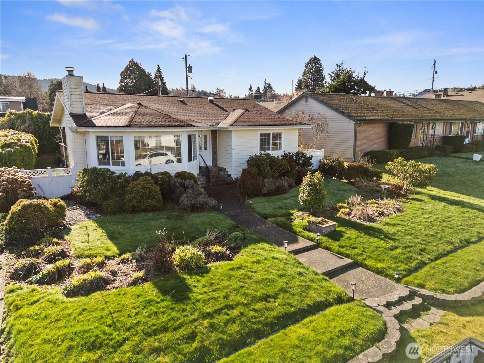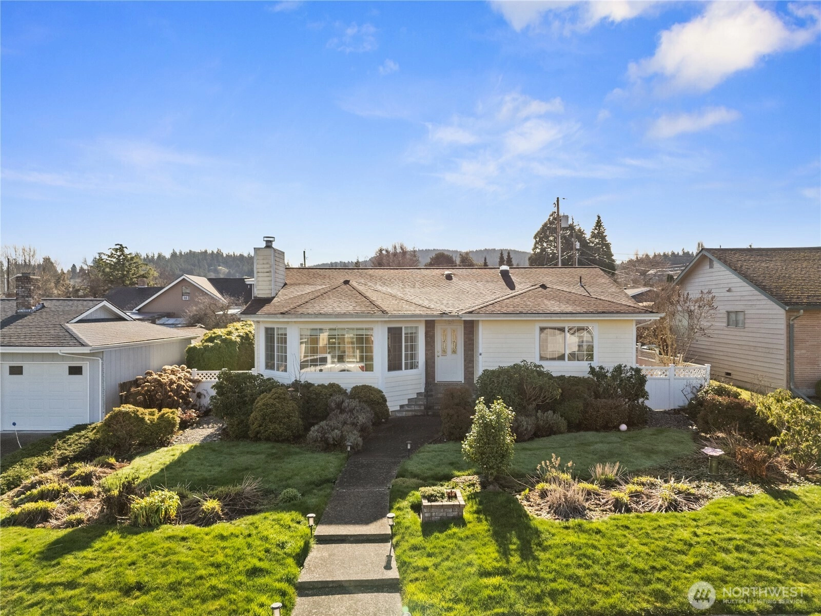 Warm, inviting, and filled with natural light, this Anacortes home offers a welcoming energy you feel the moment you step inside. Large bay windows frame peaceful neighborhood, mountain, and territorial views while creating a bright, airy atmosphere throughout the main living spaces. The cozy gas fireplace anchors the living room, making it an ideal place to relax, gather, and unwind. The flowing layout connects living, dining, and kitchen areas in a way that feels open yet comfortable—perfect for everyday living and effortless entertaining. Skylights and generous windows bring in beautiful daylight, while classic finishes and well-maintained surfaces create a timeless, move-in ready feel. Step outside to a sunny deck designed for morning coffee, summer barbecues, or quiet evenings, surrounded by mature landscaping and fruit trees that add charm and privacy. The level yard, alley access, and RV parking provide flexibility and convenience, while the attached carport offers covered parking. Located in a desirable Anacortes neighborhood close to downtown, schools, parks, marinas, and waterfront amenities, this home blends comfort, character, and lifestyle—an easy place to settle in and truly feel at home.