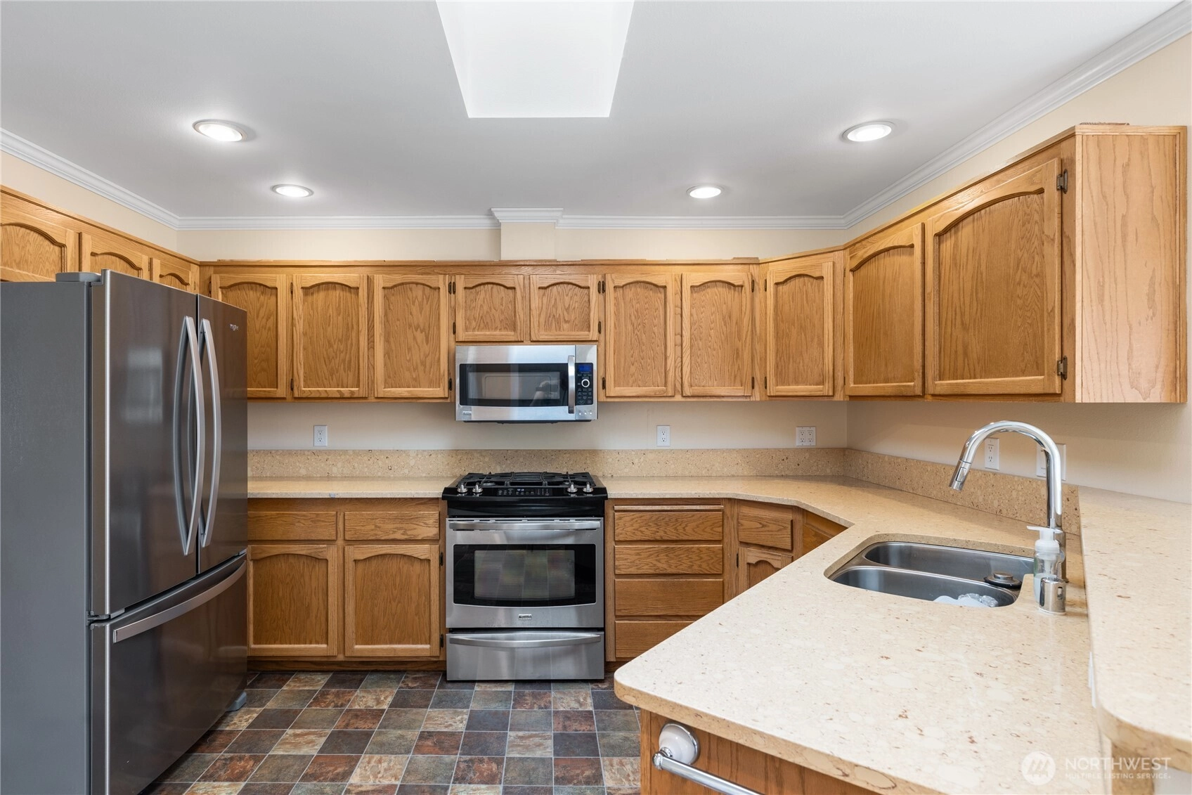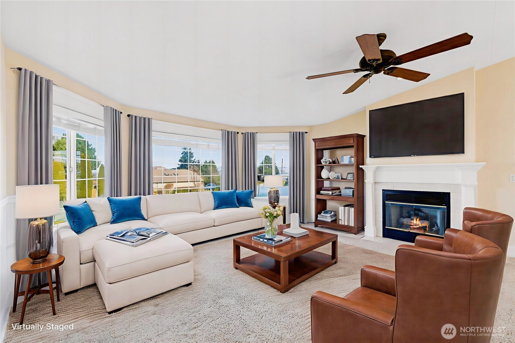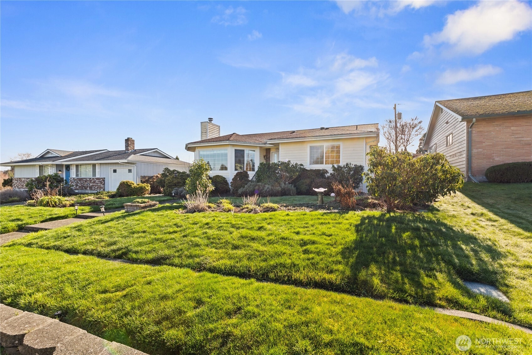 Warm, inviting, and filled with natural light, this Anacortes home offers a welcoming energy you feel the moment you step inside. Large bay windows frame peaceful neighborhood, mountain, and territorial views while creating a bright, airy atmosphere throughout the main living spaces. The cozy gas fireplace anchors the living room, making it an ideal place to relax, gather, and unwind. The flowing layout connects living, dining, and kitchen areas in a way that feels open yet comfortable—perfect for everyday living and effortless entertaining. Skylights and generous windows bring in beautiful daylight, while classic finishes and well-maintained surfaces create a timeless, move-in ready feel. Step outside to a sunny deck designed for morning coffee, summer barbecues, or quiet evenings, surrounded by mature landscaping and fruit trees that add charm and privacy. The level yard, alley access, and RV parking provide flexibility and convenience, while the attached carport offers covered parking. Located in a desirable Anacortes neighborhood close to downtown, schools, parks, marinas, and waterfront amenities, this home blends comfort, character, and lifestyle—an easy place to settle in and truly feel at home.
