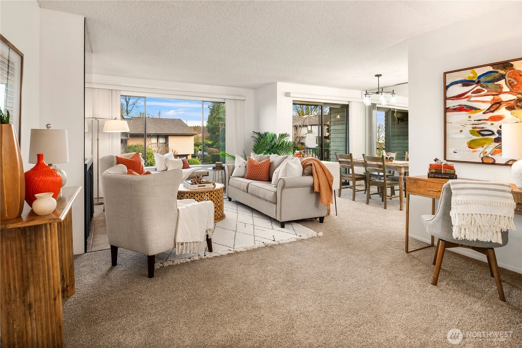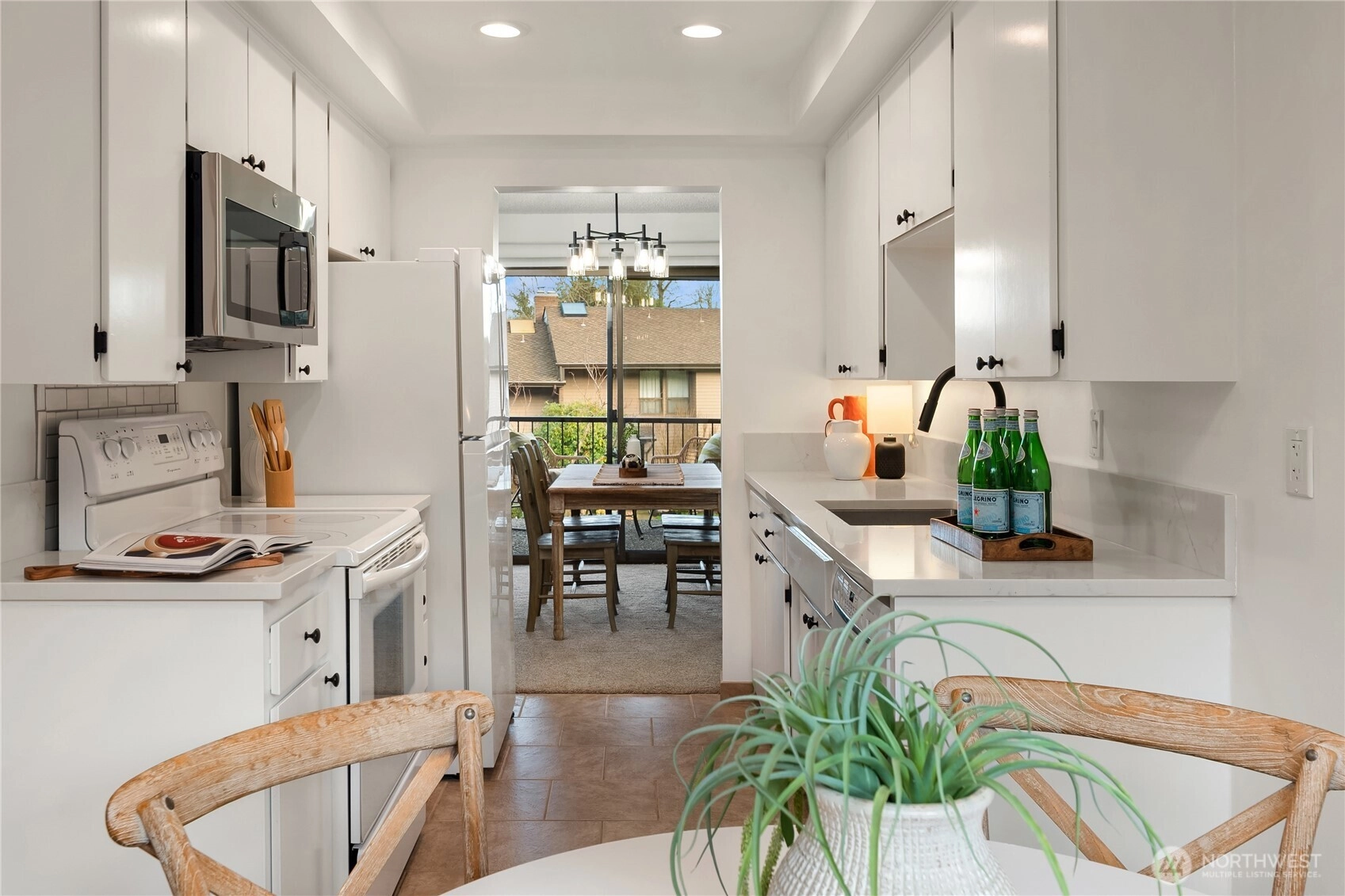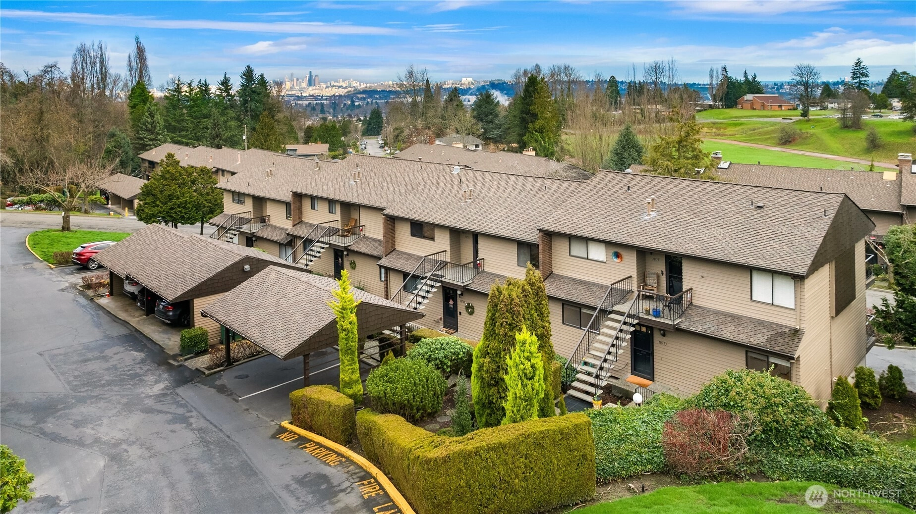Experience relaxed country club living within the secure, gated 55+ community of Glen Acres. Surrounded by manicured grounds, amazing clubhouse amenities, and city views enjoyed from both the home and golf course, this ideally positioned end-unit offers privacy along with a highly desirable 2-car private garage. Beautifully remodeled kitchen with quartz countertops, new flooring and new paint throughout, clean as a whistle. The spacious layout features 2 generous bedrooms on the main level, along with a full bath. The lower level is the perfect guest quarters, with an additional 3rd bedroom and three quarter bath. Monthly dues include water, sewer, garbage, gas, social membership, clubhouse access with restaurant and bar, and a round of golf each month. Residents enjoy exceptional on-site amenities including a driving range, pool, hot tub, tennis and pickleball courts, workout facility and more. All just minutes from Downtown Seattle, Burien and Sea-Tac Airport. A great unit in a great complex, you will love it here!