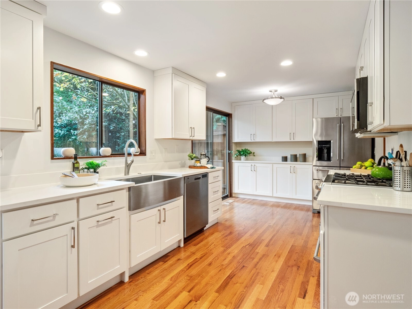 Live the Lake Sammamish lifestyle! Conveniently located townhome in the waterfront community of Fairweather on the shores of Lake Sammamish, located adjacent to Idylwood Park! Stunning two-story townhouse w/fenced yard, and spacious deck for entertaining. Enjoy the crisp fall nights in the hot tub, or take a stroll down nearby trails, or enjoy the private waterfront beach and dock in the summer. Inviting floorplan w/Great room style floorplan with real hardwood floors, featuring 13' ceilings & a wall of windows to the park-like yard. Gourmet kitchen w/quartz counters, quality gas appliances, & a breakfast bar. Relax fireside in the living room while entertaining guests. Lavish primary suite, w/lake themed spa-like bath. Additional space upstairs for office or rec room, in addition to the 2nd bedroom. Fresh carpet throughout the upper level. Conveniently located near Microsoft main campus, 520 freeway, and a short drive to Downtown Redmond, Bellevue, and Seattle. Brand new paid off solar panels for you to benefit from! Private attached garage plus two additional parking spaces. You will love this ideal location!