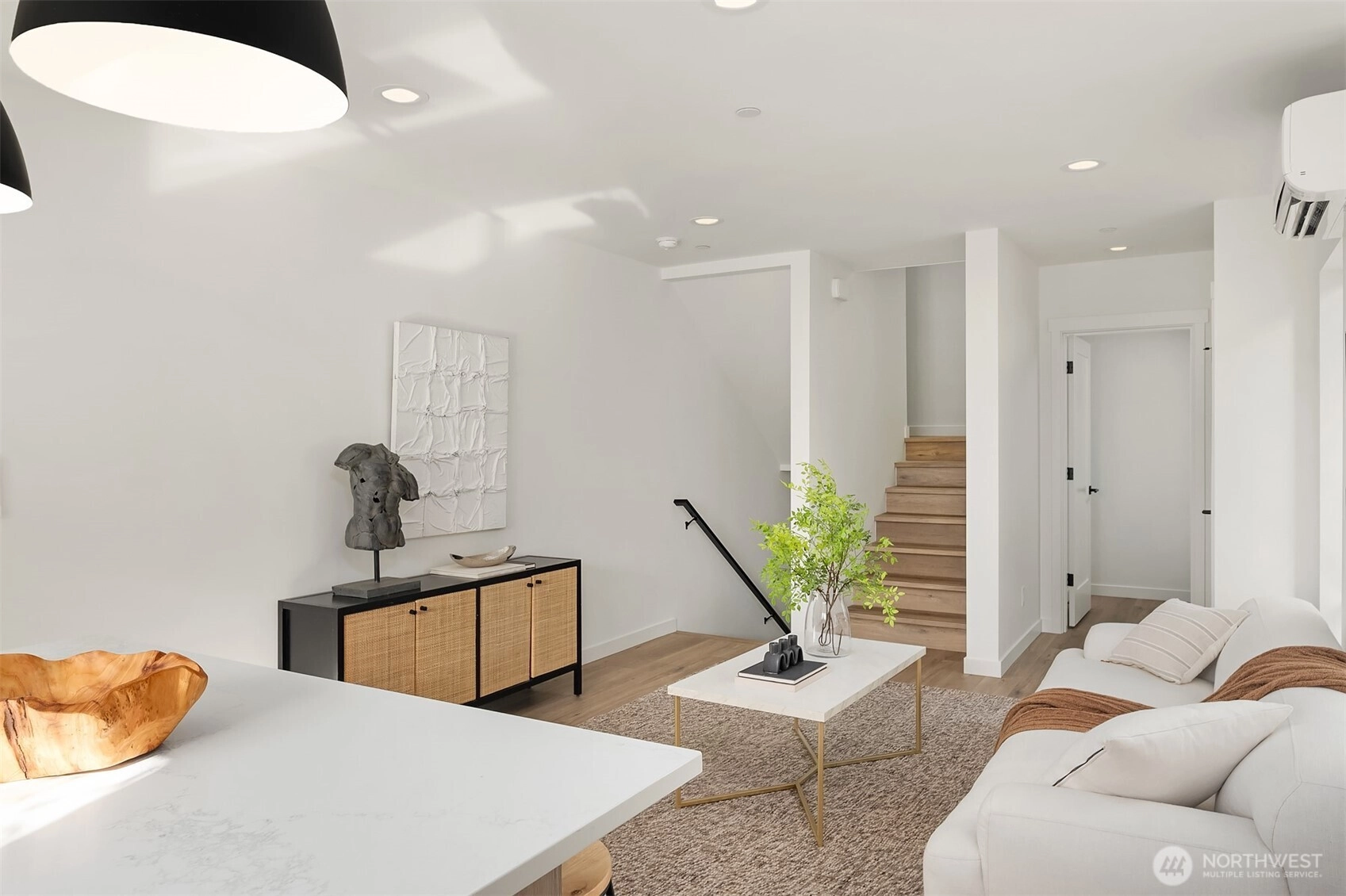 Final home in this community! United Seattle presents a thoughtfully designed modern home in Ballard’s desirable West Woodland neighborhood. The flexible main level includes a spacious bedroom with separate exterior access and a full bath, ideal for a live/work setup, guest suite, or private office. Second floor is light-filled and open, featuring a sleek kitchen with large island and quartz counters that flows seamlessly into the living area, perfect for entertaining, plus a convenient powder room. Upstairs, the primary suite impresses with a spa-like bath with heated floors and a walk-in closet, alongside a bonus office or nursery with its own private balcony. Enjoy low-maintenance outdoor living on the rooftop deck with territorial views. Zoned mini-splits, smart storage, and off-street alley parking complete the package—all just minutes to Ballard Avenue, the farmers market, breweries, parks, and the Burke-Gilman Trail.
