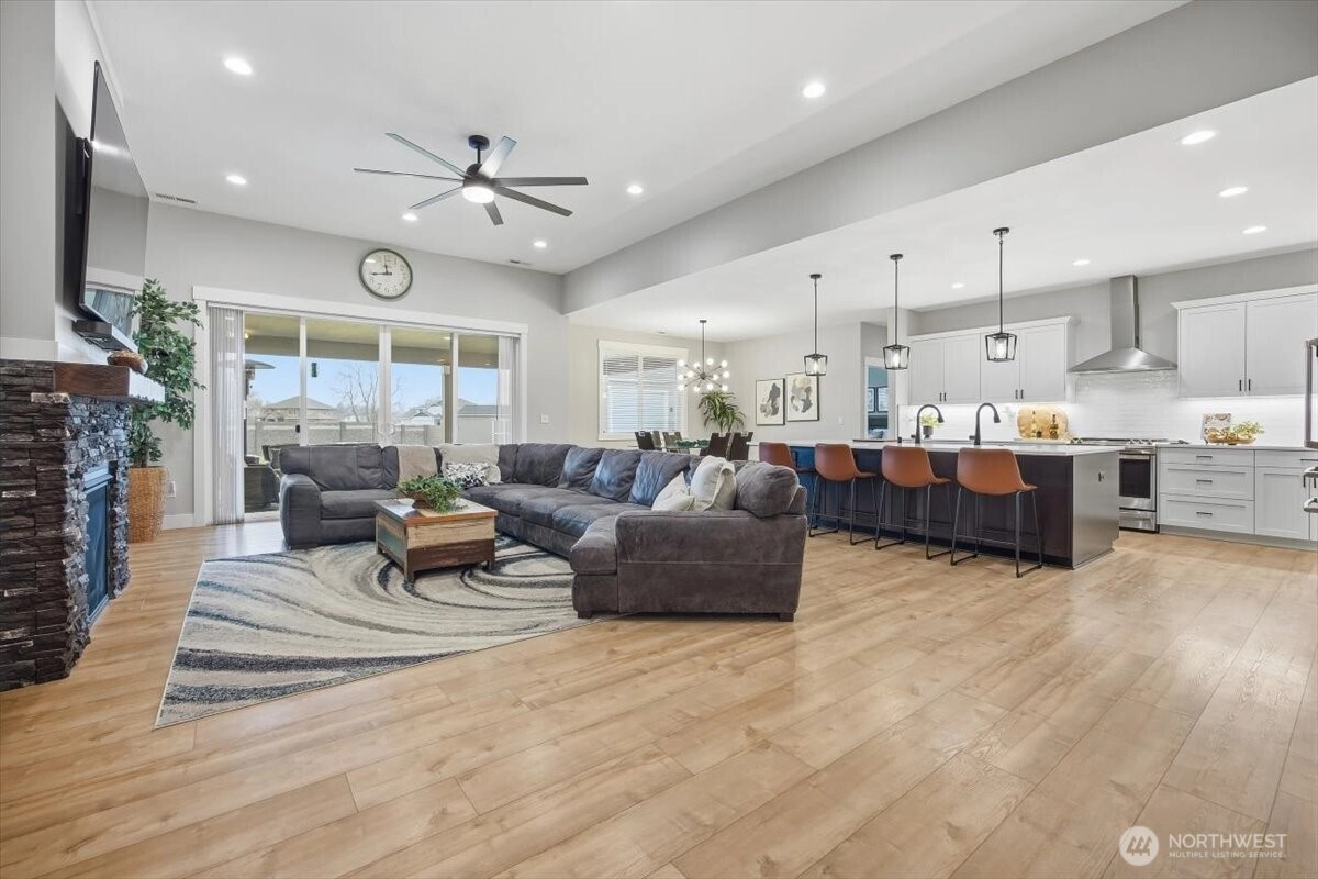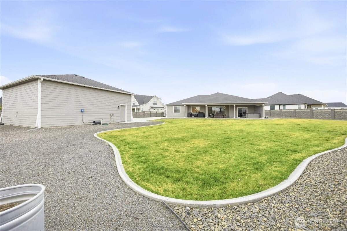 Who is looking for a beautiful home with a 30x30 shop, .55 acre, huge backyard, tons of parking, open concept floor plan with split bdrm layout. You will love this one, the great rm with high ceilings, lots natural light, gas fireplace and the kitchen won't disappoint you with 5x10 island and it definitely had to have a big sink too, ample of counterspace & cabinets, then you got your large walk-in pantry to store all your goods. Spacious primary suite with access covered patio, large bath with dual vanities, free standing tub, and tiled walk-in shower. In addition 2 oversized bdrms sharing bathroom with lots of counterspace. 4th bdrm can be an office or guest bdrm as you wish or need it to be. Epoxy floors in your oversized 3 car garage, water softener, and insulated garage. Lets not forget the 30x30 finished shop with lift, .5 bath, epoxy floors, (wired for mini split) got to see. Loving the outdoor living space with oversized covered patio, hot tub, garden beds and the landscaping very well thought out with concrete curbing, rock area, concrete area and walkways. In addition 10x16 shed with 2 lofts for storage, rain gutters and so much more.. you got to see and make this your amazing home.