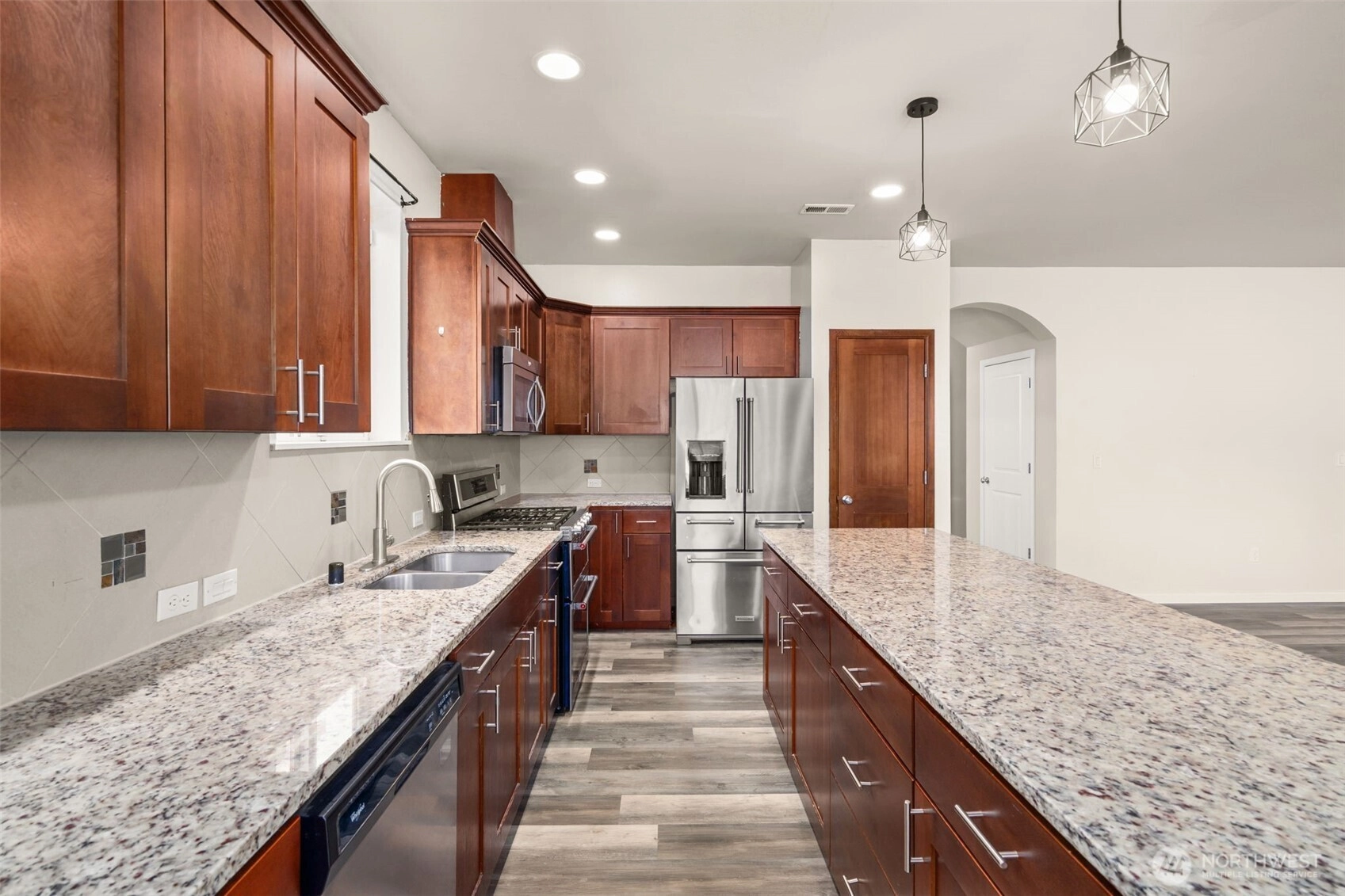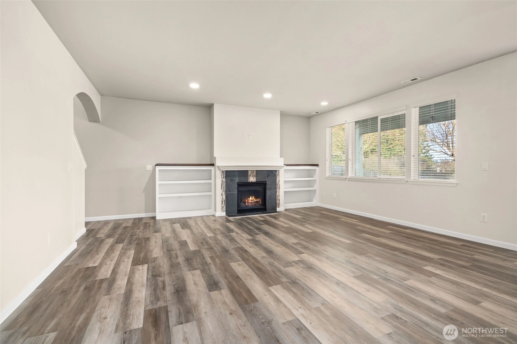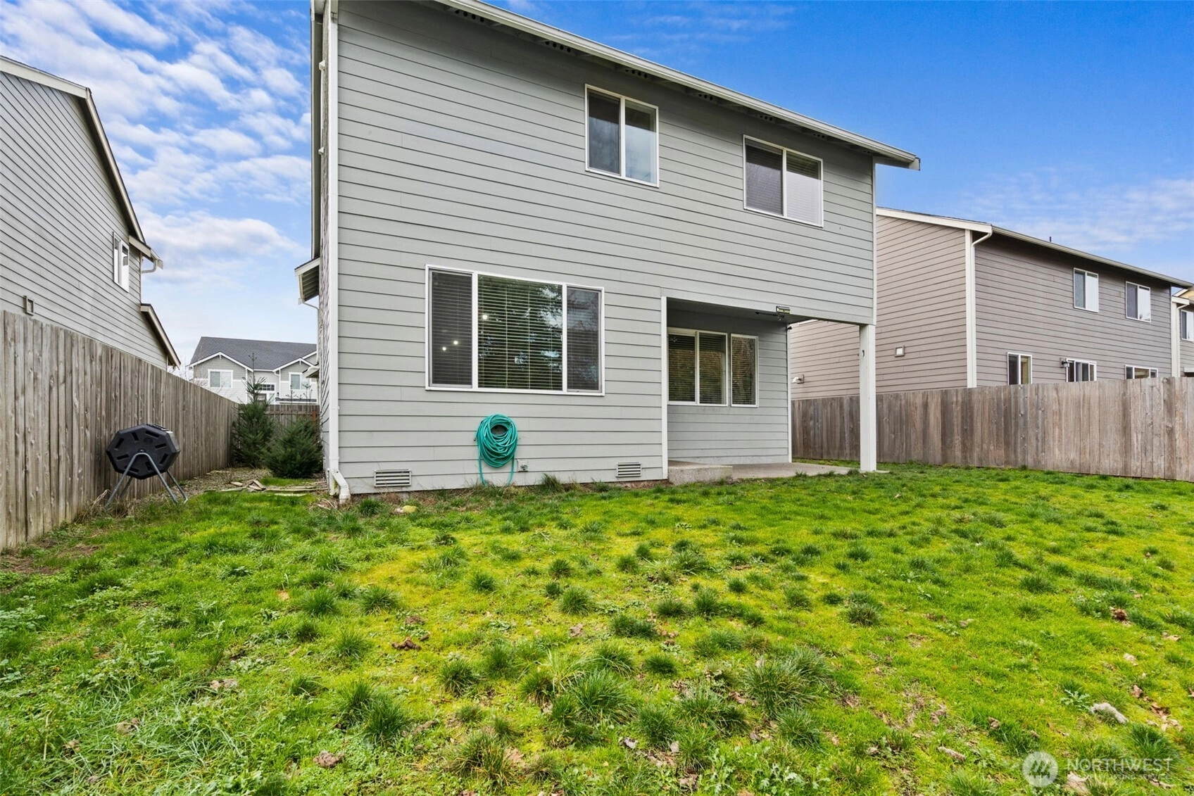 Welcome to this beautifully appointed & generously sized home in Cherry Meadows, where thoughtful design meets everyday comfort. Built in 2015, this home offers exceptional flexibility w/ 4-bedrooms, a spacious loft, main-floor office & impressive 3rd-story bonus room complete w/ a 3/4 bathroom, ideal for a guest suite, media room or elevated private space. The open-concept main level is filled w/ natural light from large windows & features new LVP flooring, fresh interior paint & gas fireplace w/ custom built-ins that anchor the living space. The kitchen is both stylish & functional, showcasing rich contrasting cabinetry, granite countertops, a large island, tile backsplash, pantry & KitchenAid gas stove & refrigerator, perfect for hosting or nights in. Upstairs, the primary suite feels like a retreat w/ its 5-piece en-suite, soaking tub & walk-in closet. Additional living spaces, including the loft, offer room to grow, gather or unwind. Storage is abundant throughout! From garage overhead racks to the 3x5 shed, organization is effortless. Step outside to the covered patio & fully fenced yard, ideal for year-round entertaining or relaxation. Additional highlights include a tankless hot water heater & new light fixtures. Residents of Cherry Meadows enjoy access to a community park & athletic court, all while being conveniently located in North Yelm near shopping, dining & commuter routes. This unbeatable floorplan offers the perfect balance for everyday livability!