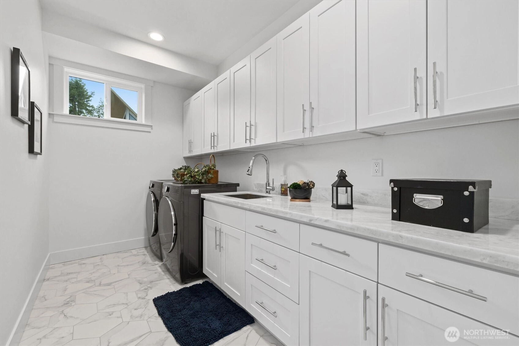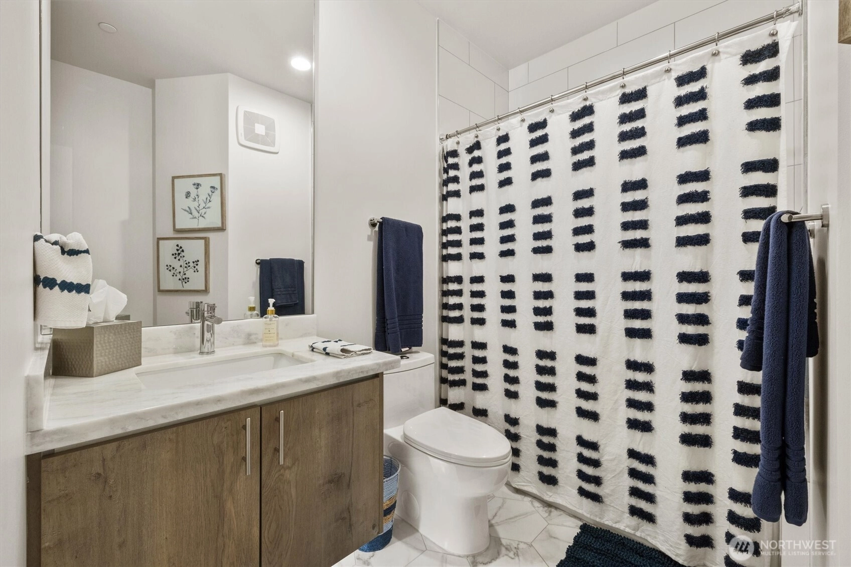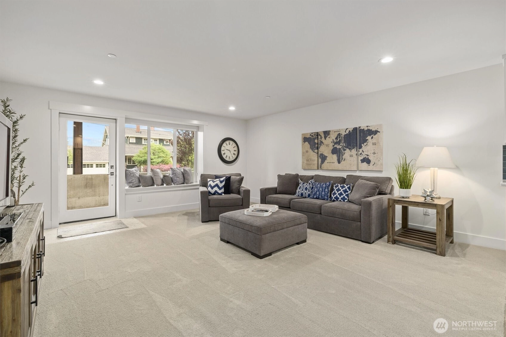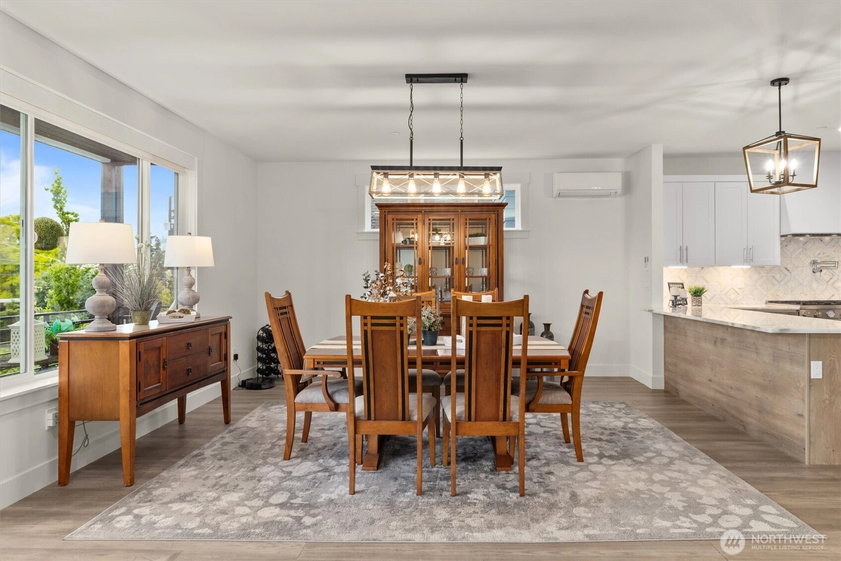 Contemporary farmhouse in desirable Seward Park w/views of Lake Washington & Mt Rainier. Open concept layout on the main floor features dining room, living room, & kitchen creating a perfect flow for everyday living & entertaining. Chef's kitchen equipped with 48" Bertazzoni gas cooktop & range, marble countertops & backsplash, large island w/sink, & a walk-in pantry. Cozy up by one of two fireplaces, & enjoy NW summers under the covered veranda plumbed for gas grill & large fenced yard. Upper floor features second living area, primary suite w/luxurious spa-like bath & walk-in closet & two bedrooms. Third-floor flex room w/wet bar, Juliet balcony, with east facing views. Large 1Bd/1Bth ADU on ground floor w/separate utilities & laundry. Perfect for generational living or rental. Mini-split heating/cooling. Large finished bonus rm on ground floor. Whole house fire sprinkler system.