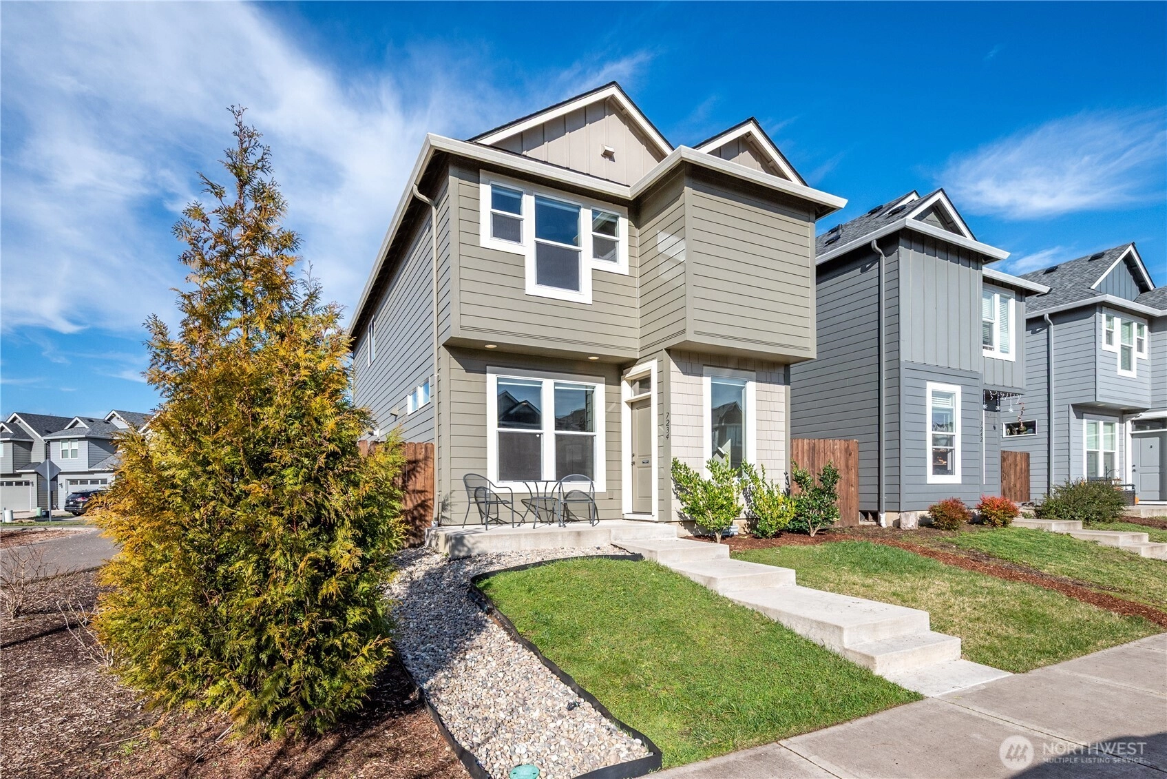 Contemporary, and Move-In Ready! This stylish home offers a fresh, modern aesthetic and thoughtful features throughout. The main floor showcases beautiful, easy-care Luxury Vinyl Plank flooring, recessed lighting, and sleek pendant lights. A light color palette combined with abundant windows allowing natural light to pour in, create a warm, inviting atmosphere. The kitchen features warm wood tones in the cabinets, stone countertops, a center island with an eating bar, and stainless-steel appliances. Inviting living area with 1/2 bath. Upstairs you will find the spacious primary with walk in shower and walk in closet, a full bath, utility, a large second bedroom and large third bedroom which would be a great bonus room if you didn't need it. Home is situated next to the playground. Close to I 5, shopping and so much more.