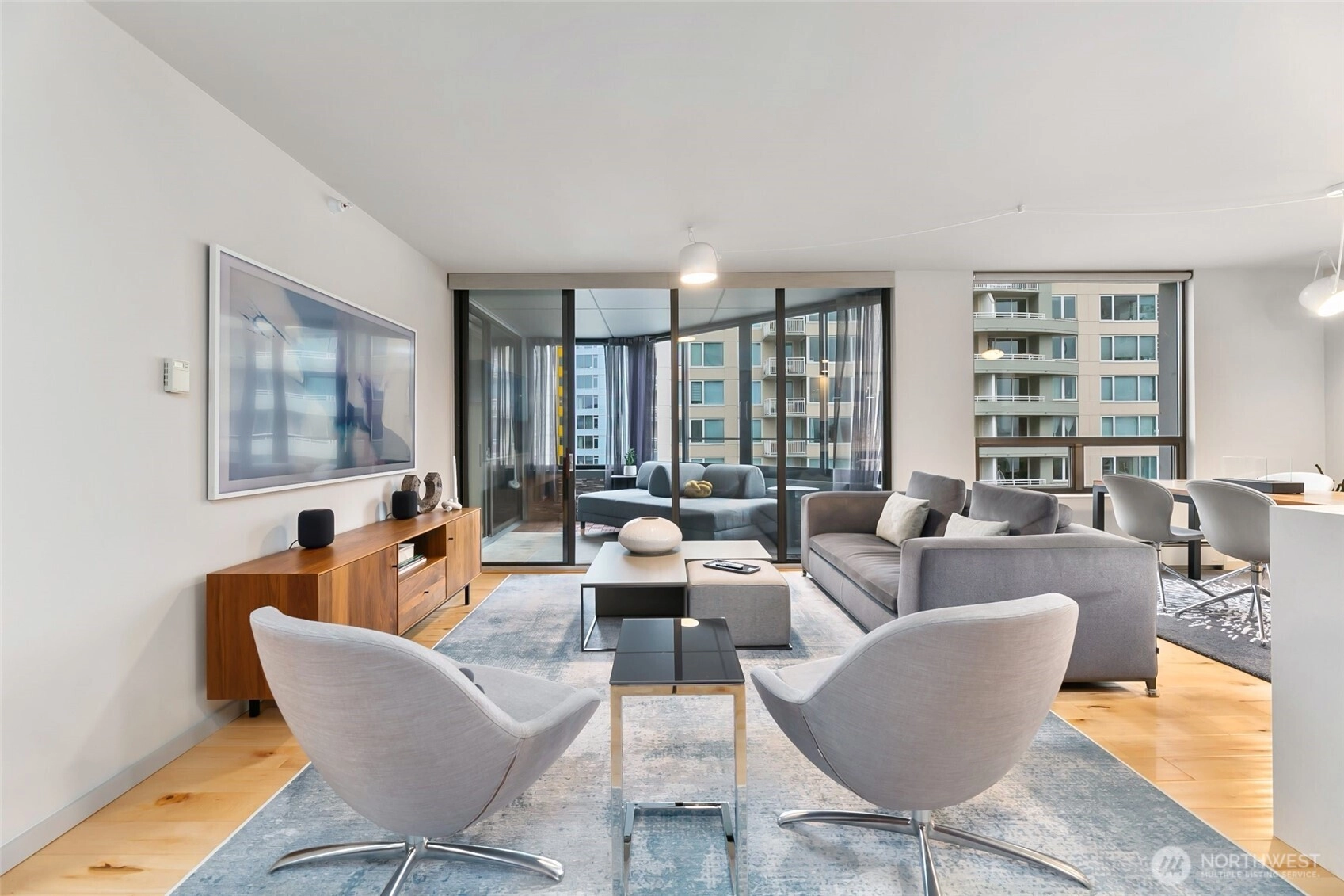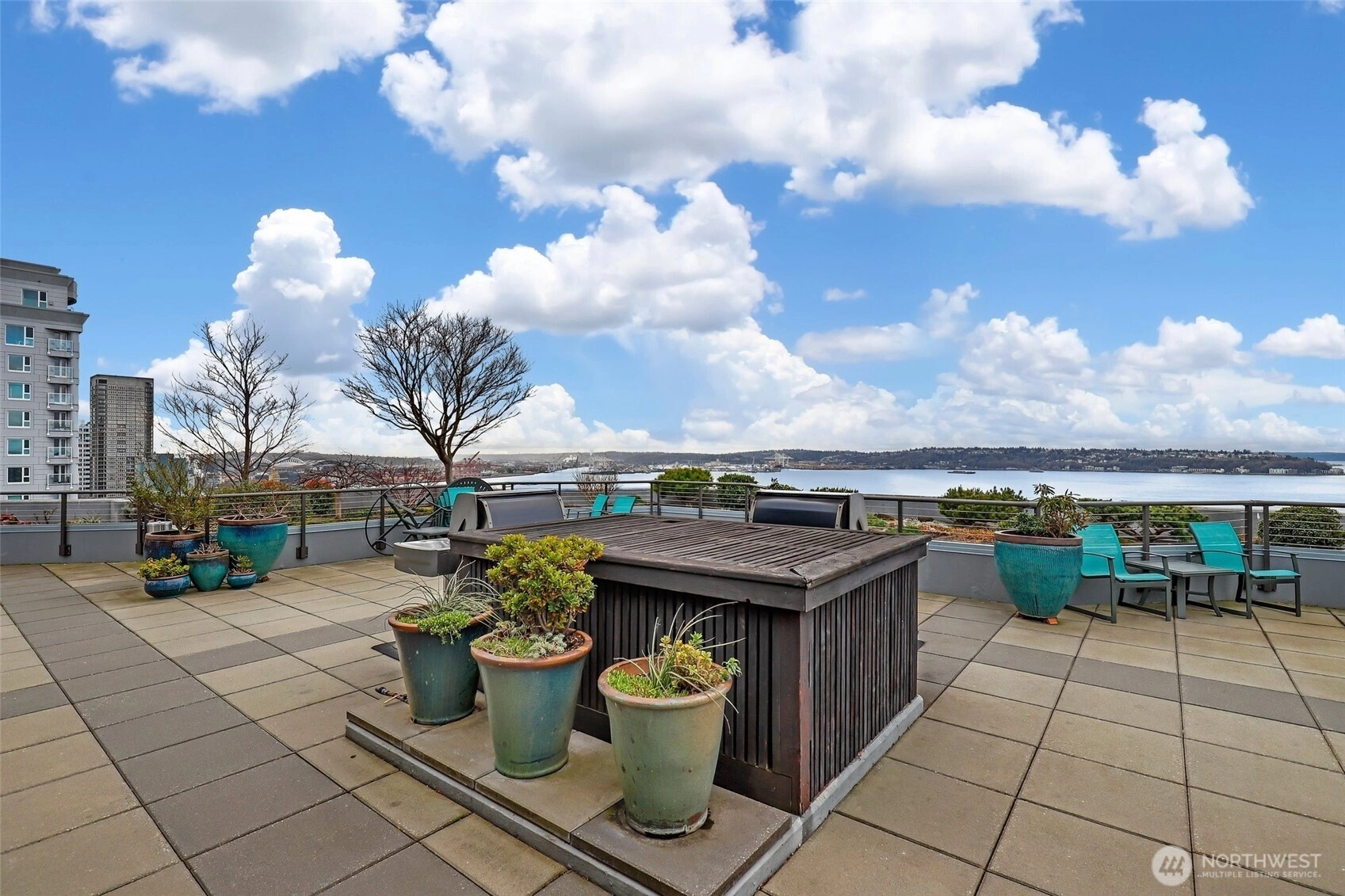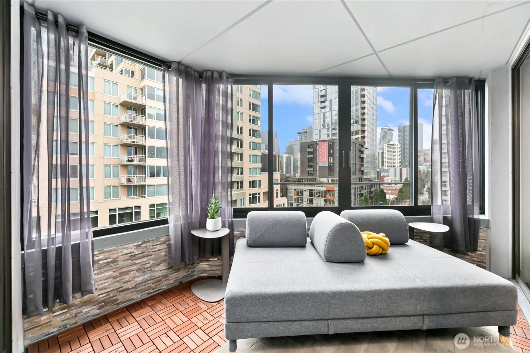 Step into this magazine-worthy urban oasis where thoughtful design and high-end finishes come together in perfect harmony. This beautifully reimagined one-bedroom condo has undergone a complete studs-out renovation, with over $150K invested to deliver a refined blend of modern elegance, comfort, and everyday functionality. The open-concept living space is filled with natural light and showcases iconic Space Needle views, creating an inspiring backdrop for daily living and entertaining. An enclosed patio extends the living area and offers a flexible retreat, while a dedicated area for a home office supports today’s lifestyle needs. Custom California Closets throughout the residence provide exceptional organization and storage. The spa-like bathroom features a heated floor accented by Ann Sacks penny tile, adding a luxurious touch to your routine. Residents enjoy a host of amenities including secure entry, garage parking, an outdoor pool, sauna, hot tub, fitness center, and a stunning rooftop deck with sweeping city and water views. Ideally located near acclaimed dining, shopping, and entertainment, this home delivers both style and convenience in one exceptional offering. A true must-see.
