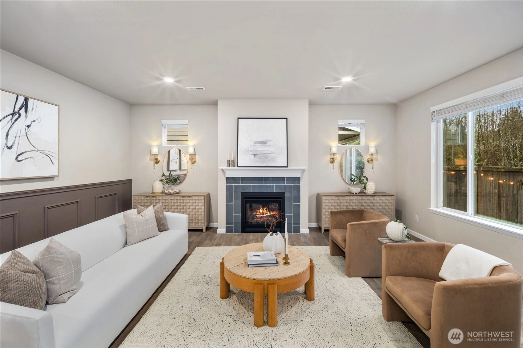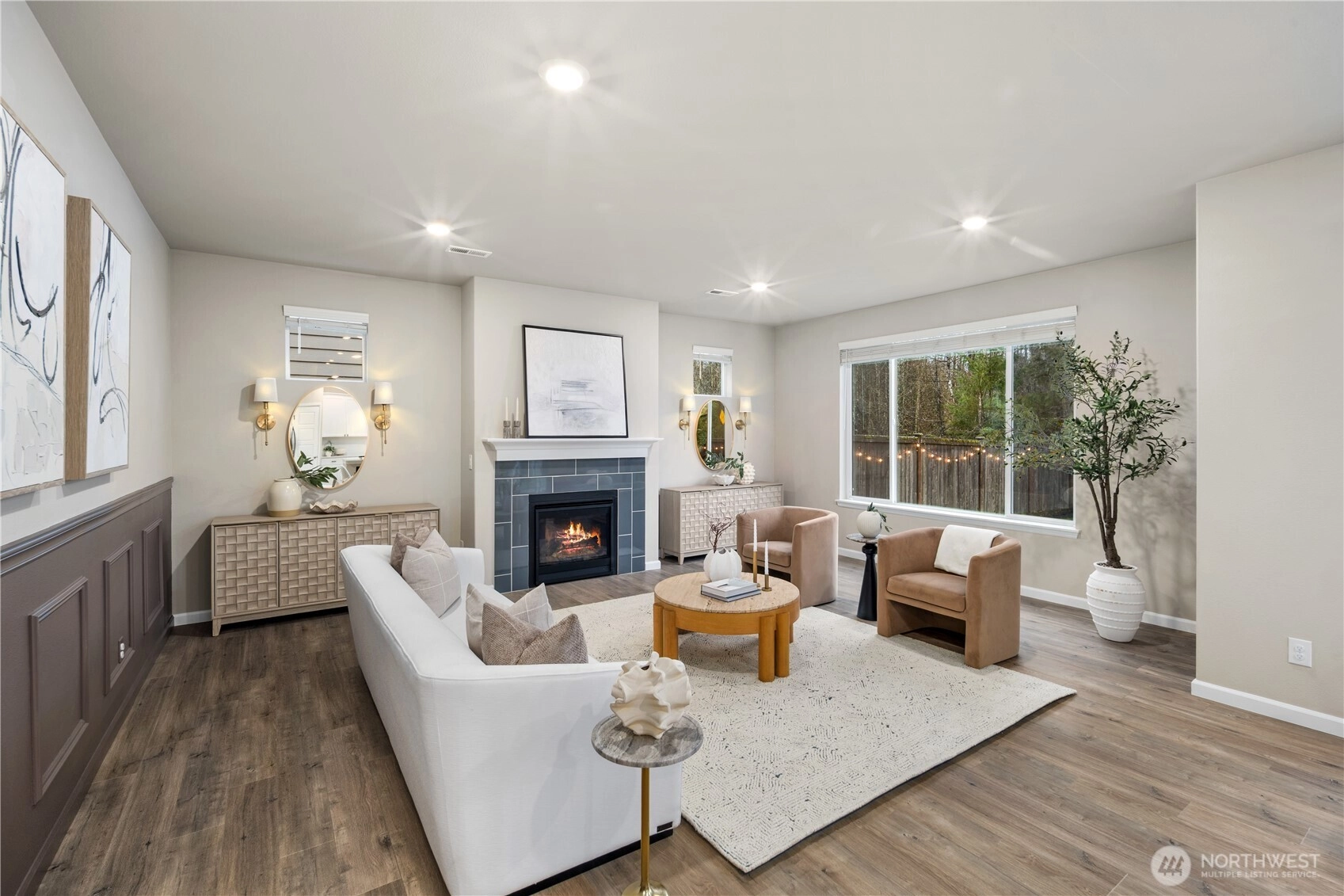Set within the sought-after Bridges community, this Lennar resale offers a thoughtful balance of privacy, comfort, and everyday livability. Backing to protected wetlands with no neighbors behind, the home enjoys a serene, natural setting that feels quietly removed while remaining steps from parks, trails, and community amenities. Inside, light-filled living spaces unfold across an open, well-designed layout, enhanced by custom millwork, fresh interior finishes, and a seamless flow ideal for both daily living and entertaining. The main level is anchored by a welcoming living room with a gas fireplace and custom feature wall, connecting effortlessly to the kitchen and dining areas designed for gathering and connection. Upstairs, high ceilings and a dramatic window along the stairwell create an airy transition to private bedroom spaces and a generous secondary living area. The primary suite serves as a peaceful retreat, featuring multiple windows, a cozy reading nook overlooking greenery, and a spa-inspired five-piece bath with a soaking tub set behind privacy glass. Outdoors, a fully fenced yard with Belgard stone pavers opens to a tranquil green backdrop that will remain undeveloped. A rare opportunity to enjoy refined living, privacy, and a true sense of community in one of the area’s most thoughtfully planned neighborhoods.