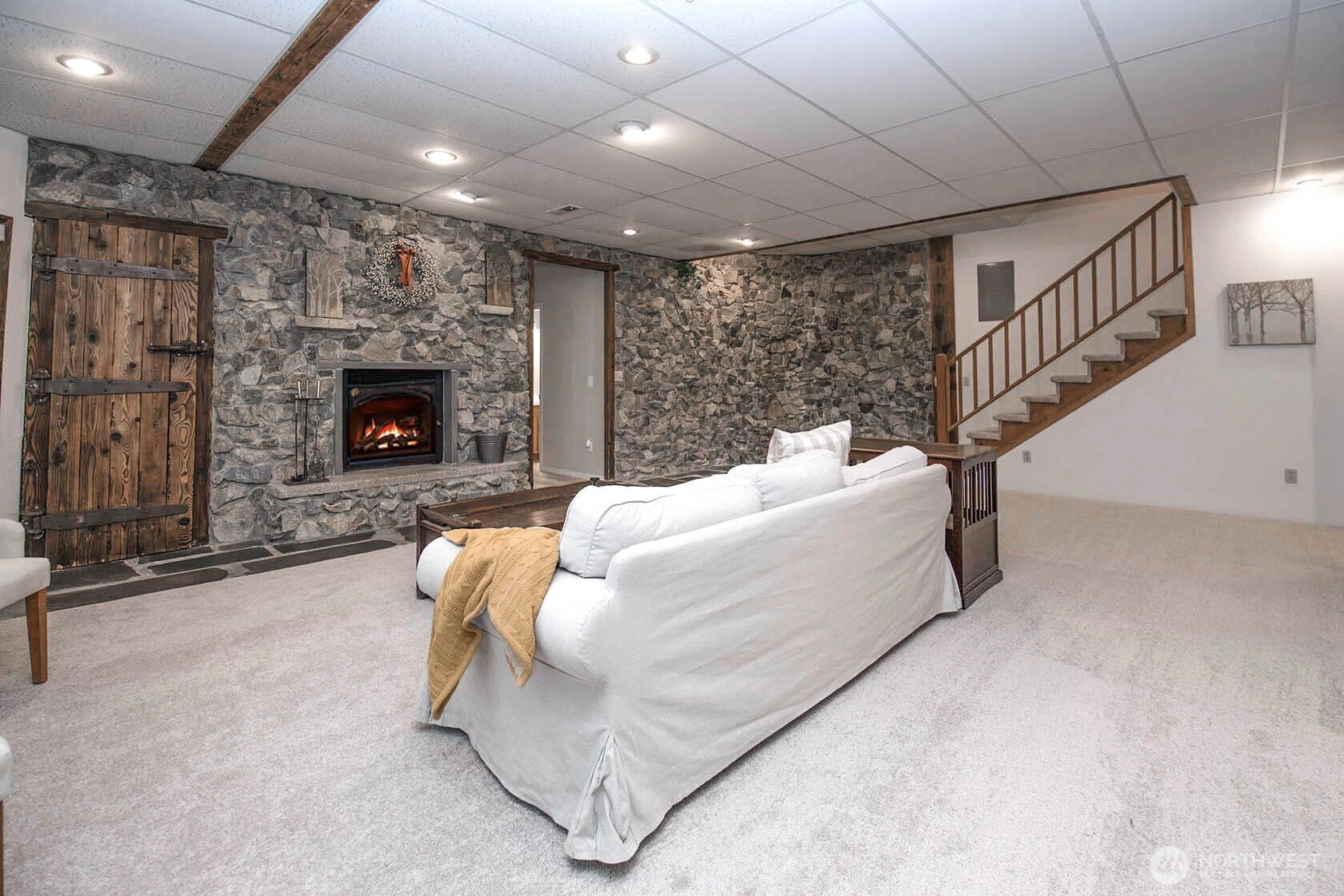 A breathtaking Panther Lake Northwest waterfront retreat on 1.78 private acres with 132 feet of pristine shoreline. This exceptional property blends refined craftsmanship with tranquil natural beauty, offering 3,612 total square feet including a 3,036 sq. ft. main home and a 576 sq. ft. guest house (ADU) ideal for guests or rental income. Vaulted ceilings, panoramic windows, and an open layout capture stunning lake views throughout. The custom kitchen flows into a dining space showcasing 180-degree water vistas, while the Primary Suite delivers a serene escape with sweeping views, fireplace, and spa-inspired bath. The lower level features a wet bar, dramatic interior water feature, fireplace lounge, bedroom, and exercise room, perfect for entertaining and relaxation. A dream setup for car lovers and creatives; the property includes an 820 sq. ft. finished two-car shop plus a 1,650 sq. ft. 3+ bay shop with lean-to, RV parking, and attached flex/guest space. Outdoors, enjoy expansive decks, lush landscaping, a pond with waterfalls, gardens, fruit trees, scenic walking paths, and a private dock. Nestled among nature yet close fishing, wildlife parks, and Snohomish Golf Course, this is truly a one-of-a-kind Pacific Northwest waterfront estate.