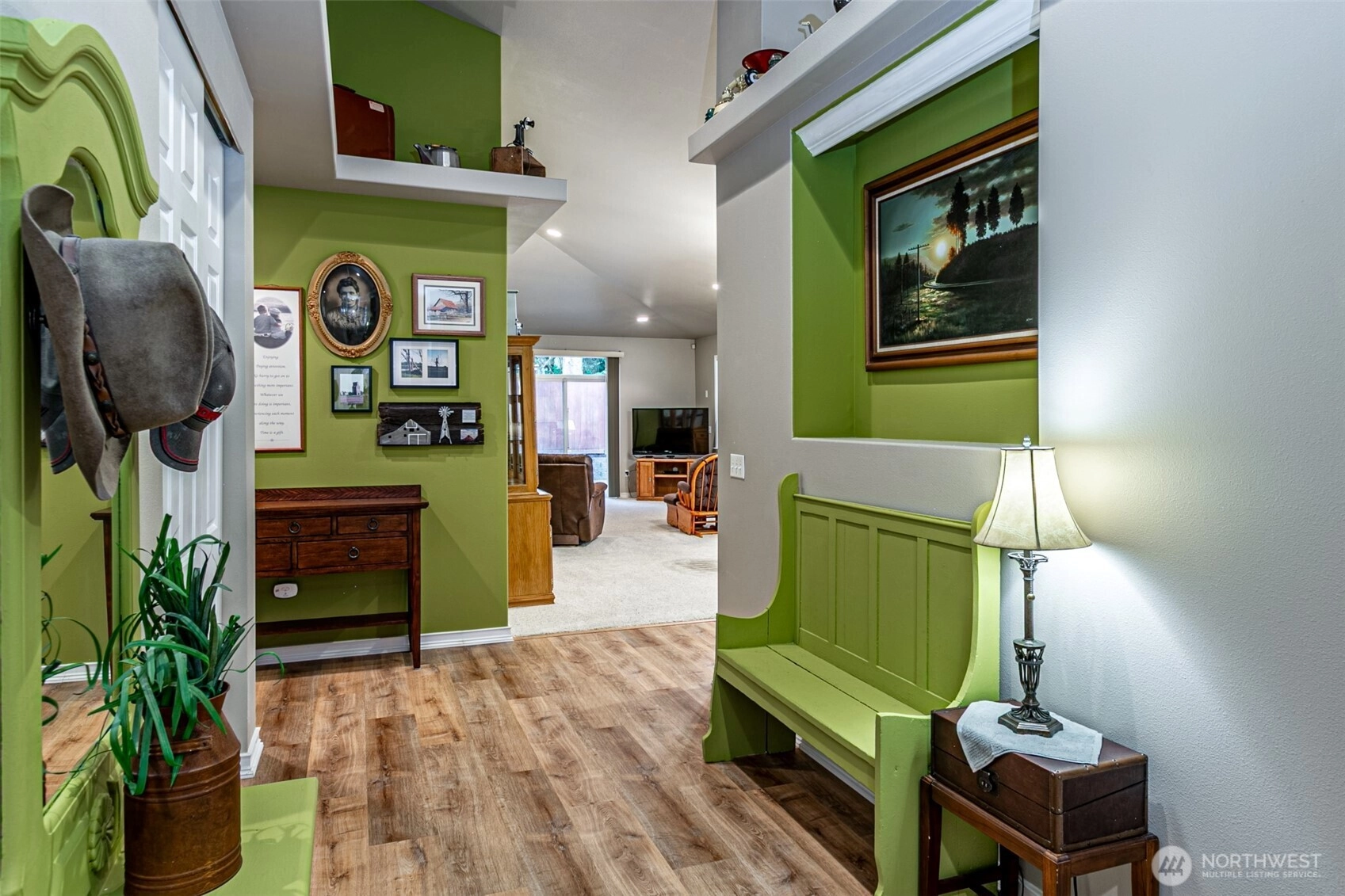 Welcome home to this beautifully well maintained 1,852 square foot Rambler! This 3 Bedroom, 2 bath home, has been updated inside & out. You’ll find durable laminate flooring entering the vaulted ceiling entryway, updated kitchen with newer stainless steel appliances. Open floor plan with a cozy living & dining room, with a large bay window, vaulted ceilings & gas fireplace! Spacious Primary suite offers the comfort of a 5 piece private bath, & huge walk-in closet with built in drawers & shelves. Low Maintenance fully fenced back yard with Gazebo covered Hot Tub, Trex decking, raised flower beds, & storage shed. 2 car garage includes storage shelves & workbench as well as overhead storage. Home amenities include - Solar Panels, New Fridge, New Gas water heater, 3 year old Heat Pump & Furnace, updated crawl space, 4 year old roof, & Hot Tub.