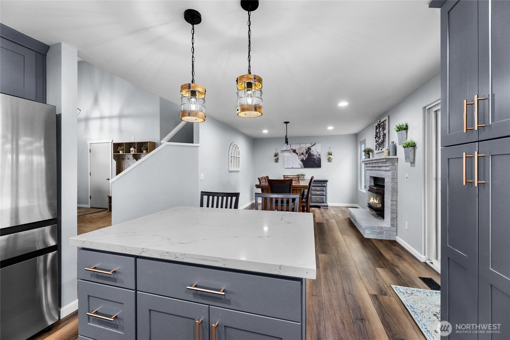 MOVE IN READY Residence in Pinnacle Estates w/NO HOA! Beautifully Upgraded 3-Bedroom, 2.5-Bathroom Home w/a Thoughtfully Designed Floor Plan & Quality Finishes. Upon Entering, You Are Greeted w/Vaulted Ceilings in the Entry Way & Great Room Creating a Sense of Space, While Natural Light Enhances the Home's Warm & Inviting Aesthetic! A Cozy White Brick Gas Fireplace Anchors the Dining Room w/an Updated Light Fixture, Adding Character. Primary Suite on Main Level Serves as a Peaceful Retreat Featuring a Shower/Tub Combo w/a Window Above Drawing in Natural Light, Dual Sinks, Heated Tile Floors, Walk In Closet, & Freshly Painted Walls! Tastefully Updated Kitchen w/Soft Close Cabinetry, Pull Out Drawers, Under Cabinet Lighting, Quartz Countertops, Tile Backsplash Extending Up Wall to Ceiling, Kitchen Sink, Modern Light Fixtures, Crown Molding,& Newer Appliances Including a Microwave, Garbage Disposal (2025), & Refrigerator (10/25). LVP Floors (2025) Flowing Throughout the Kitchen & Dining Area, Balancing Durability w/a Modern Look. Home is Equipped w/ AC, Gas Furnace, & Gas Water Heater. Stair Well & Main Level Walls Freshly Painted Gives the Home a Polished Presentation. Fully Fenced Backyard Featuring Newer Fencing, Garden Area, Storage Shed, RV/Boat Parking Behind Gate w/Gravel Driveway, 4X4 Pressure Treated Wood Around Pea Gravel Area Framed for a Swimming Pool, Covered Patio, & Newer Playground Set (3/25). Keypad Entry on Both Garage Doors. 1 Year Home Warranty Included!